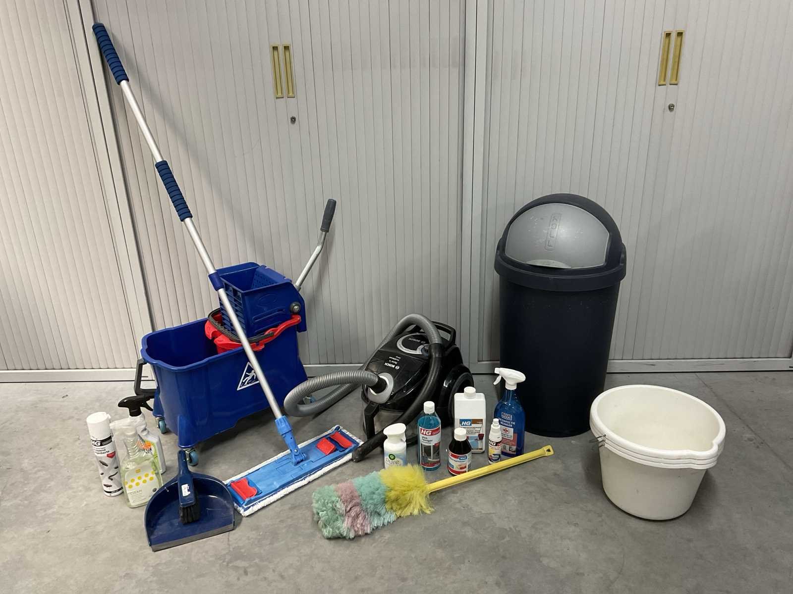 Zakloze stofzuiger, dweil emmer, diverse schoonmaakmiddelen Merk: Bosch