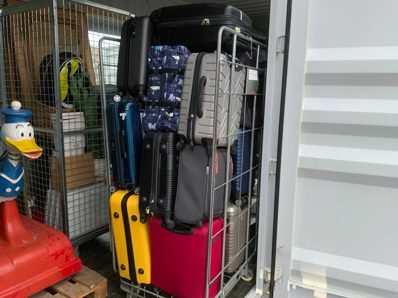 Partij reiskoffers, lost luggage. Ca. 15 stuks baggage, inhoud onbekend Rolcontainer niet inbegrepen