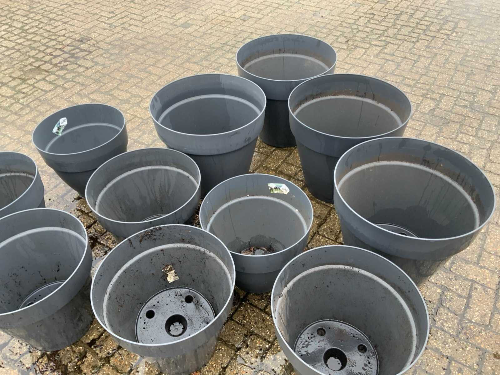 In diverse afmetingen, waarvan de grootste: diameter 59, hoogte 54cm Merk: Elho Kleur: Grijs Materiaal: Kunststof