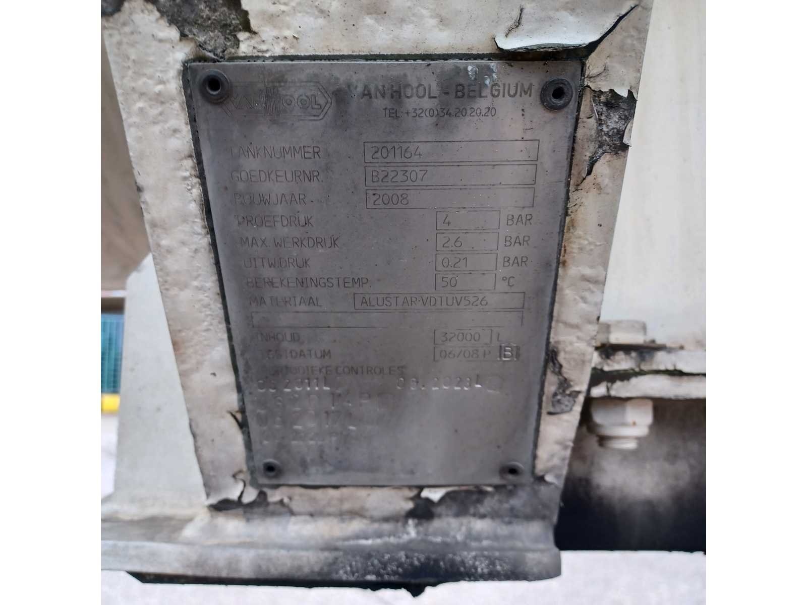 Belgische boorddocumenten, opgelet schade tank, aluminium tank opbouw op RVS Chassis, Tarra: 5170kg, MTM: 38000kg, TTM: 38000kg, Tankinhoud: 32000L Merk: Vanhool Type: 3D0019 Bouwjaar: 2008 Chassisnummer VIN: YE13D0019AA201164 Kenteken: QASJ519 Aantal assen: 3