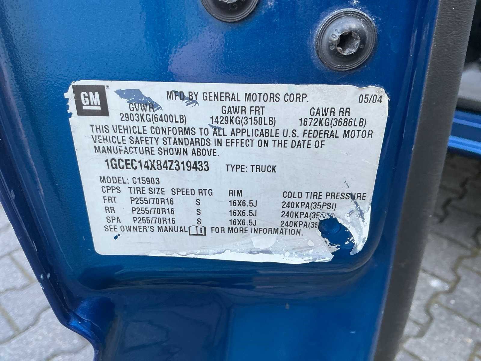 Geen documenten, geen registratie, motorstoringlampje brandt oorzaak onbekend, inclusief bill of sale Merk: Chevrolet Type: Silverado 4.3 Bouwjaar: 2004 Chassisnummer: 1GCEC14X84Z319433 Afgelezen mijlenstand: 119662mi Aandrijving: RWD Transmissie: Automaat Aantal zitplaatsen: 2 Kleur: Blauw metallic Stuurwiel: Links Aantal sleutels: 1 No self drive export!: true