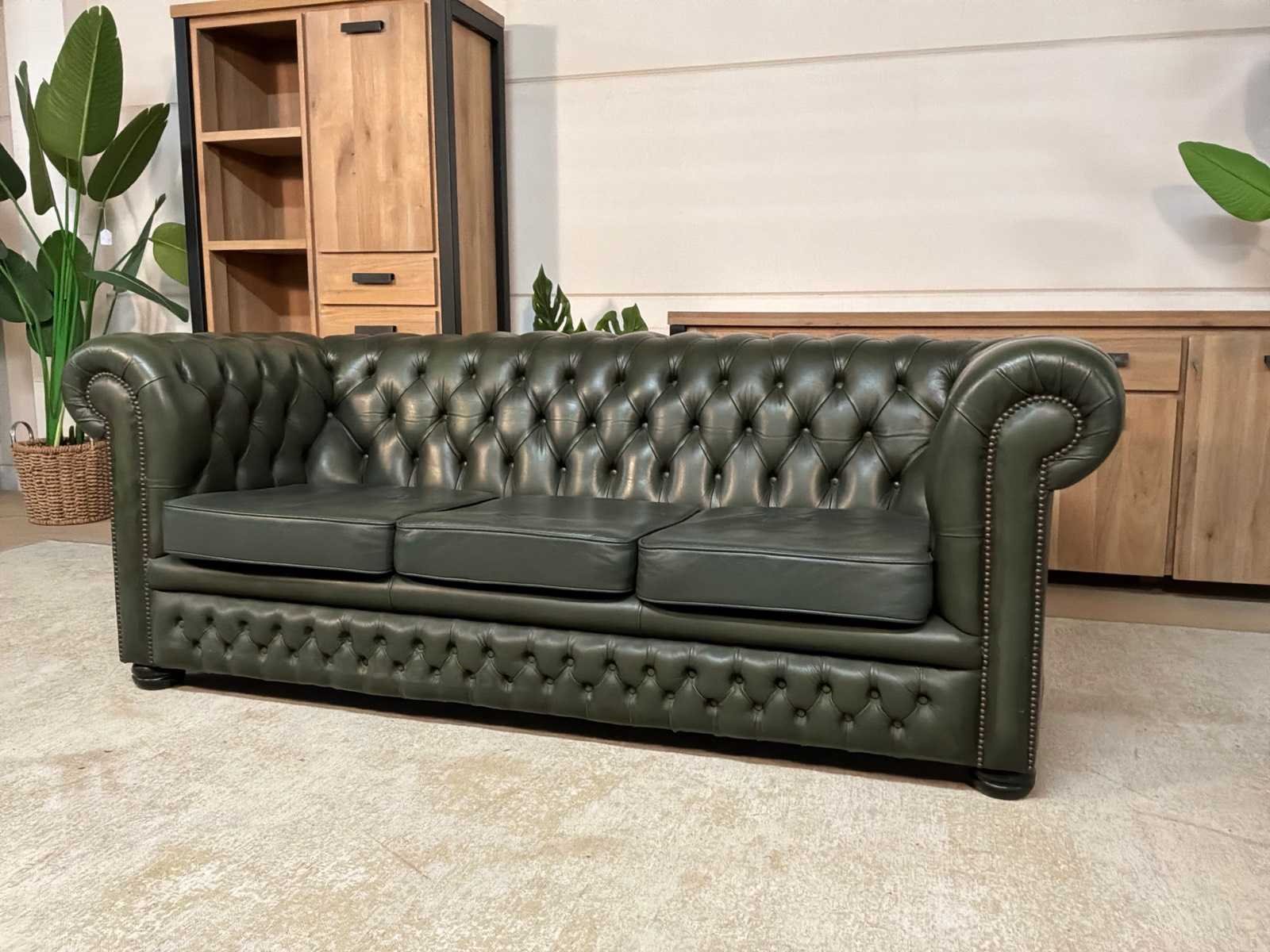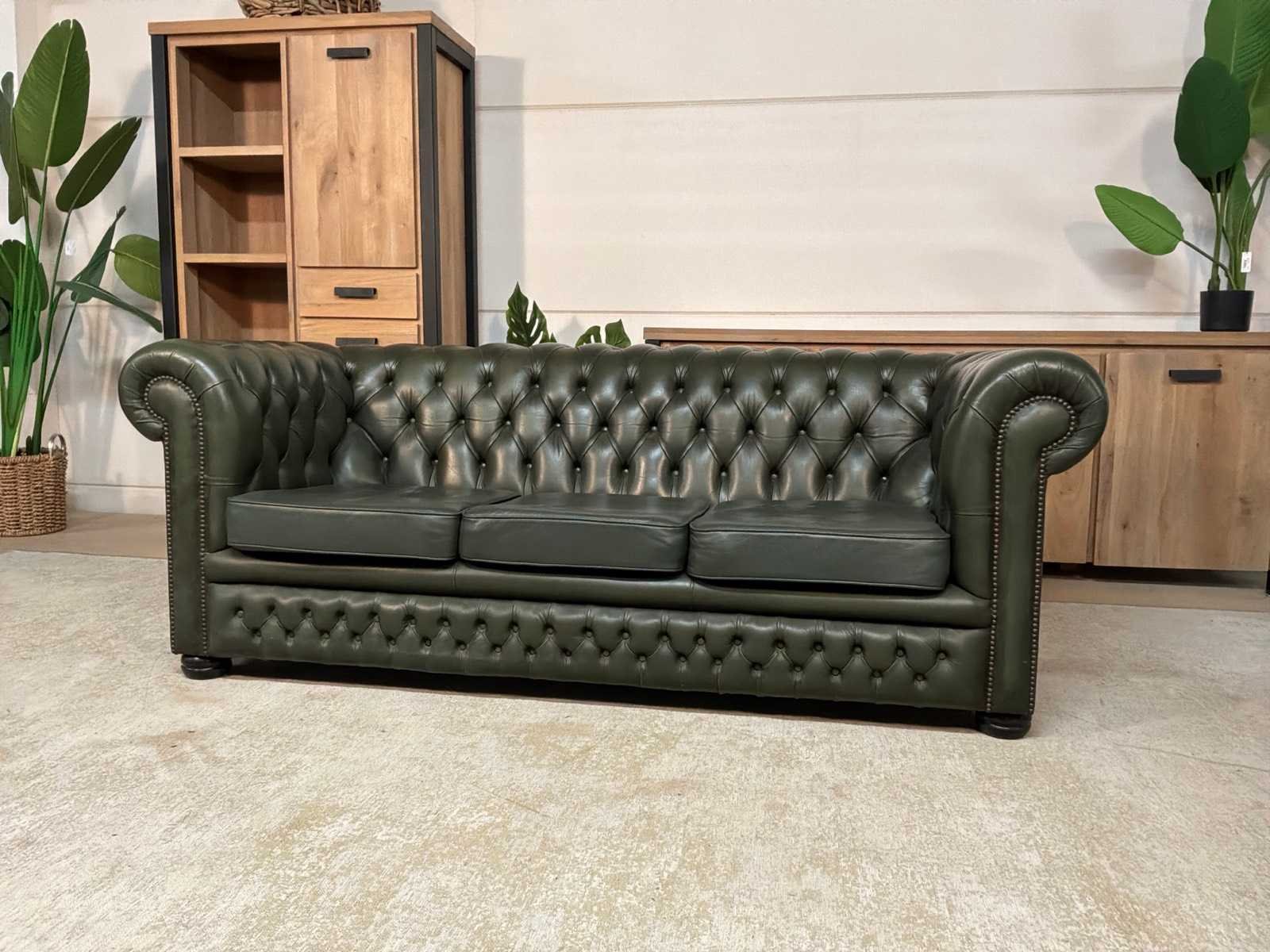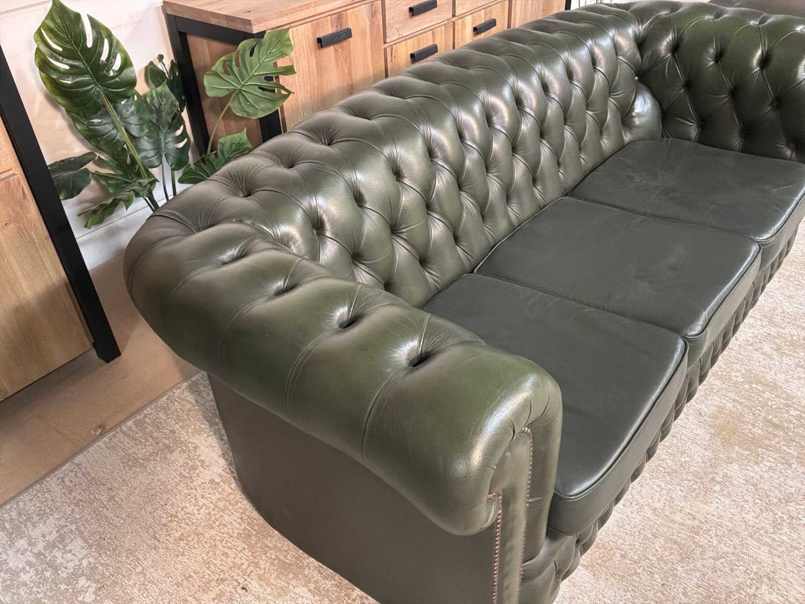 Hoogwaardig leren bankstel. Zware uitvoering Model: Chesterfield Lengte: 90cm Breedte: 200cm Hoogte: 72cm Zithoogte: 40cm Diepte: 55cm Materiaal: Leer