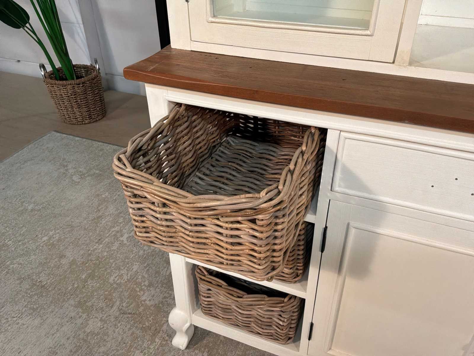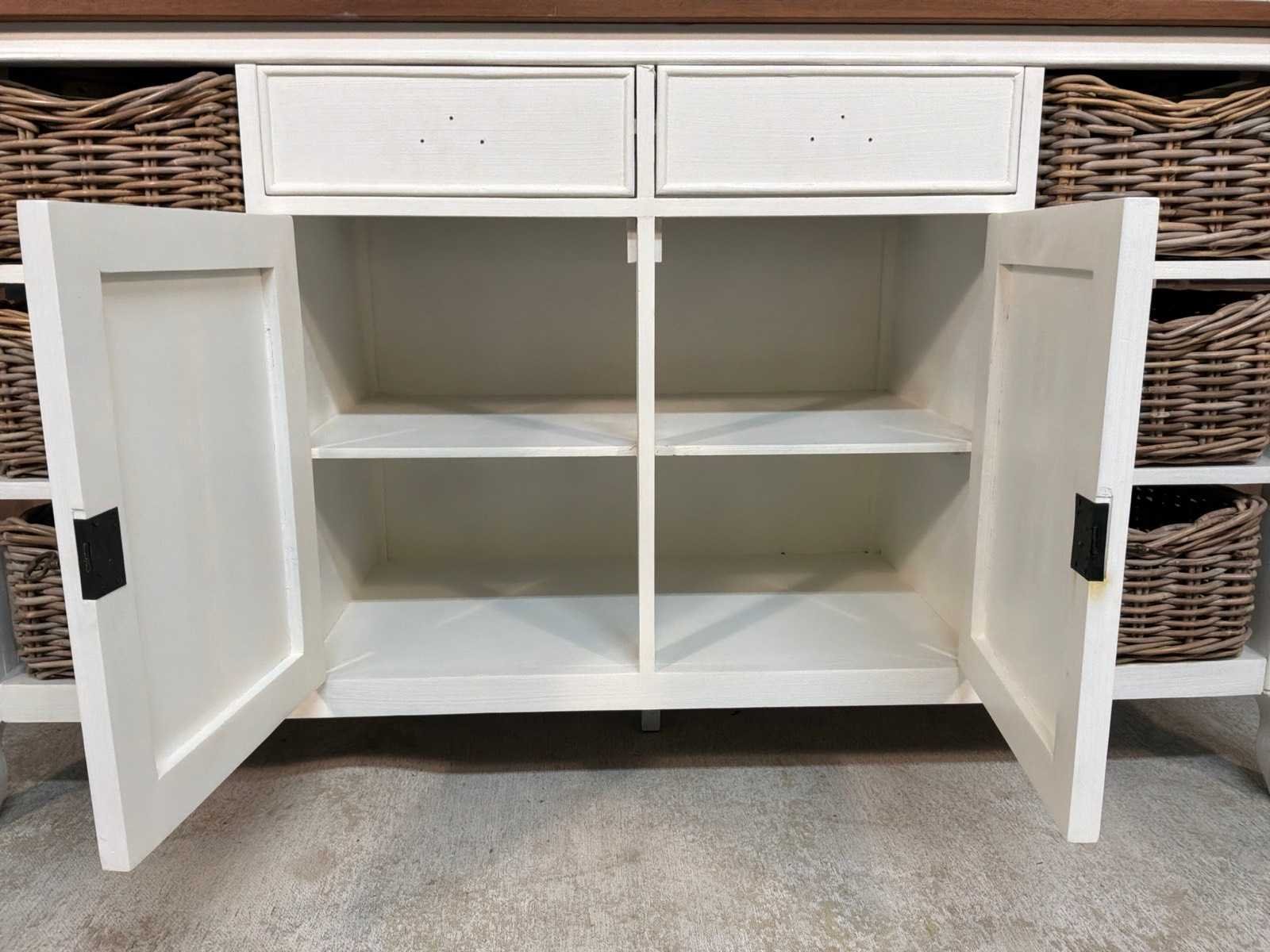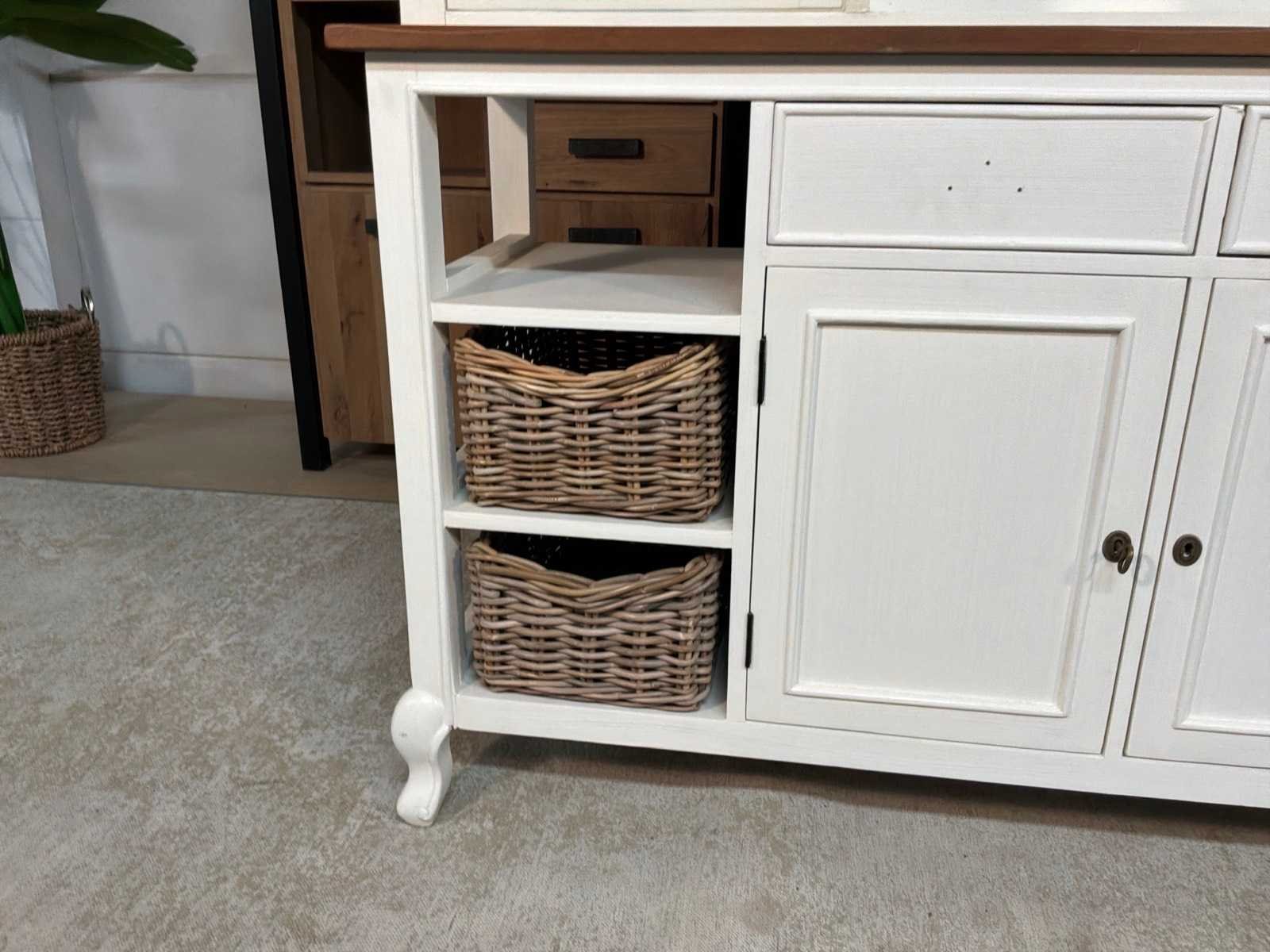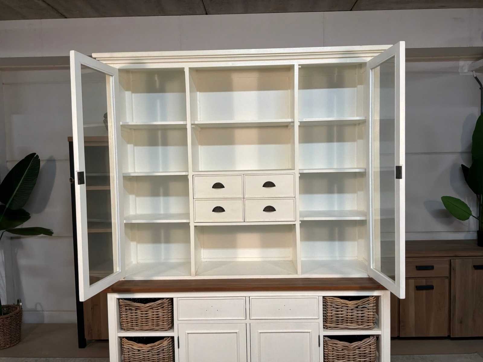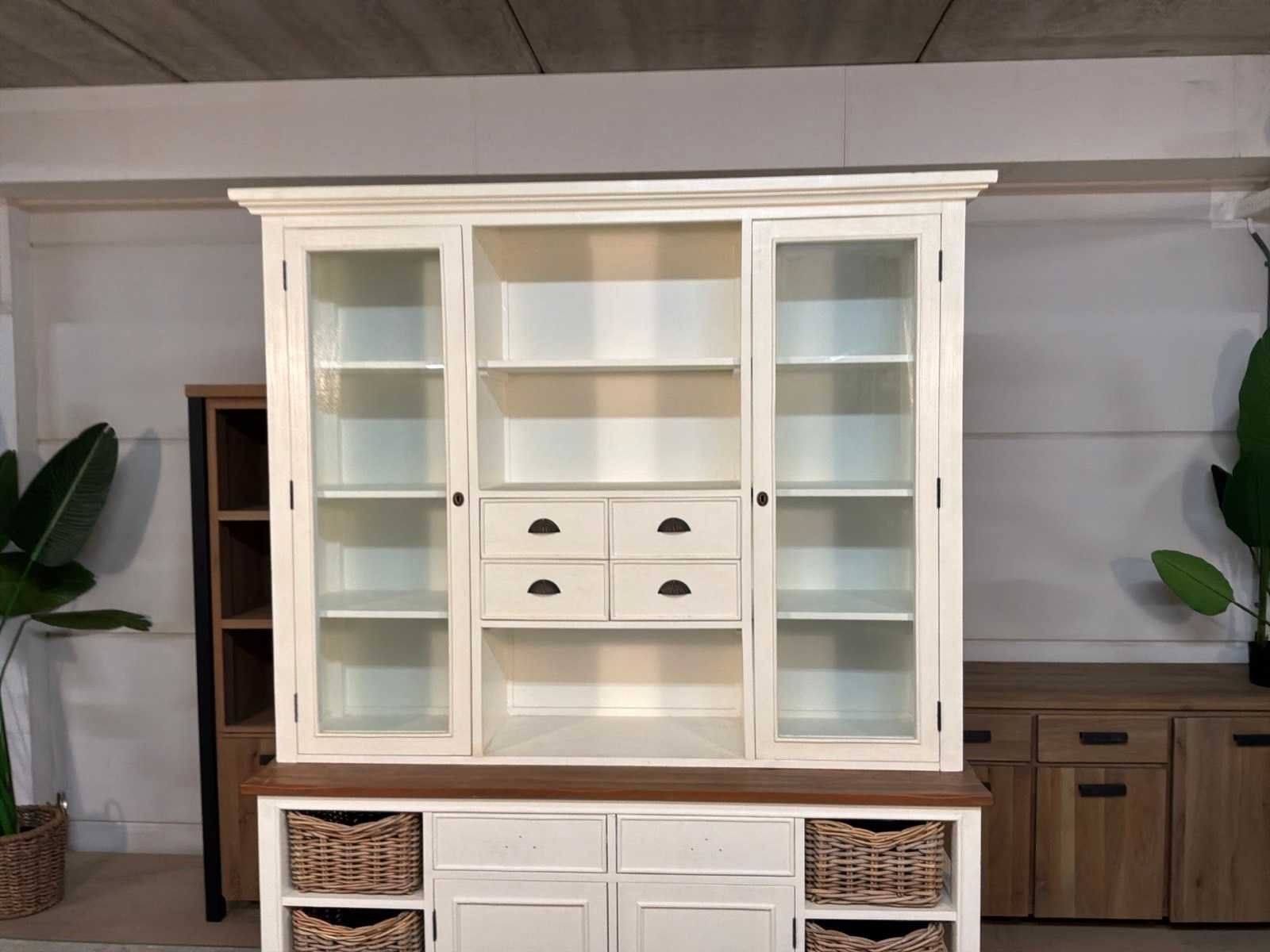 BuffetKast is 2-delig. Buffetkast mist 2 handvatten. Model: Ibiza Lengte: 50cm Breedte: 160cm Hoogte: 220cm Materiaal: Hout