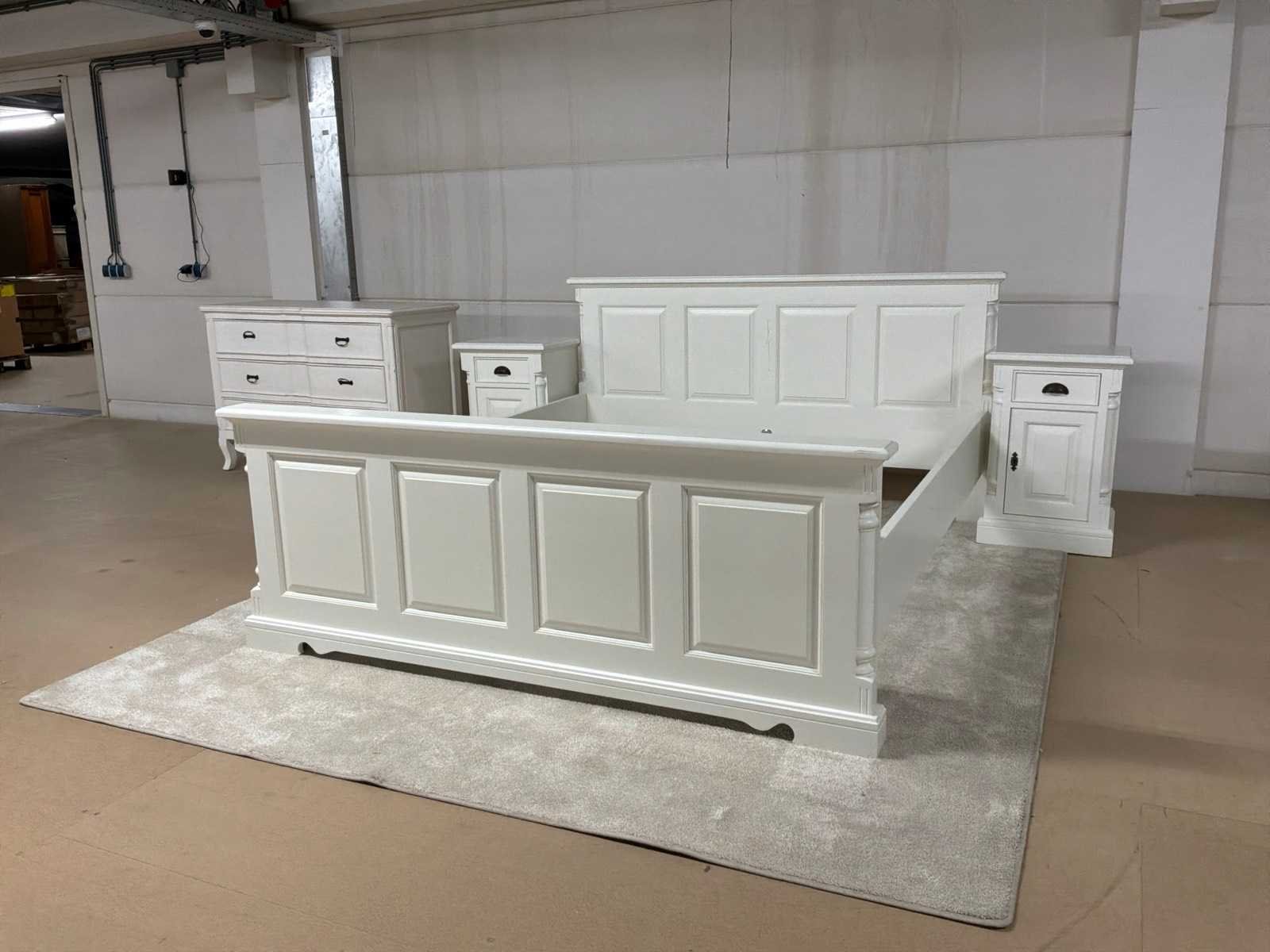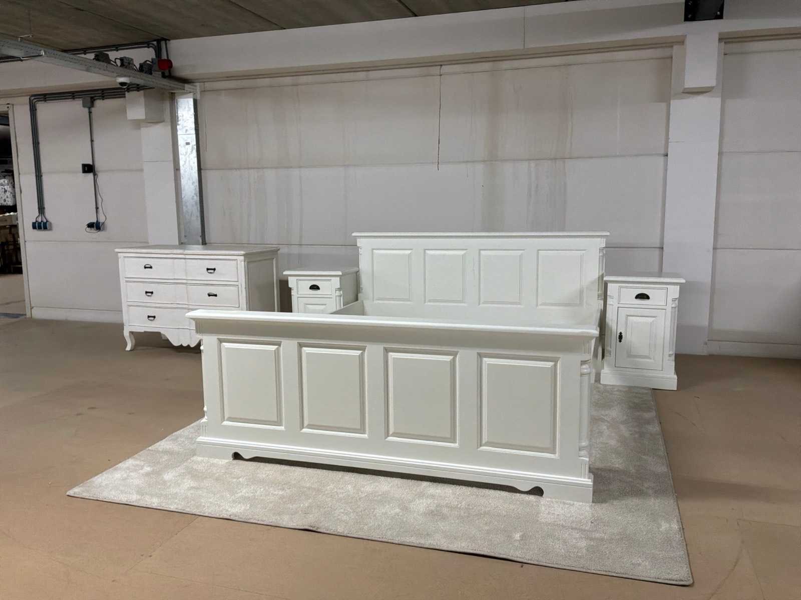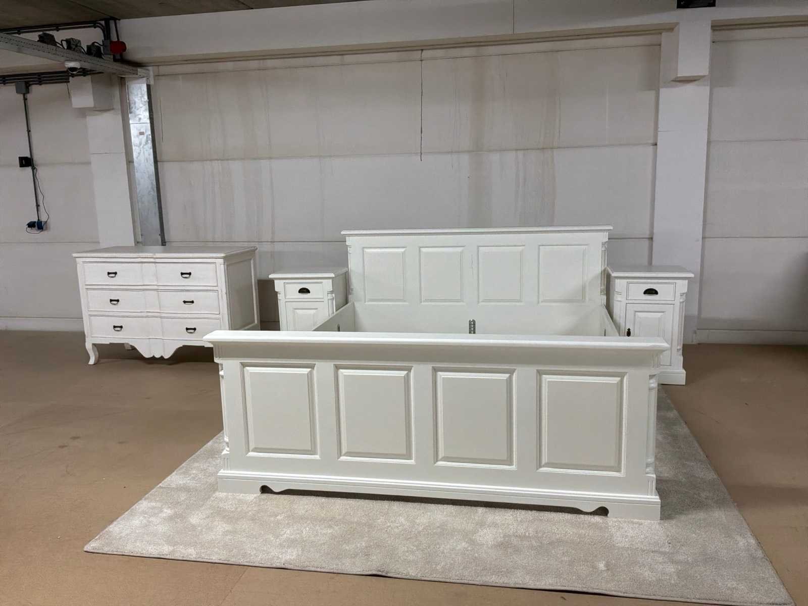 Slaapkamerset bestaat uit bedframe exclusief lattenbodem. 2 nachtkastjes en 1 kledingkast. Afmetingen bedframe 180x210 cm Nachtkastje 38x50x75 cm Kledingkast 55x130x91 Model: Alexia