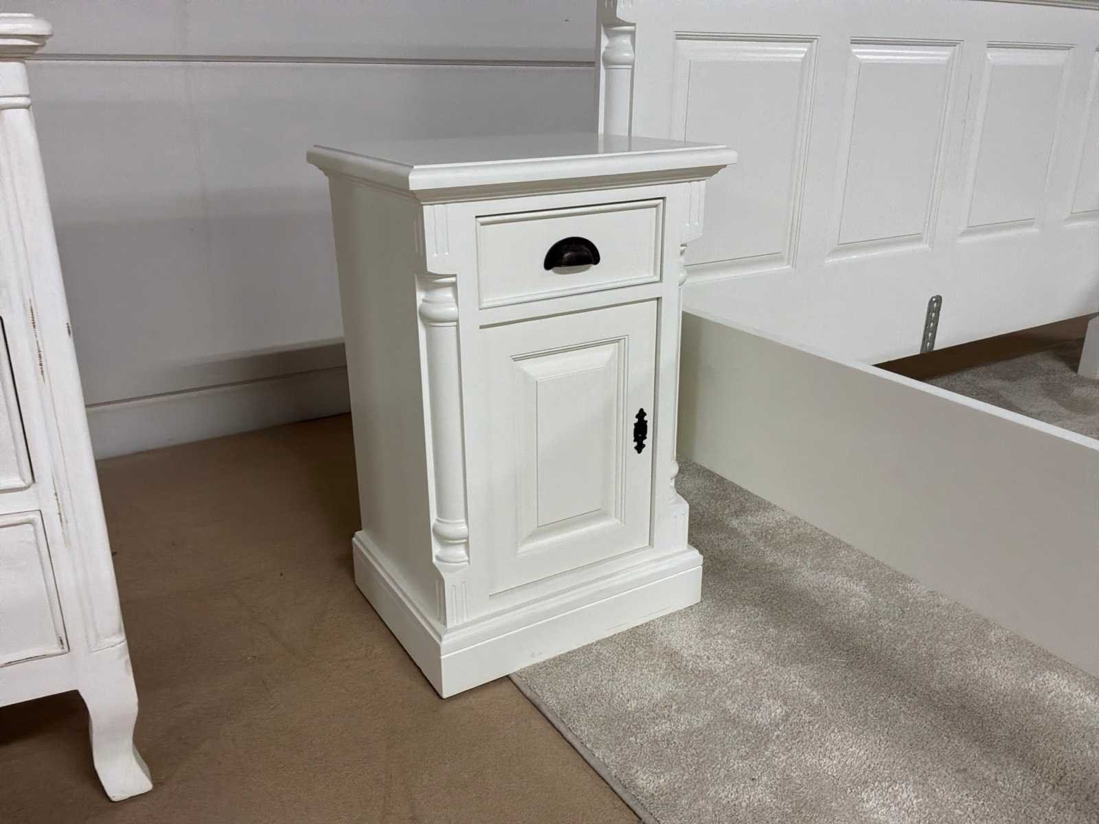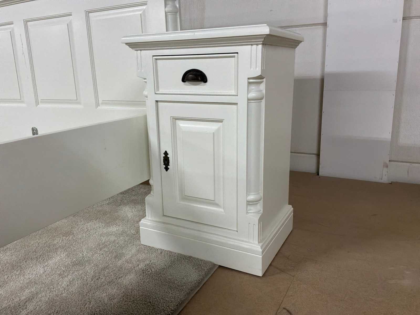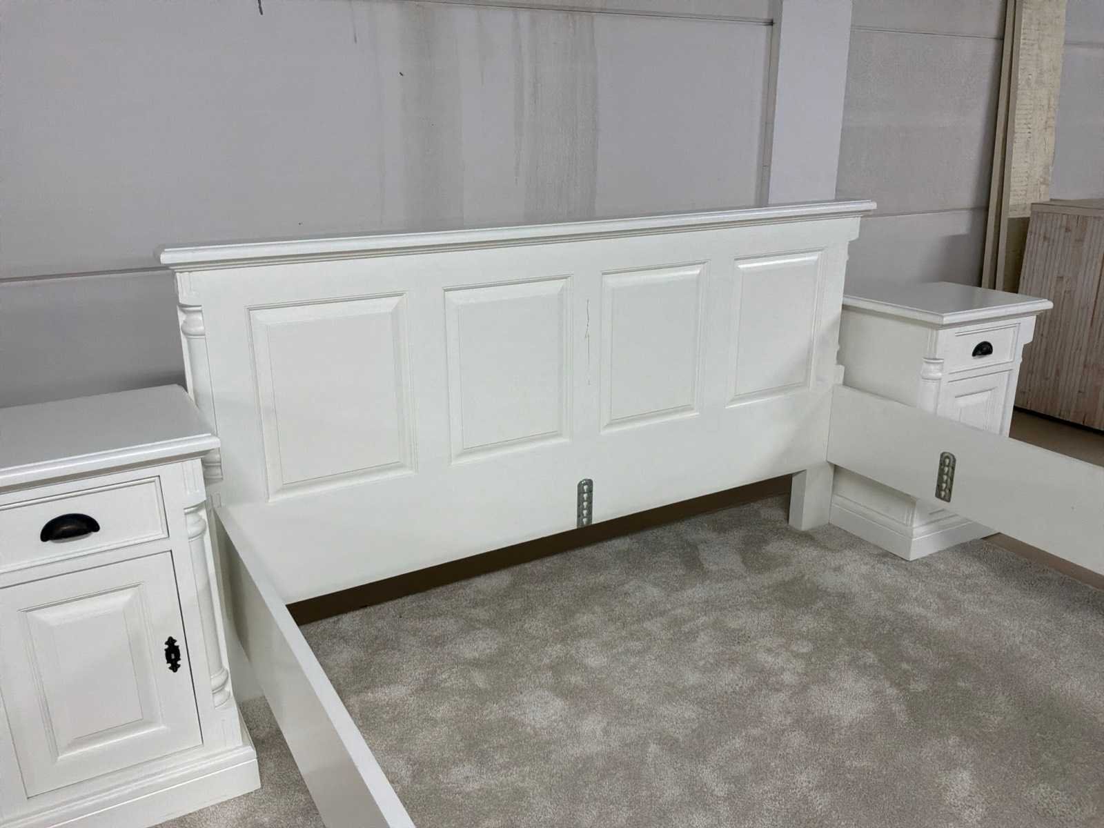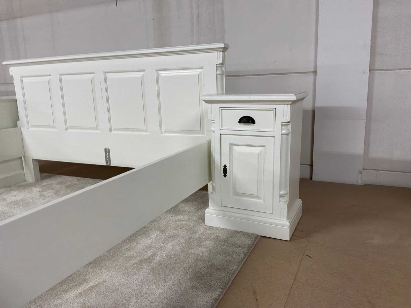 Slaapkamerset bestaat uit bedframe exclusief lattenbodem. 2 nachtkastjes en 1 kledingkast. Afmetingen bedframe 180x210 cm Nachtkastje 38x50x75 cm Kledingkast 55x130x91 Model: Alexia