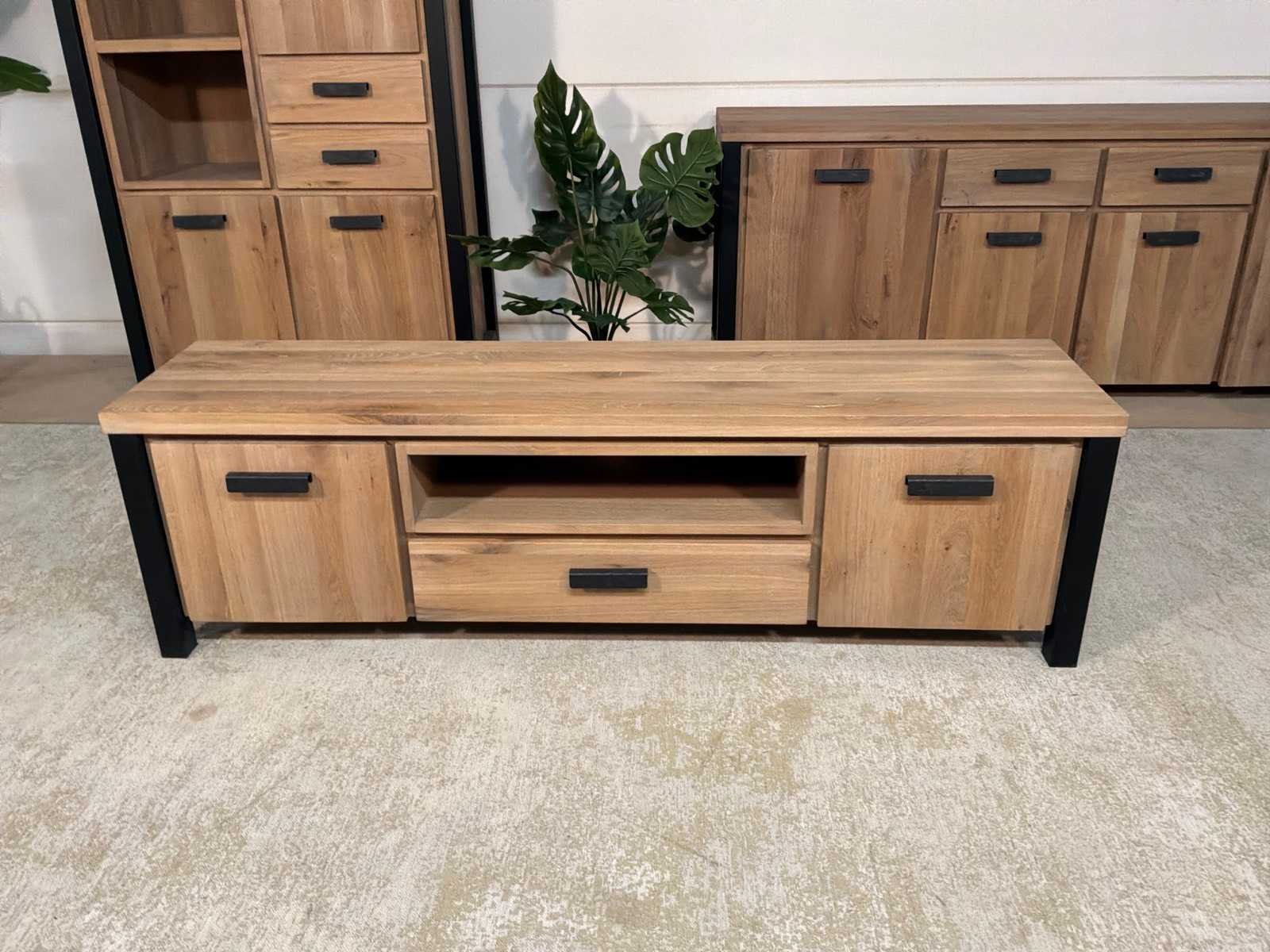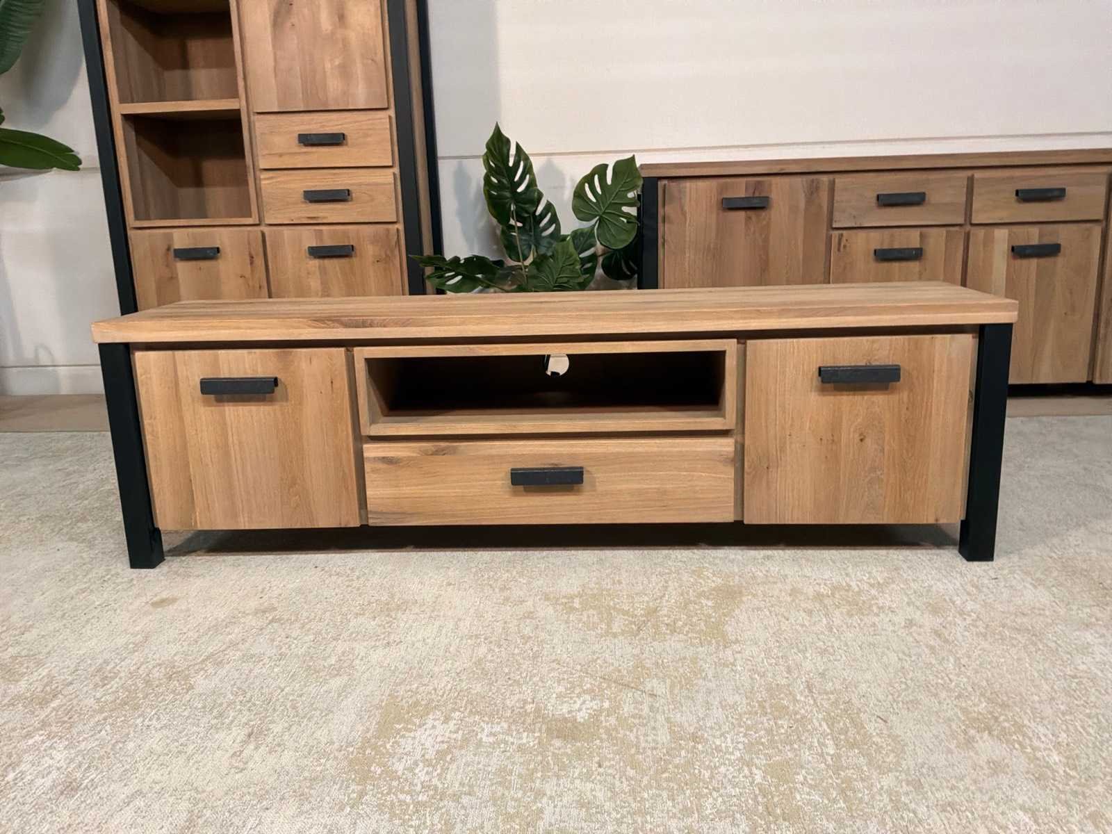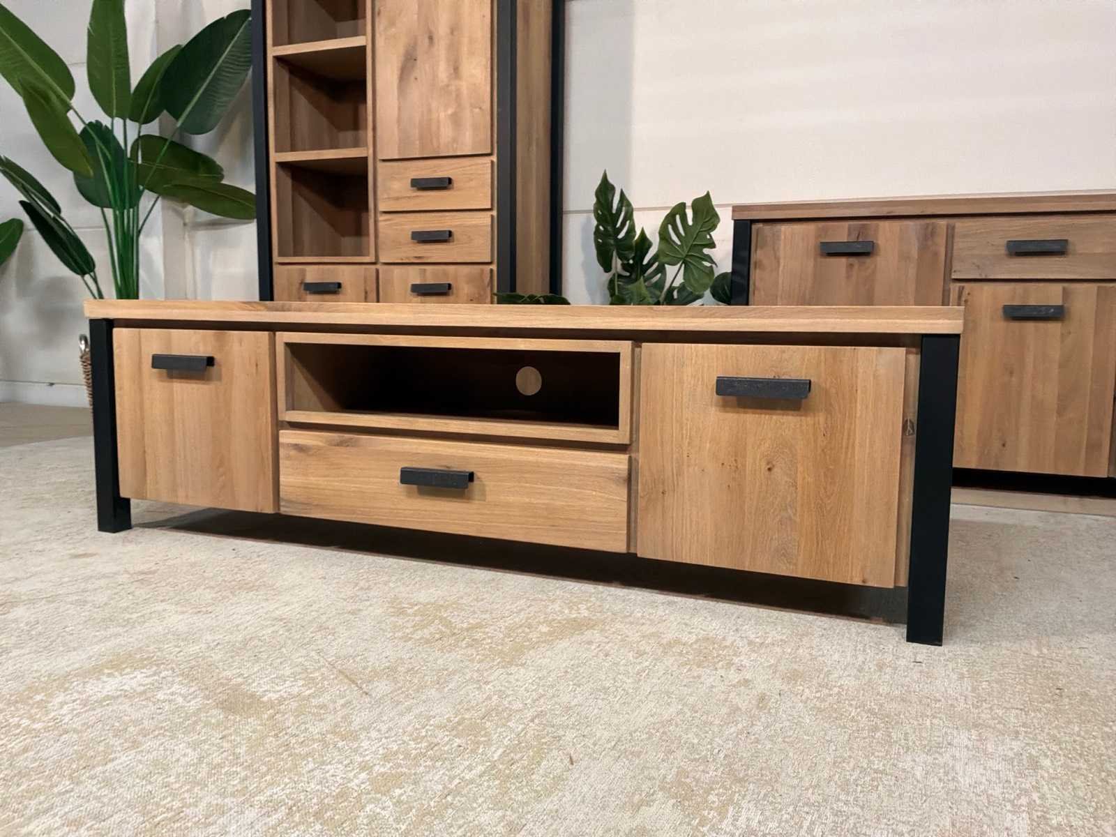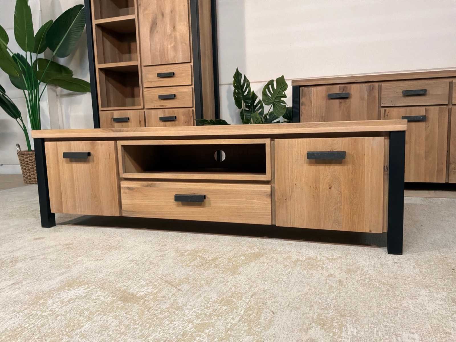 Zware uitvoering. Tv meubel is voorzien van soft-close Model: Seattle Lengte: 40cm Breedte: 171cm Hoogte: 50cm Materiaal: Hout en ijzer