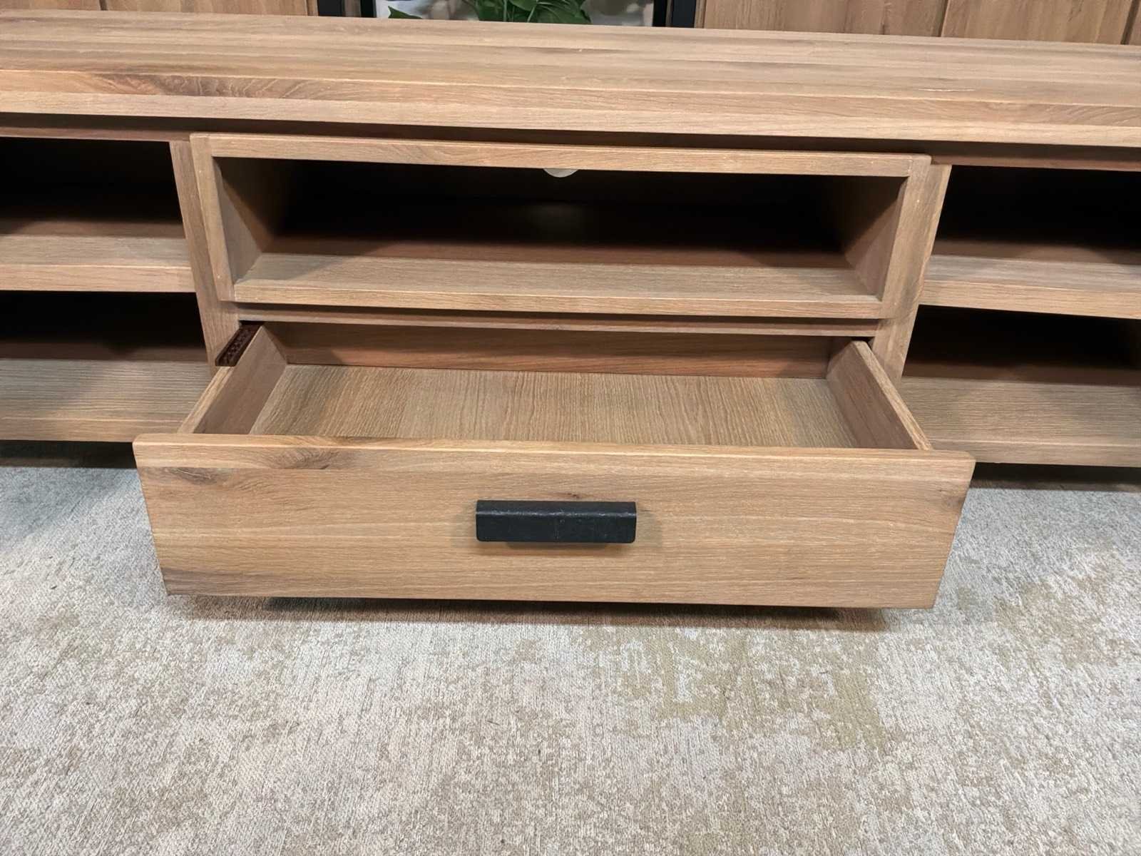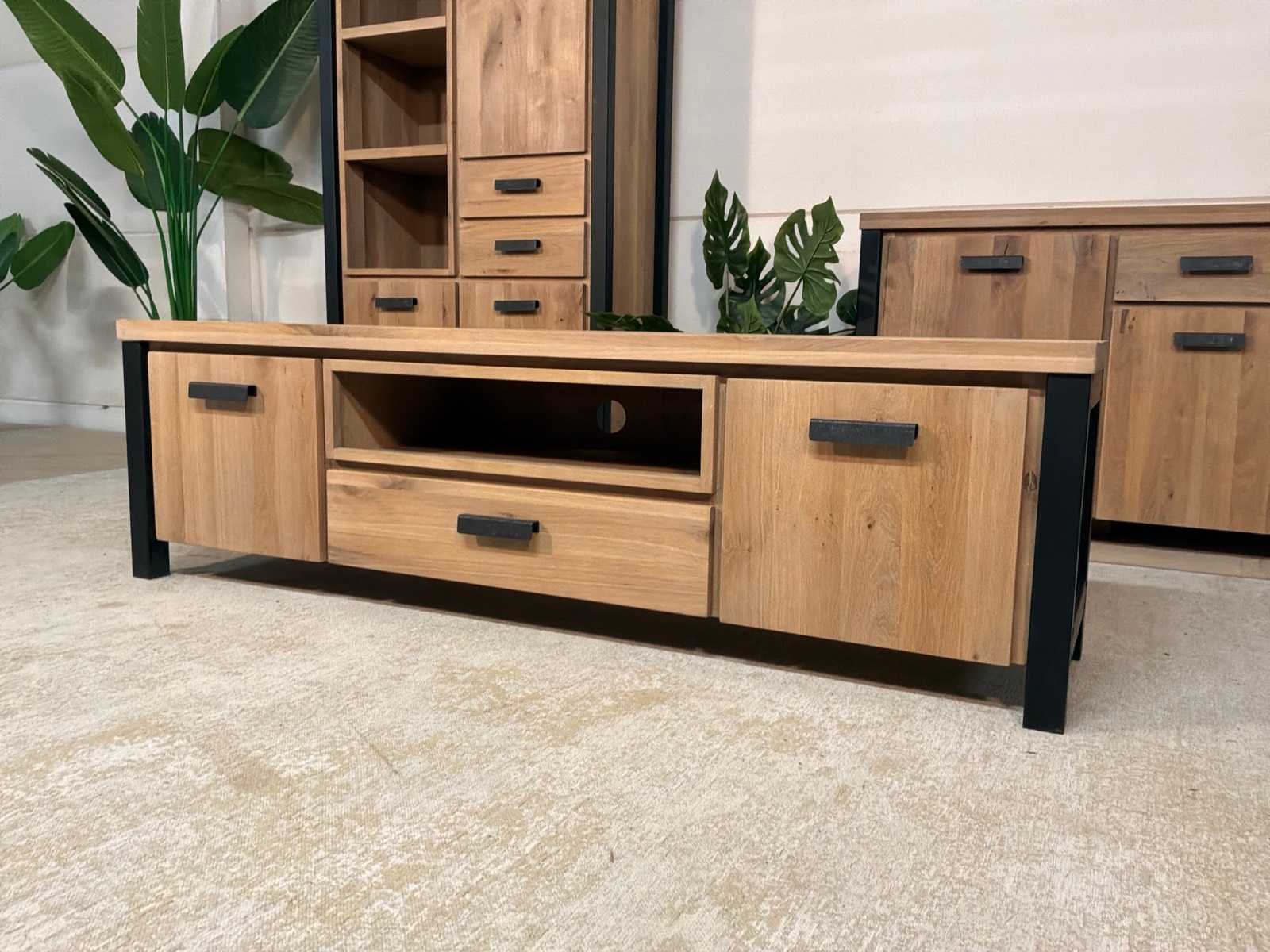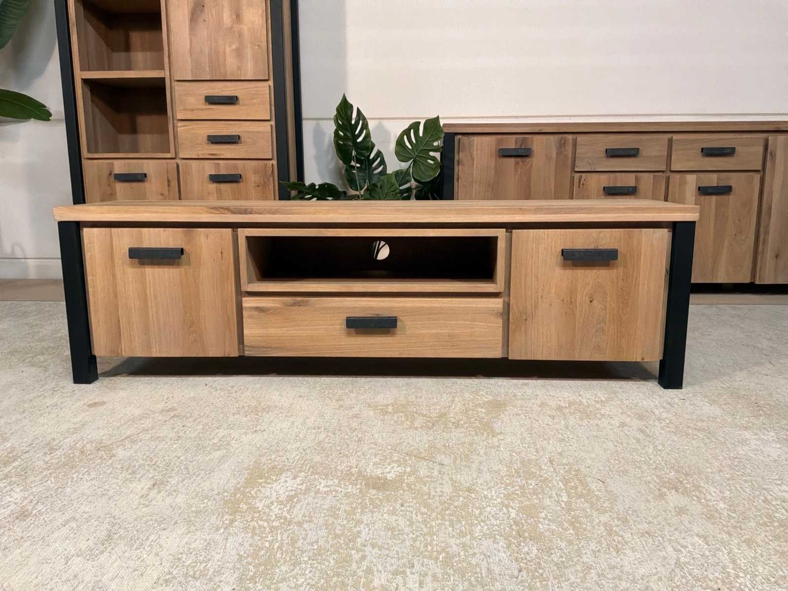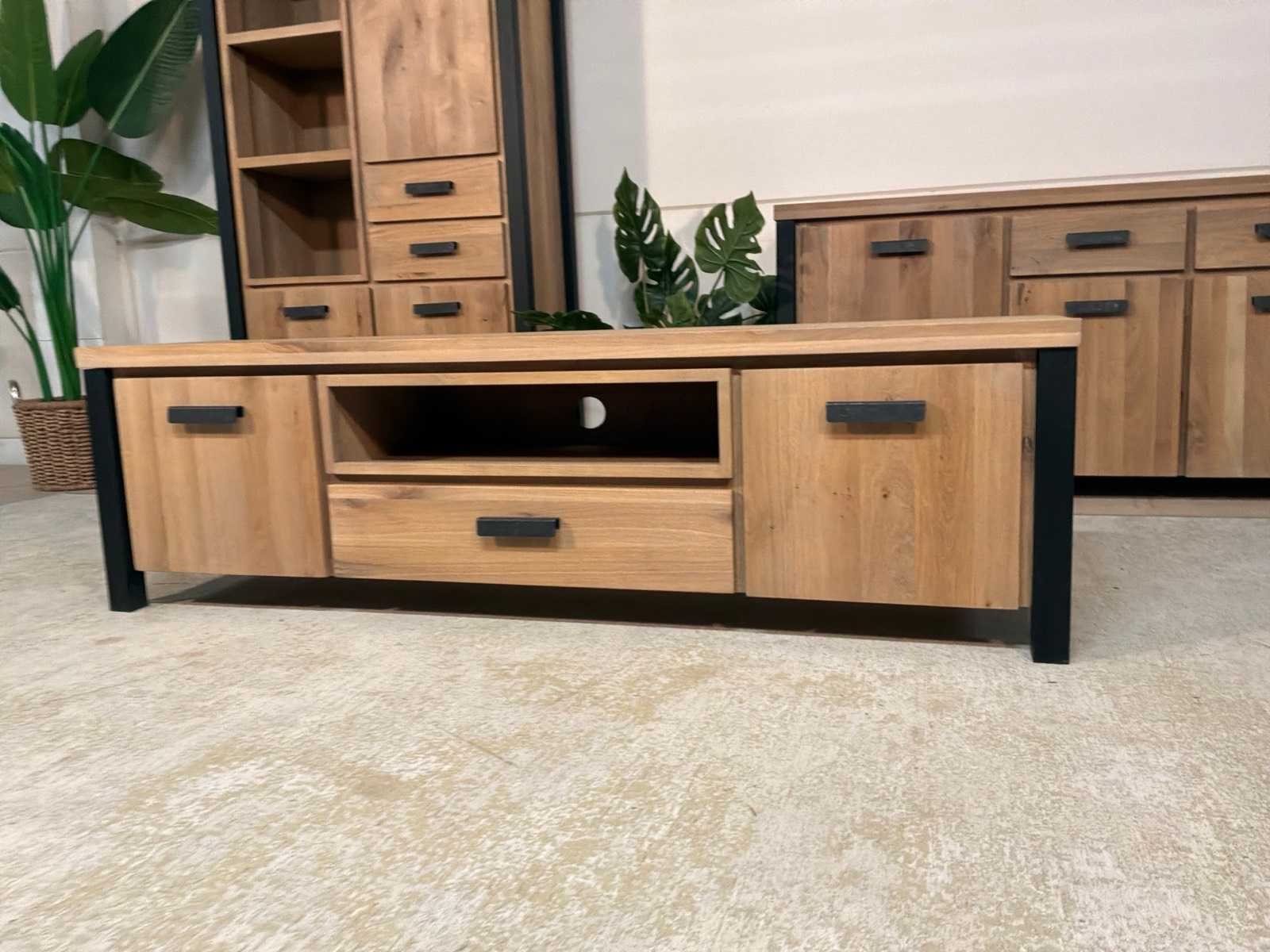 Zware uitvoering. Tv meubel is voorzien van soft-close Model: Seattle Lengte: 40cm Breedte: 171cm Hoogte: 50cm Materiaal: Hout en ijzer