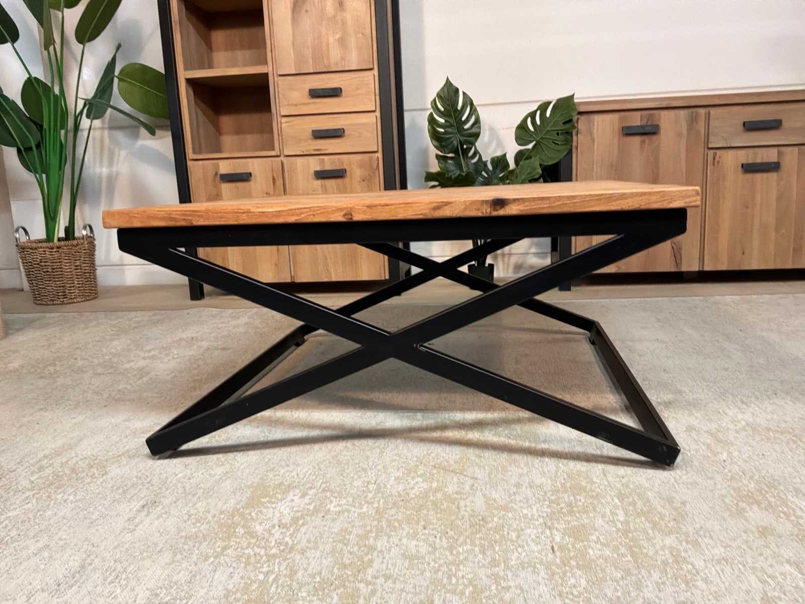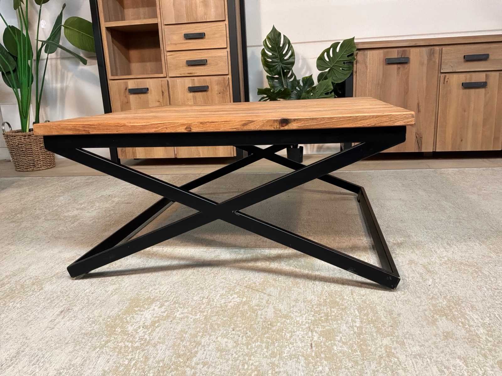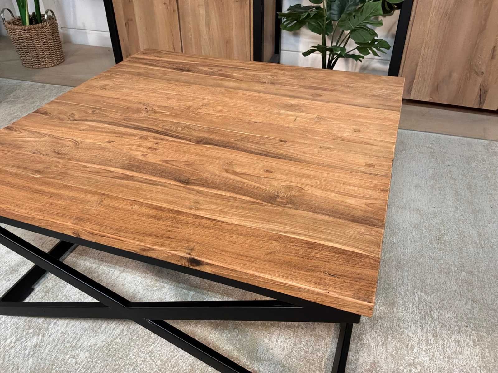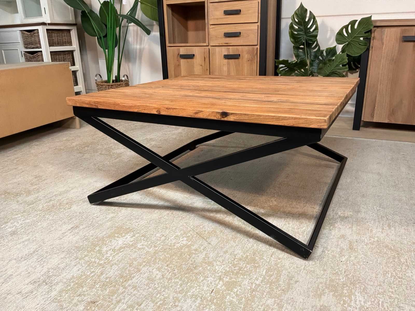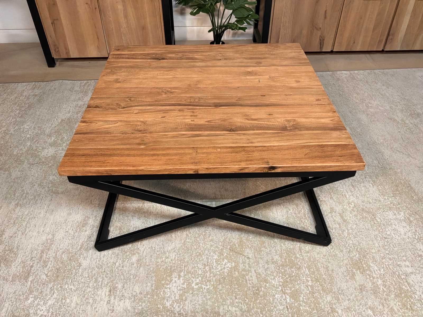 Zware uitvoering. Model: Oklahoma Lengte: 103cm Breedte: 103cm Hoogte: 50cm Materiaal: Hout en ijzer