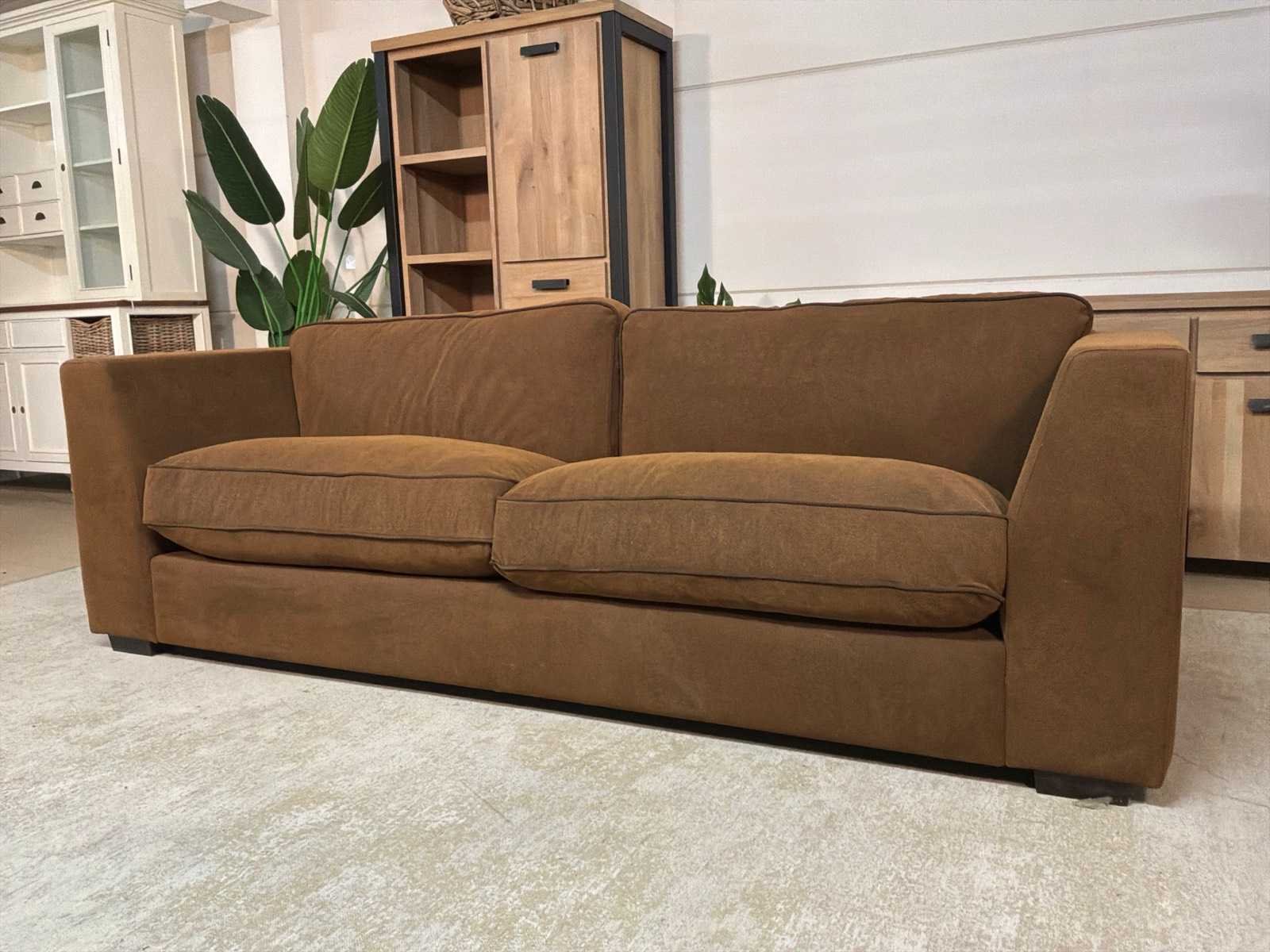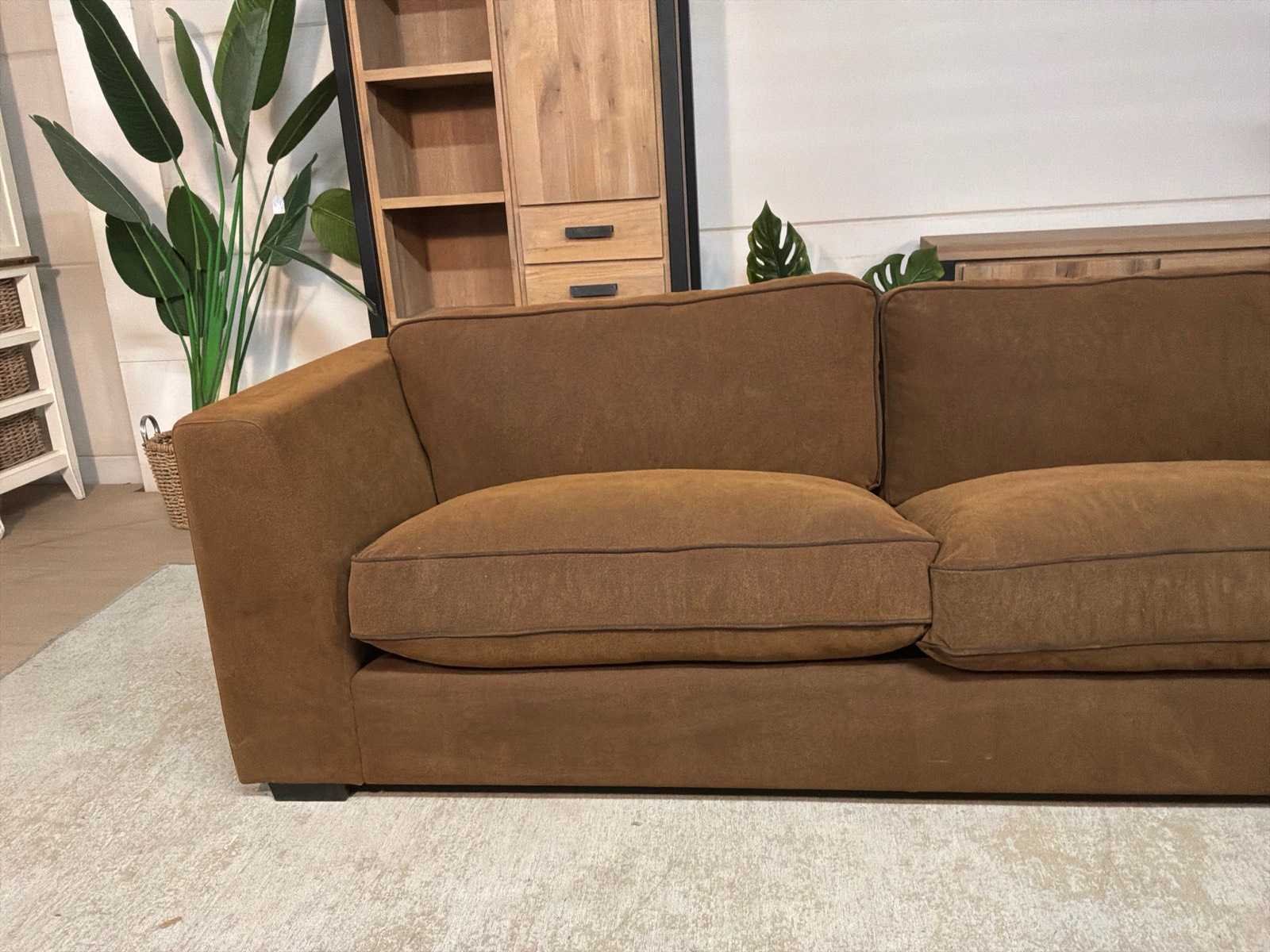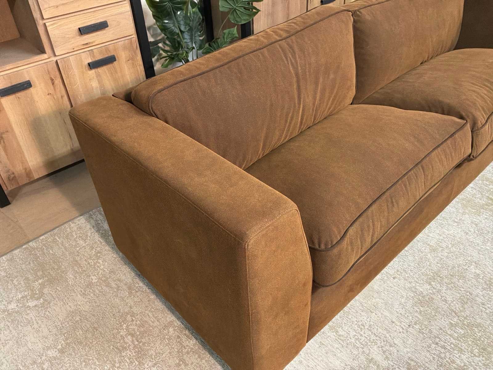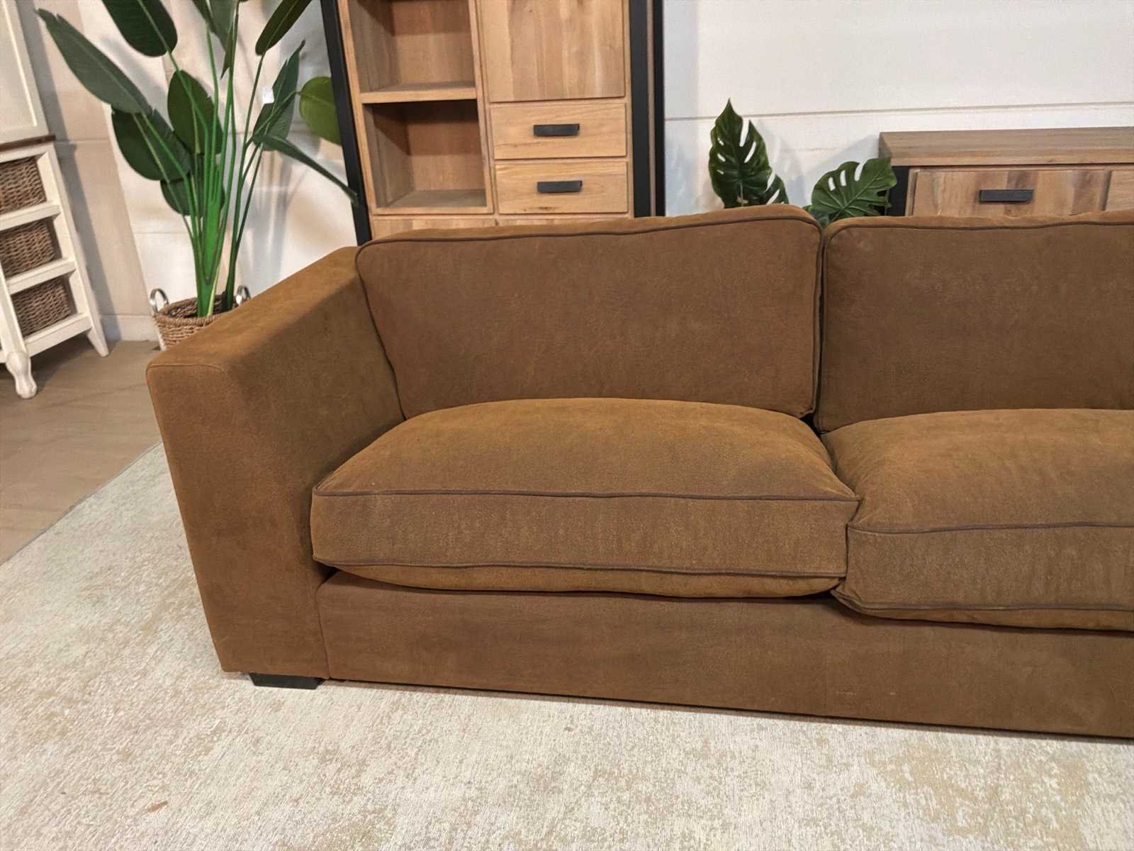 Model: Ivory Kleur: Bruin Lengte: 88cm Breedte: 240cm Hoogte: 71cm Zithoogte: 50cm Diepte: 50cm Materiaal: Geborsteld leer