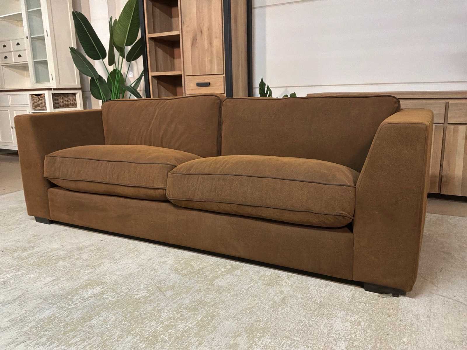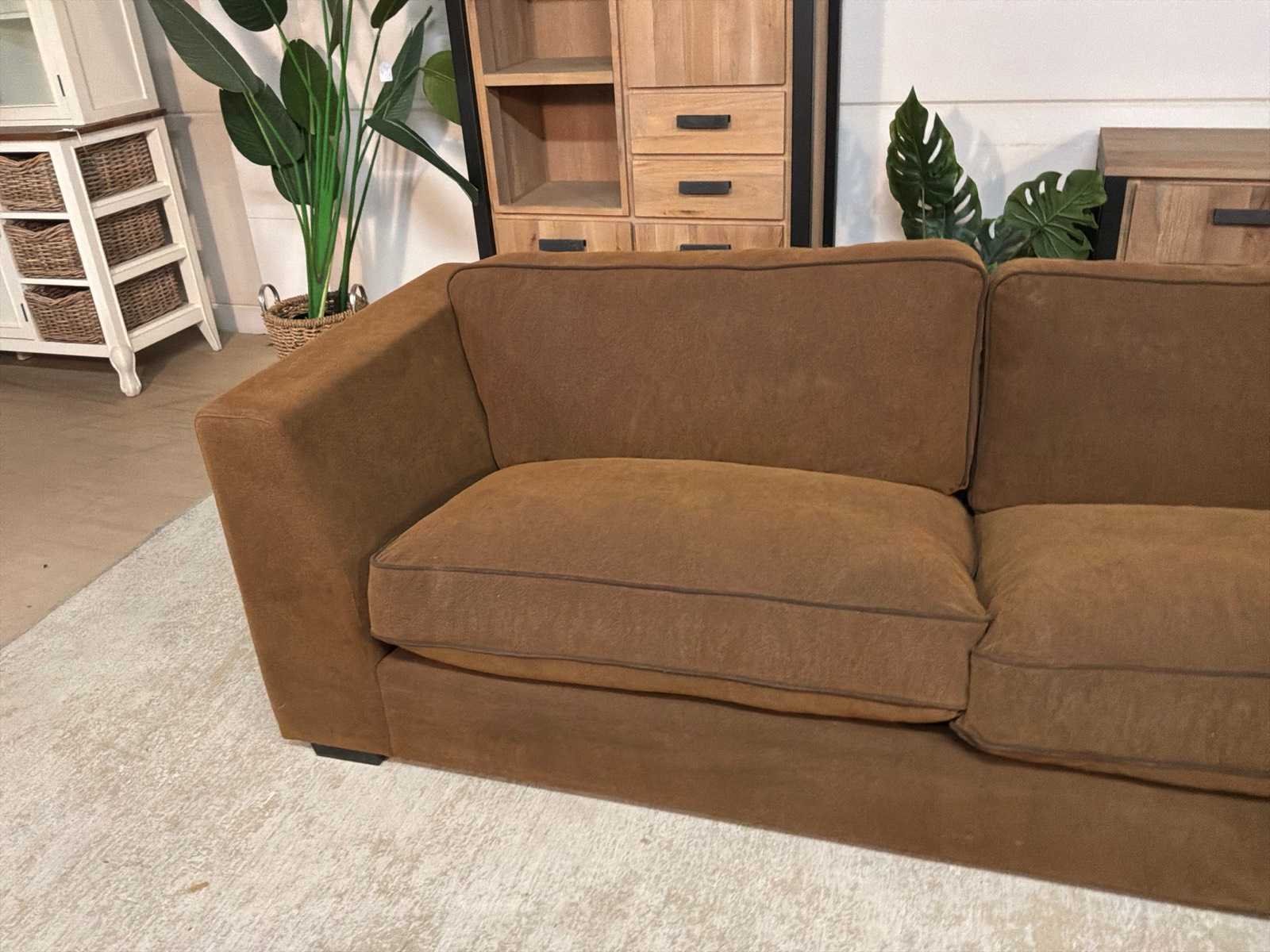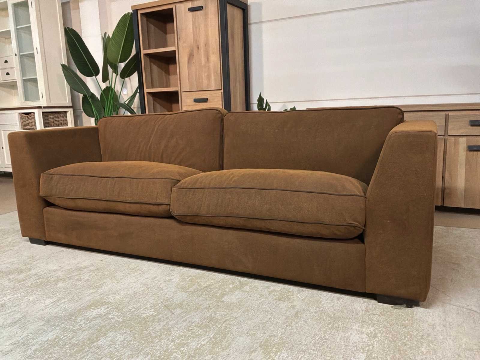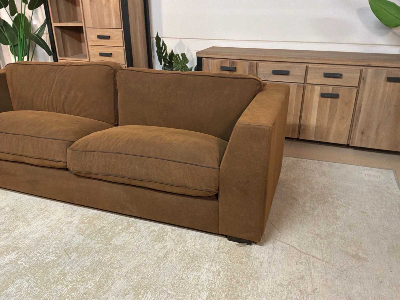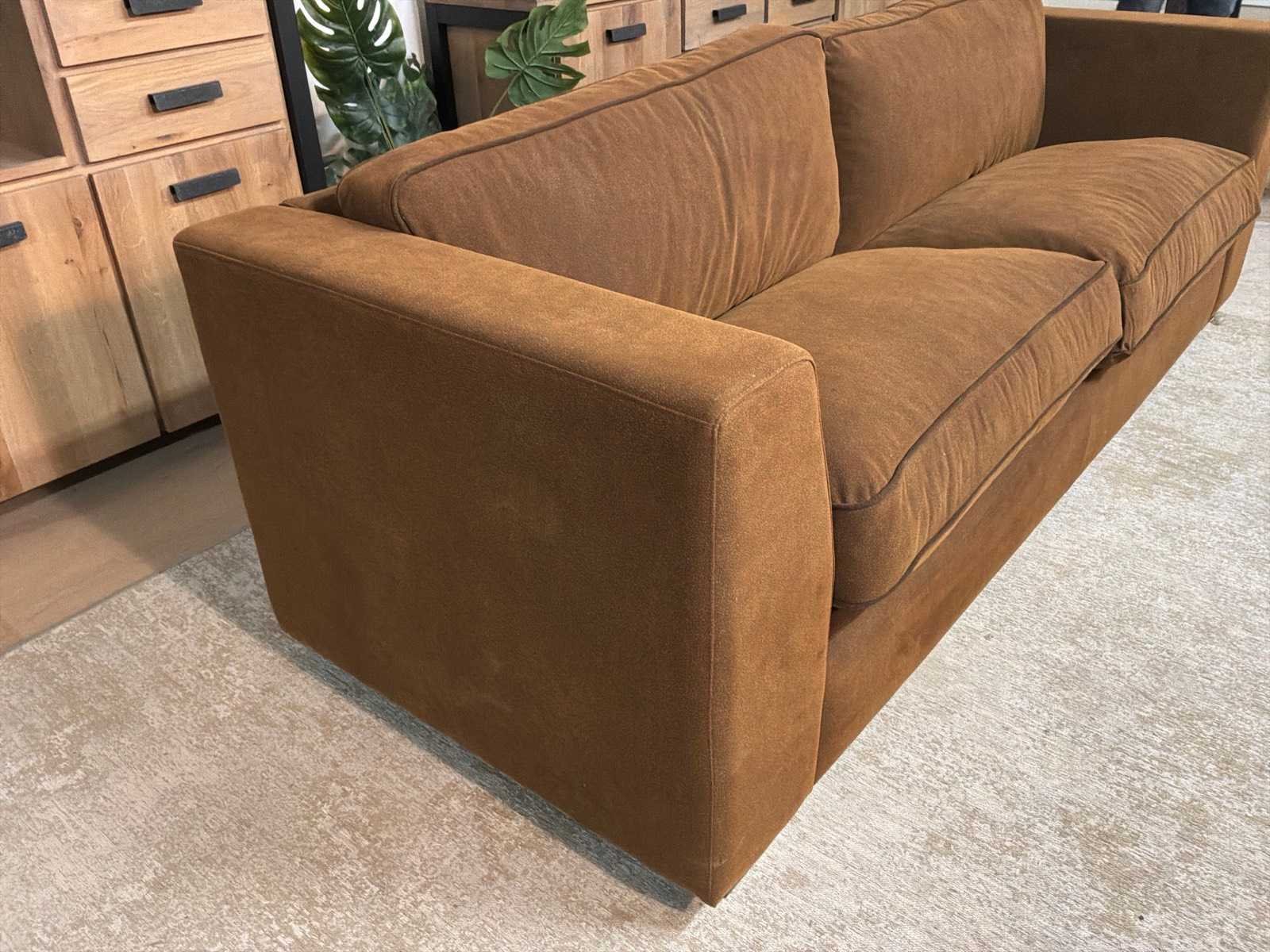 Model: Ivory Kleur: Bruin Lengte: 88cm Breedte: 240cm Hoogte: 71cm Zithoogte: 50cm Diepte: 50cm Materiaal: Geborsteld leer