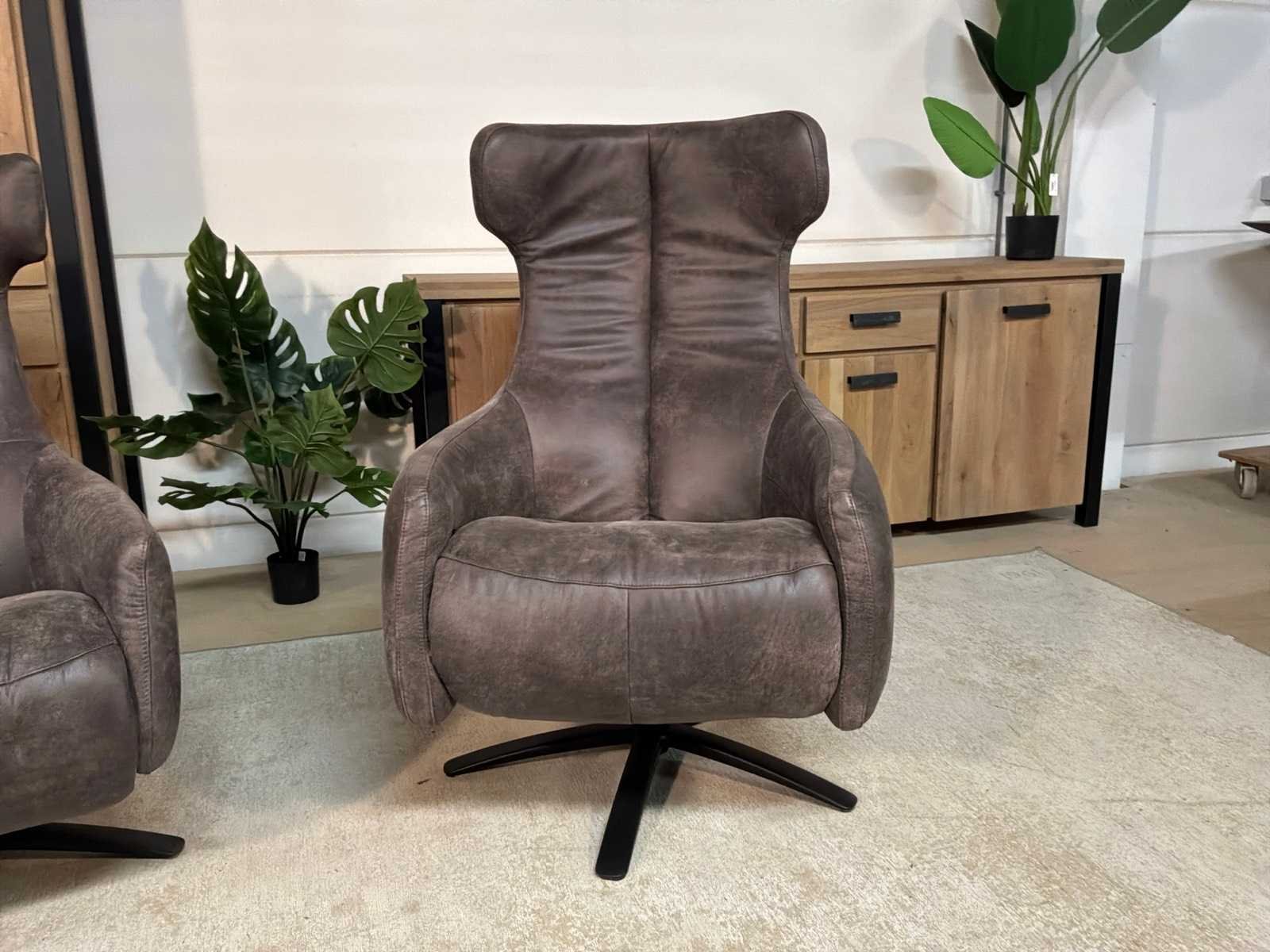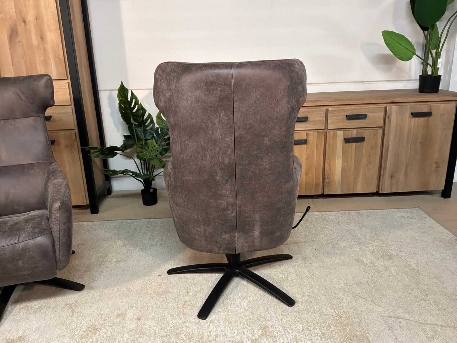 Fauteuil beschikt over een verstelbare voetenbankje Model: Samson Materiaal: Leer