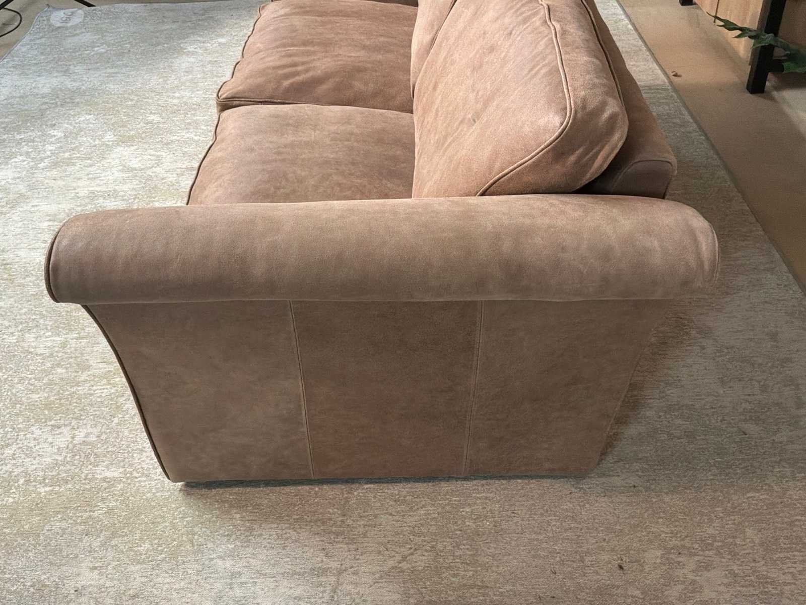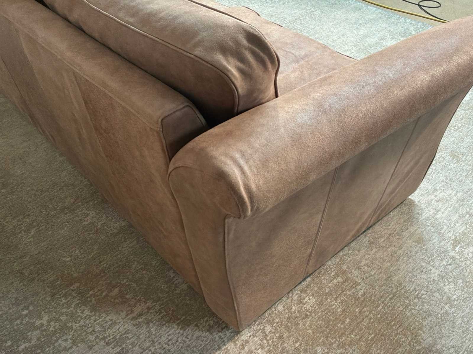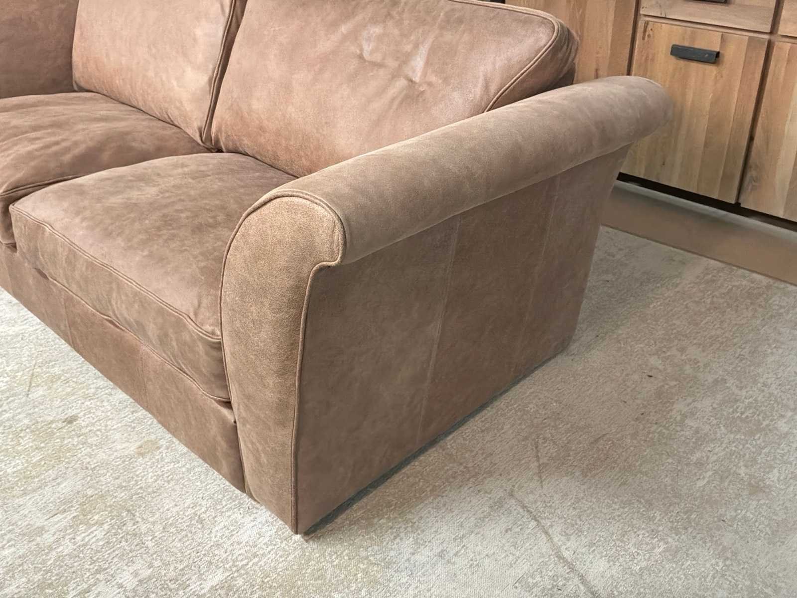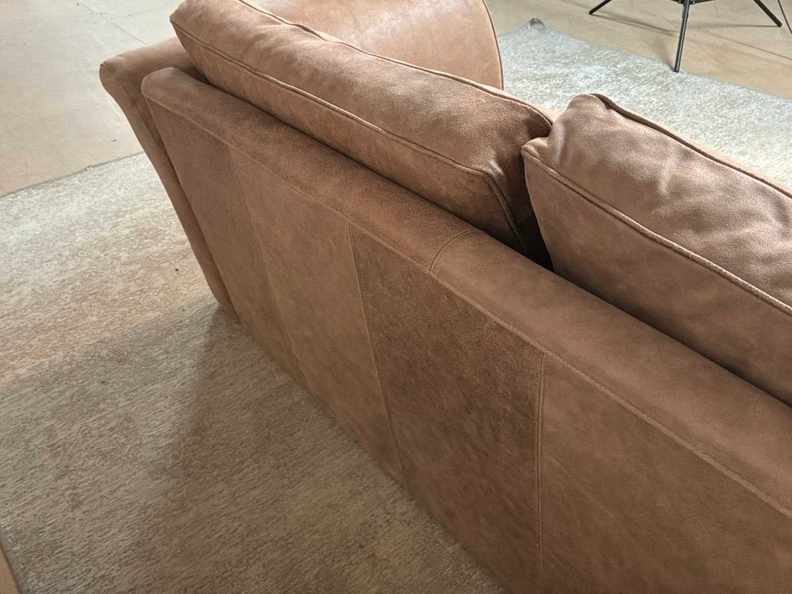 Mist 1 pootje. Model: Savannah Kleur: Bruin Lengte: 95cm Breedte: 220cm Hoogte: 75cm Materiaal: Geborsteld leer