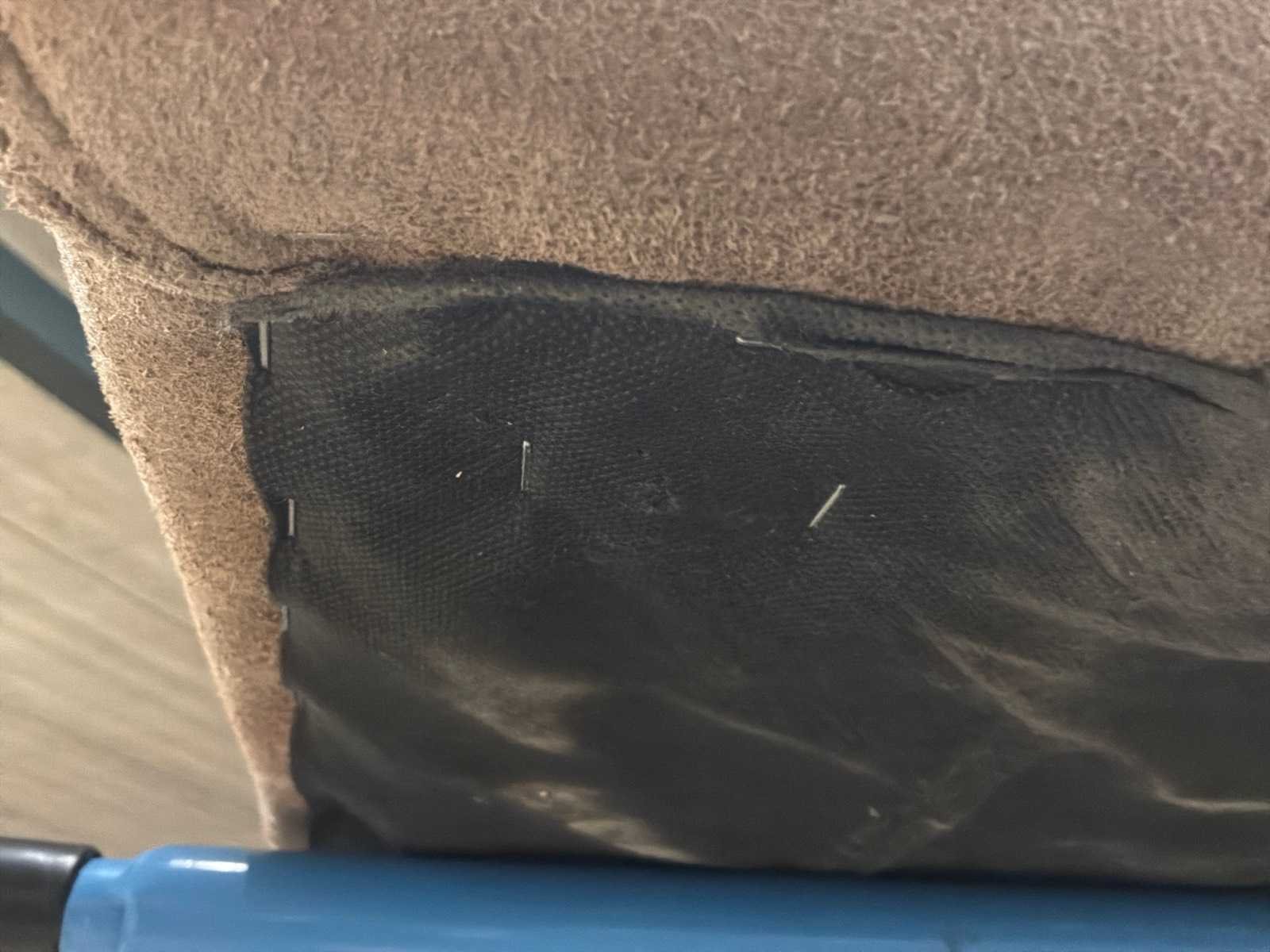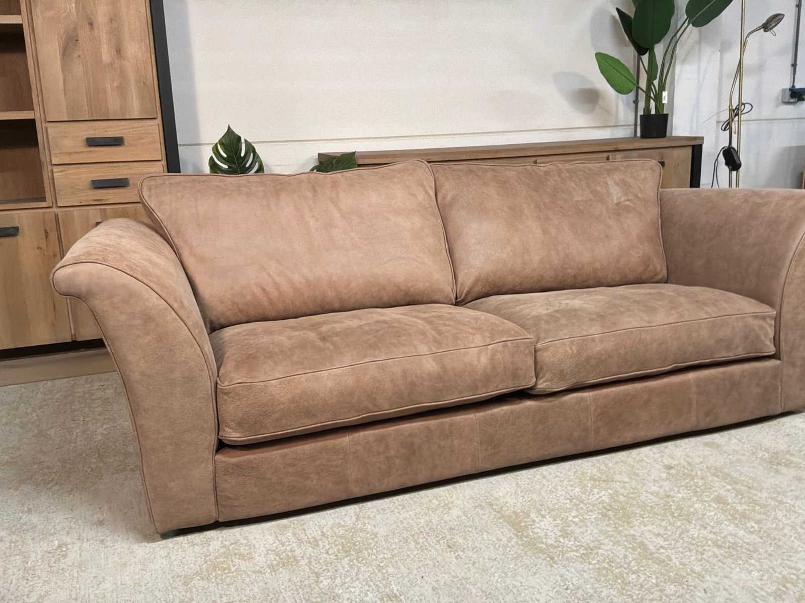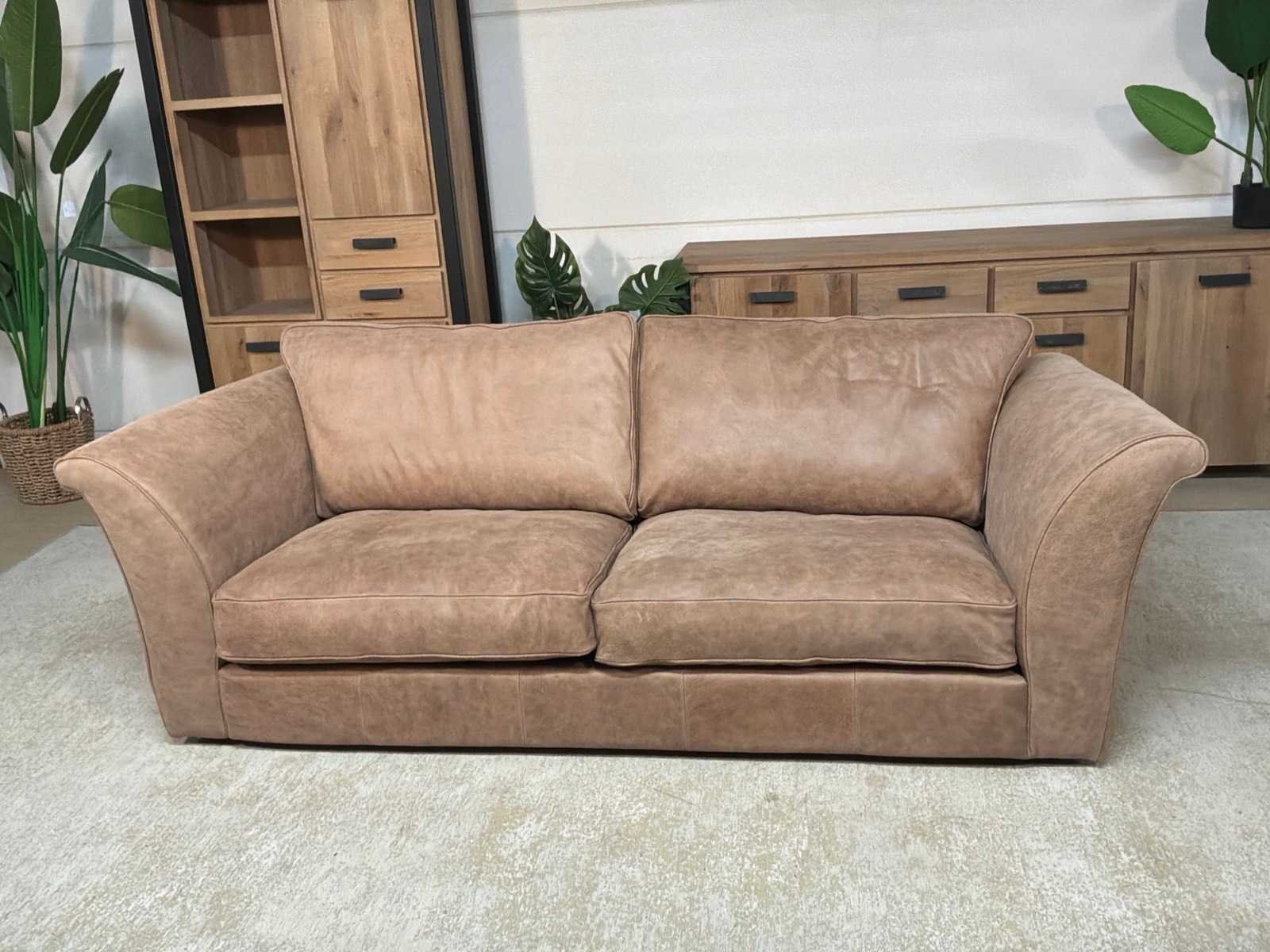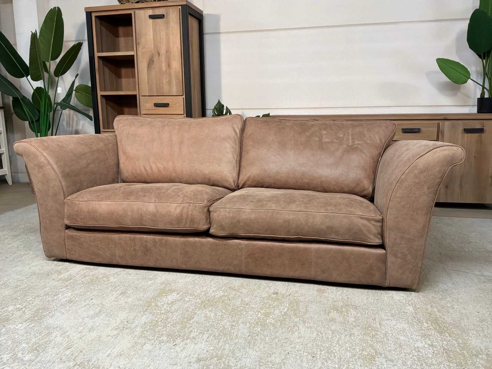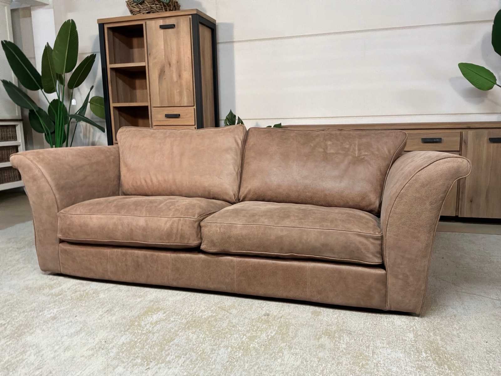 Mist 1 pootje. Model: Savannah Kleur: Bruin Lengte: 95cm Breedte: 220cm Hoogte: 75cm Materiaal: Geborsteld leer
