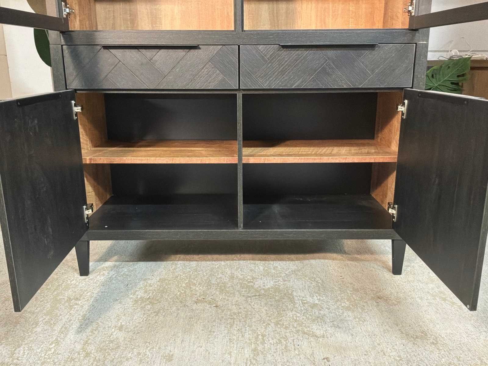 Inclusief verlichting. Buffetkast is 2-delig Buffetkast is voorzien van soft-close Zware uitvoering Model: Oregan Lengte: 48cm Breedte: 125cm Hoogte: 212cm