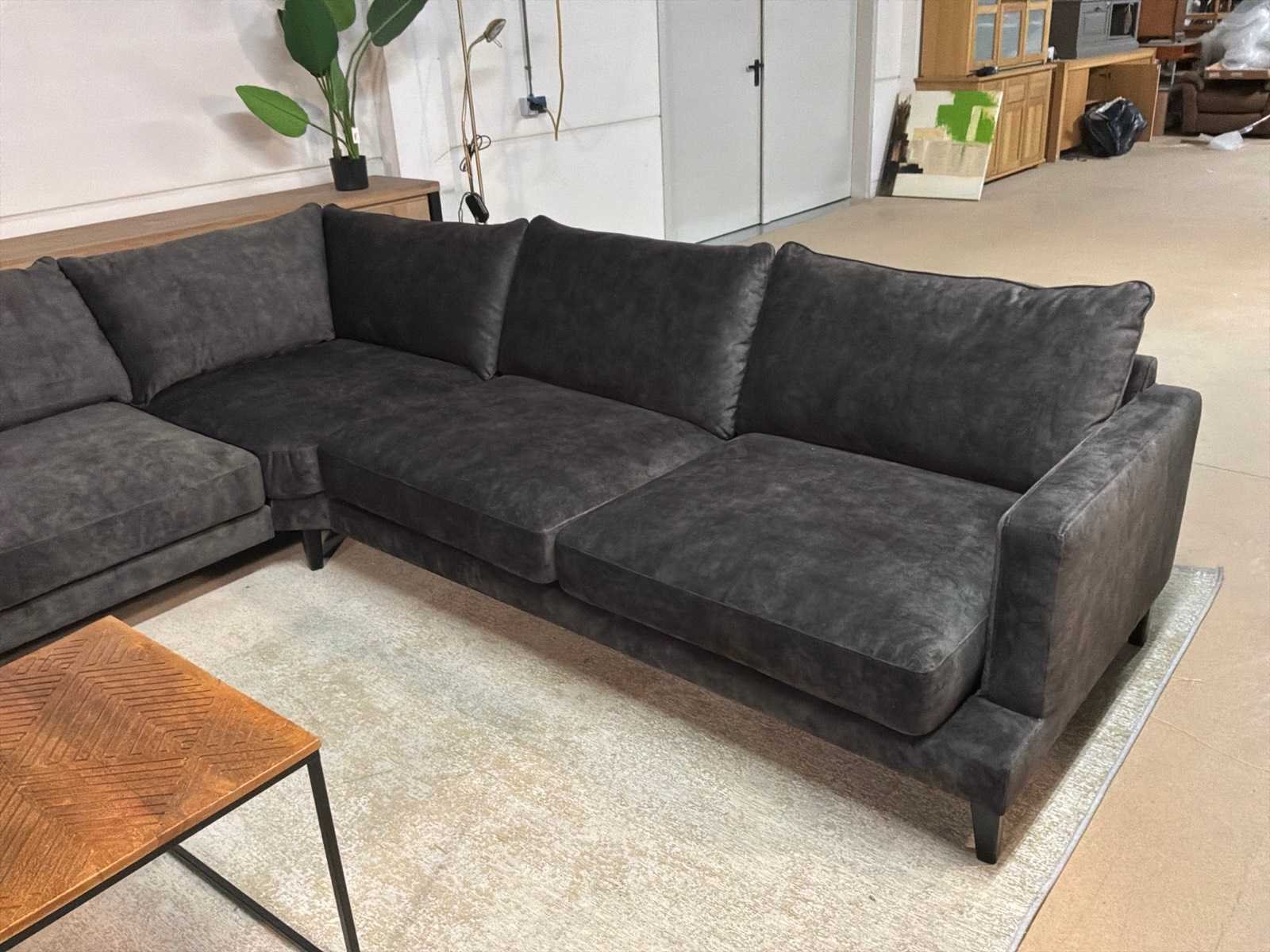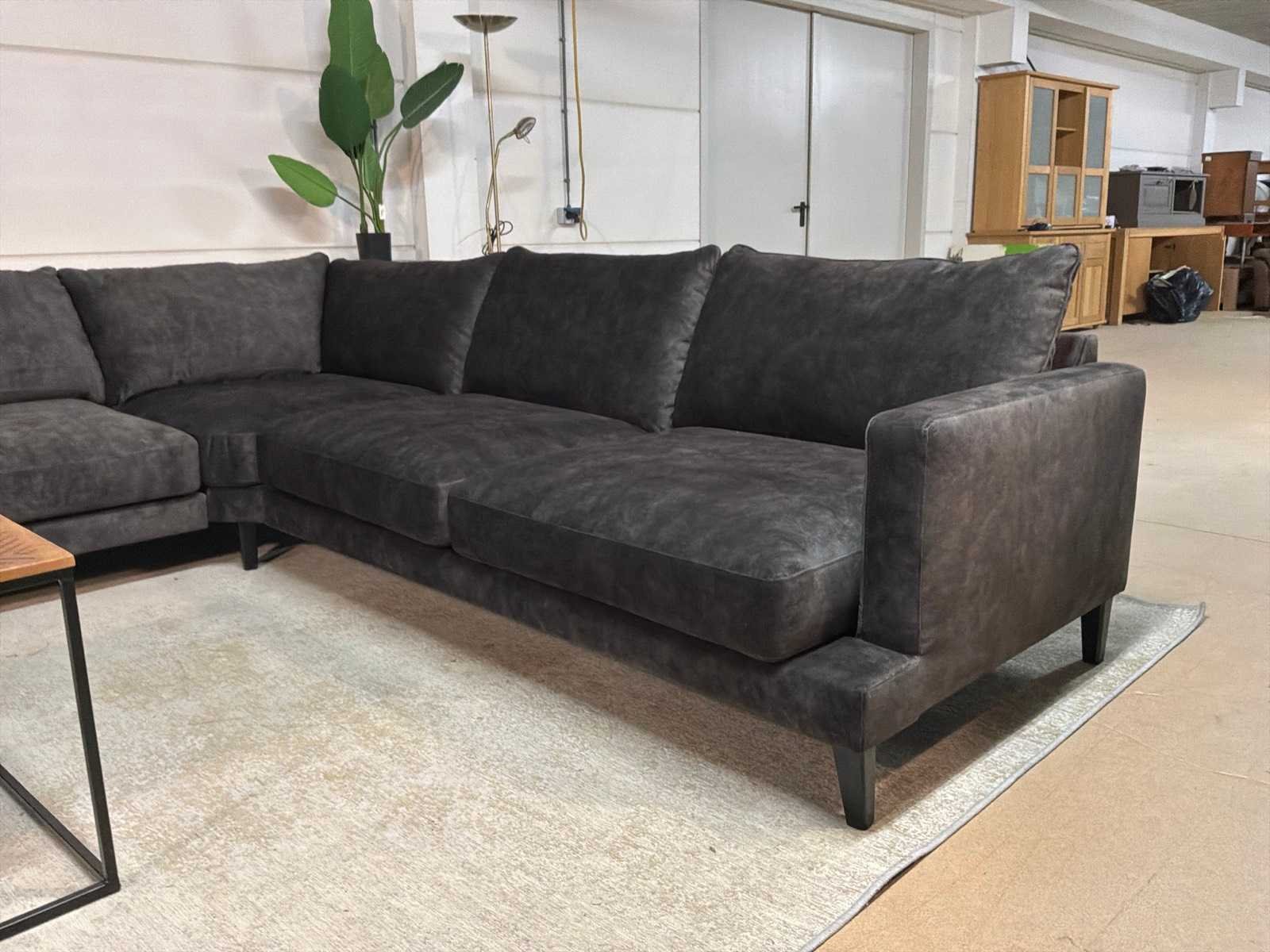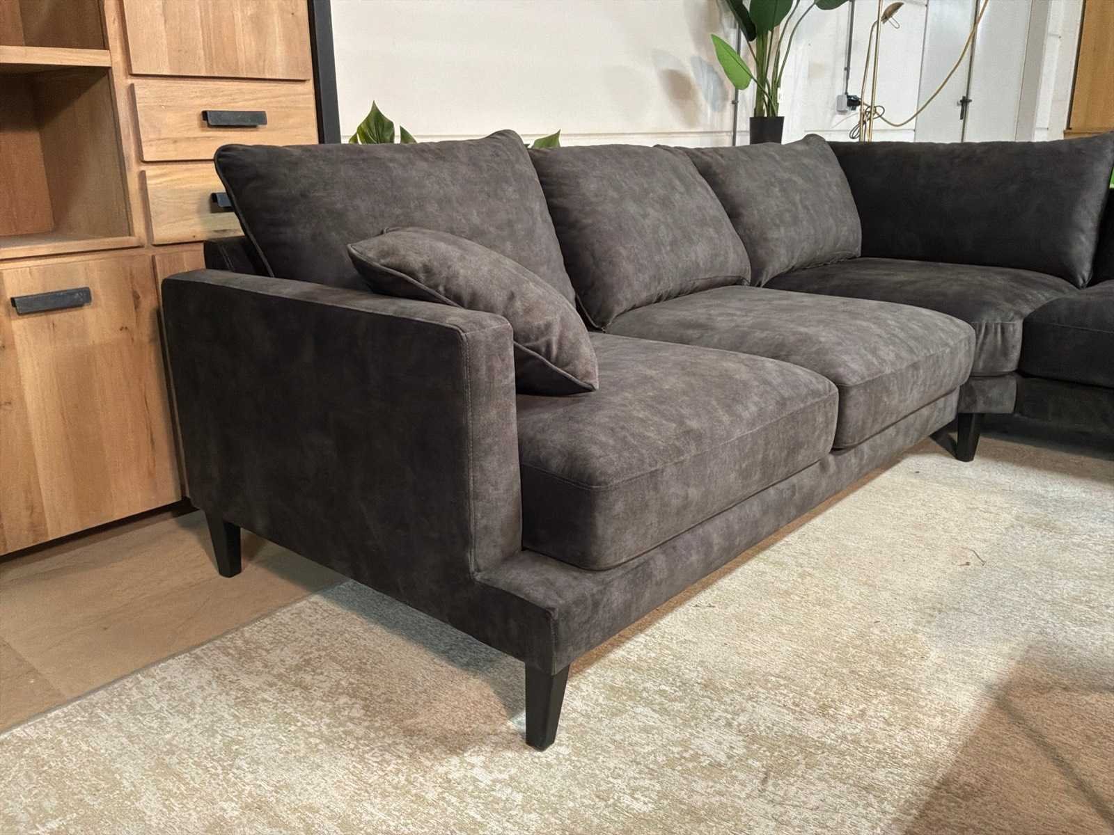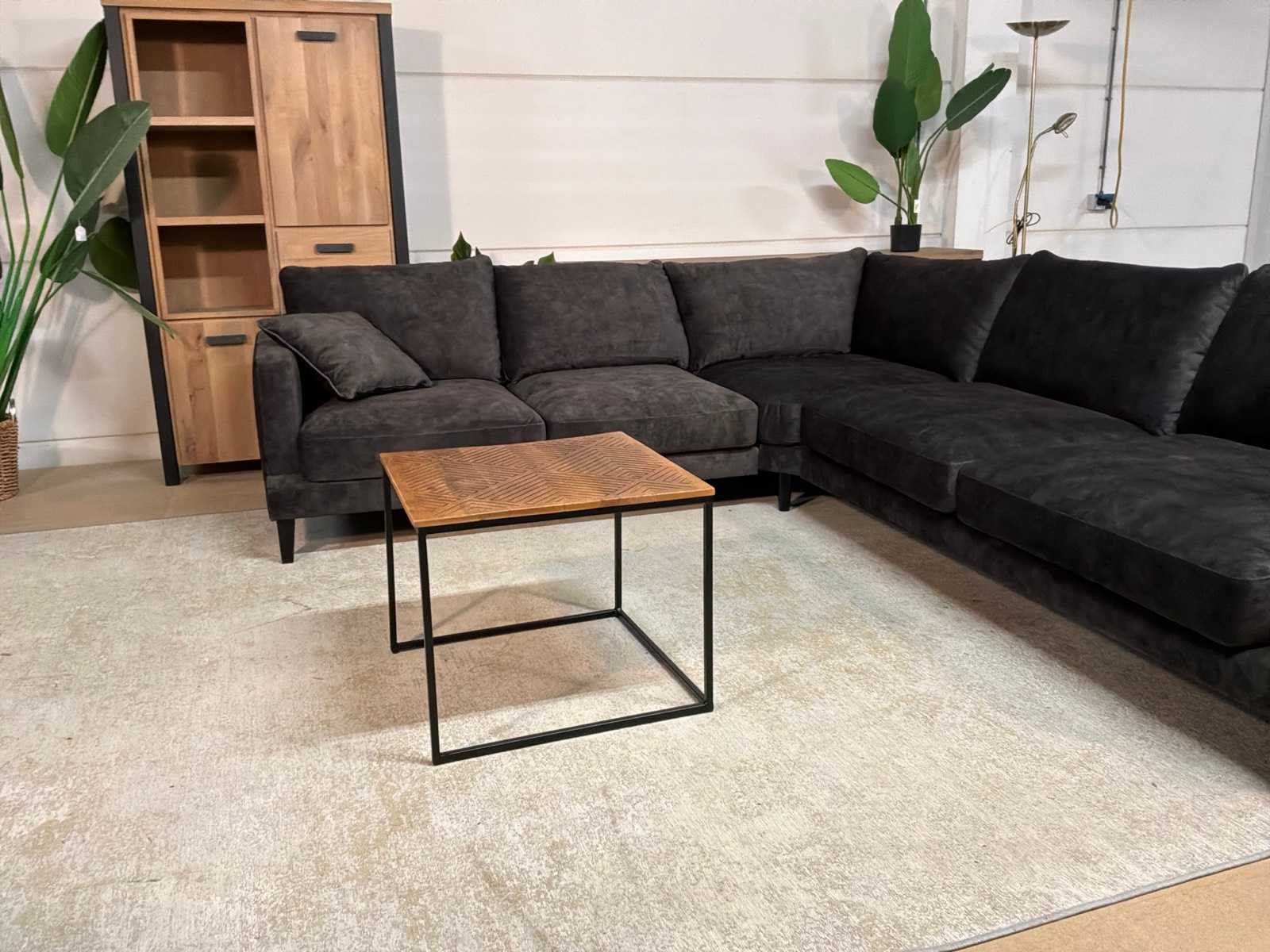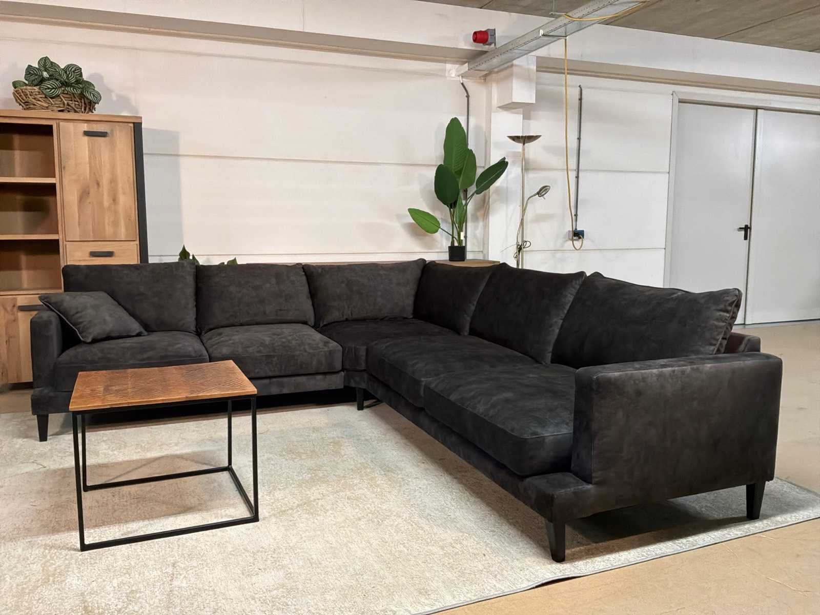 Bankstel is 2-delig Model: Noire Kleur: Zwart Lengte: 295cm Breedte: 265cm Hoogte: 68cm Zithoogte: 44cm Diepte: 64cm Materiaal: Stof