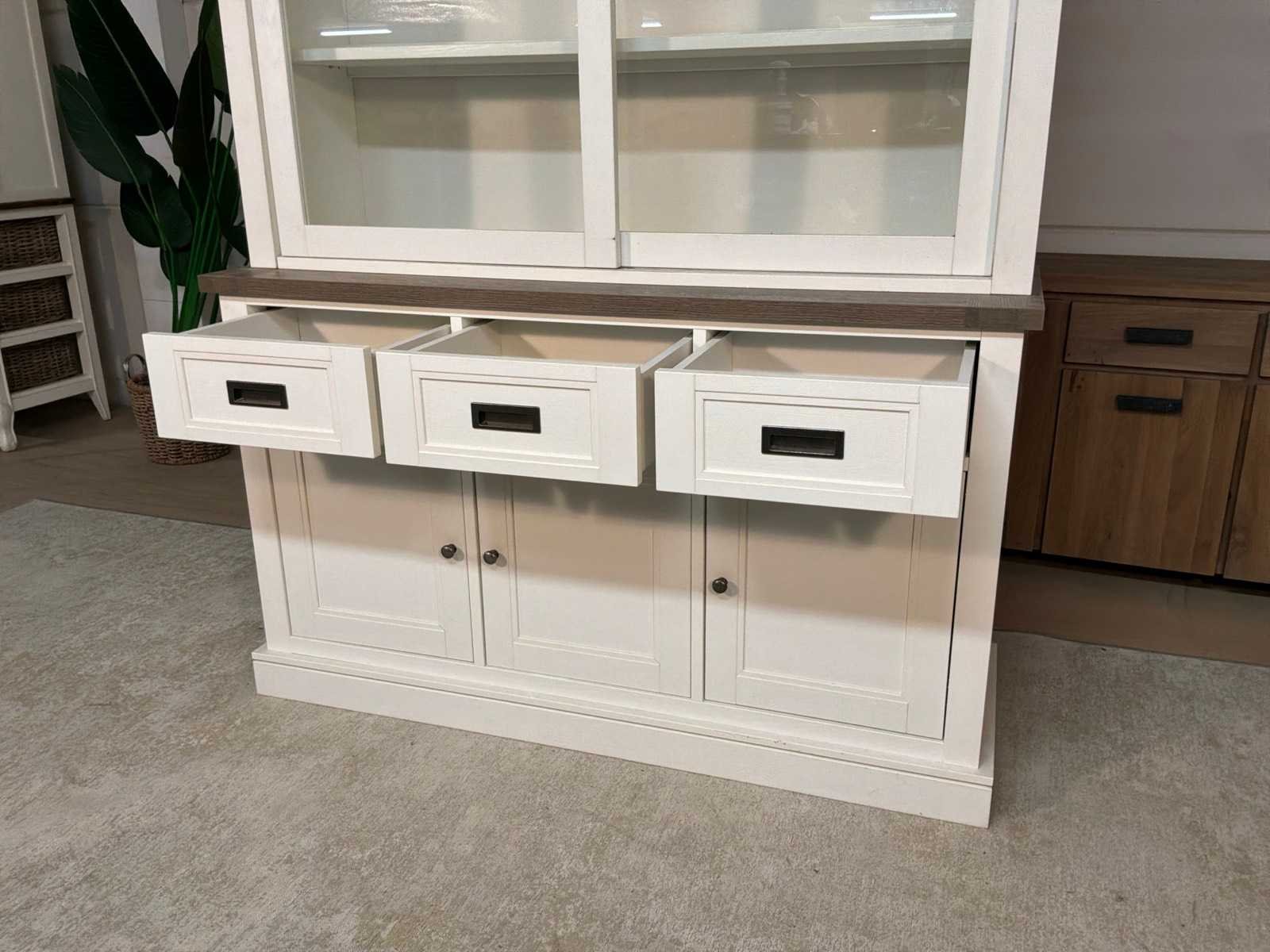 Buffetkast is 2-delig Buffetkast is voorzien van soft-close Model: Ibiza Kleur: Wit Breedte: 150cm Hoogte: 206cm Diepte: 51cm