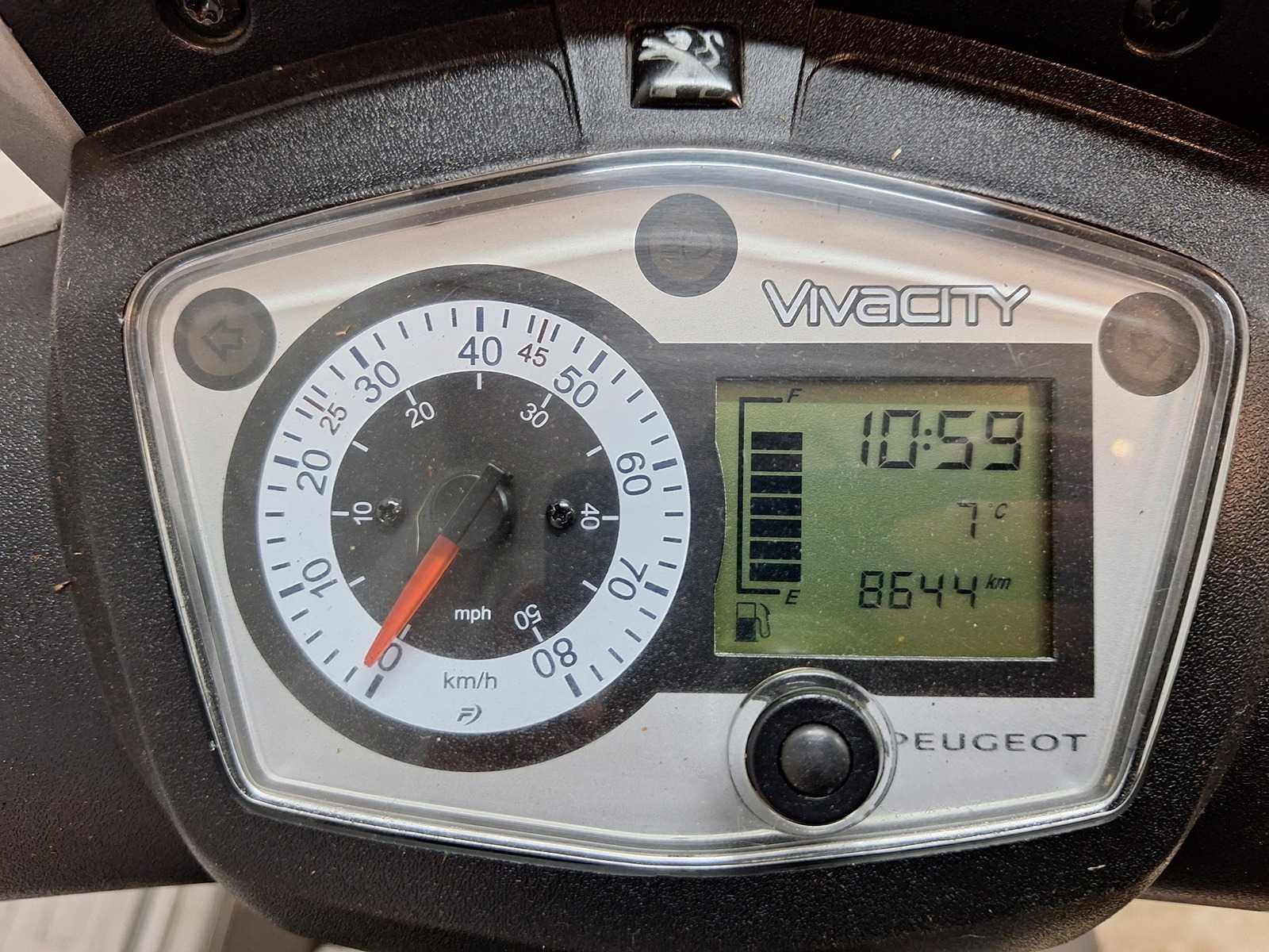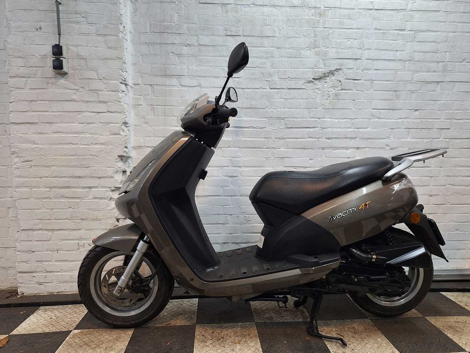 1 sleutel aanwezig voor scooter. Merk: Peugeot Model: 25 km snorscooter 4takt Type: Vivacity Snelheid: 25km/h Kenteken: DBN70X Datum eerste toelating: 22-04-2015 Bouwjaar: 2015 Kleur: grijs Afgelezen kilometerstand: 8644km