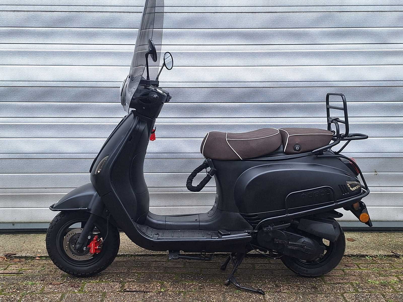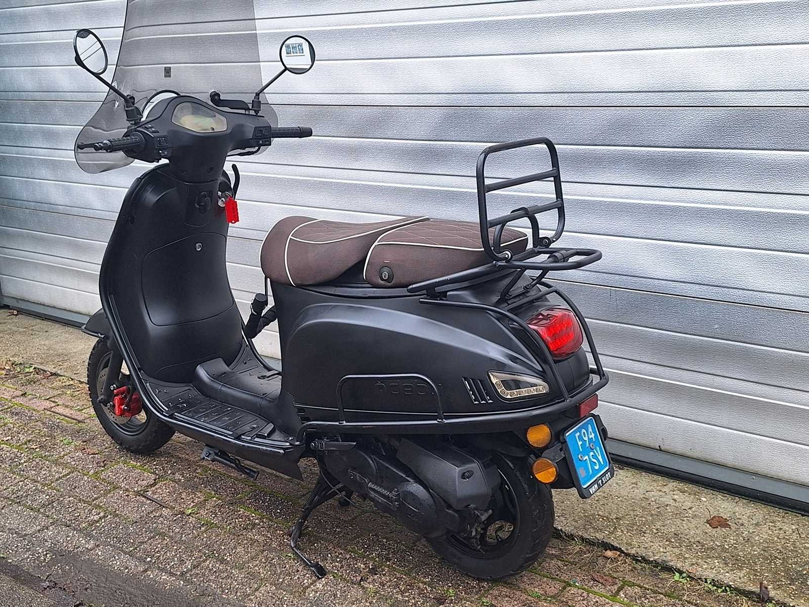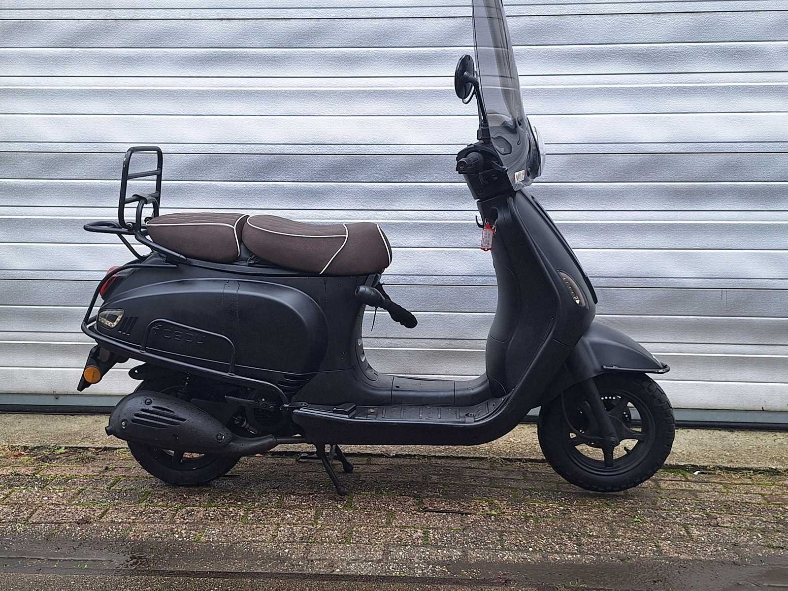 1 sleutel aanwezig voor scooter. Accessoires: hoog windscherm, achterklapdrager en beugelset. Merk: Berini Model: 25 km snorscooter 4takt Type: Iva Lux Snelheid: 25km/h Kenteken: F947SV Datum eerste toelating: 27-02-2014 Bouwjaar: 2014 Kleur: mat zwart Afgelezen kilometerstand: 24013km