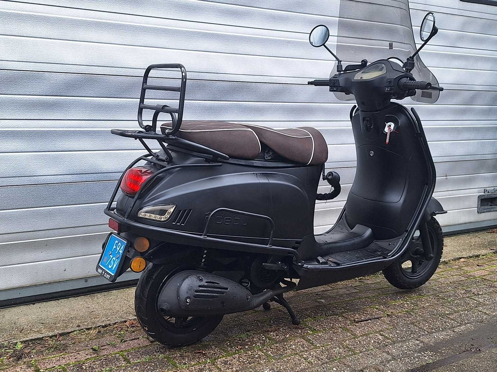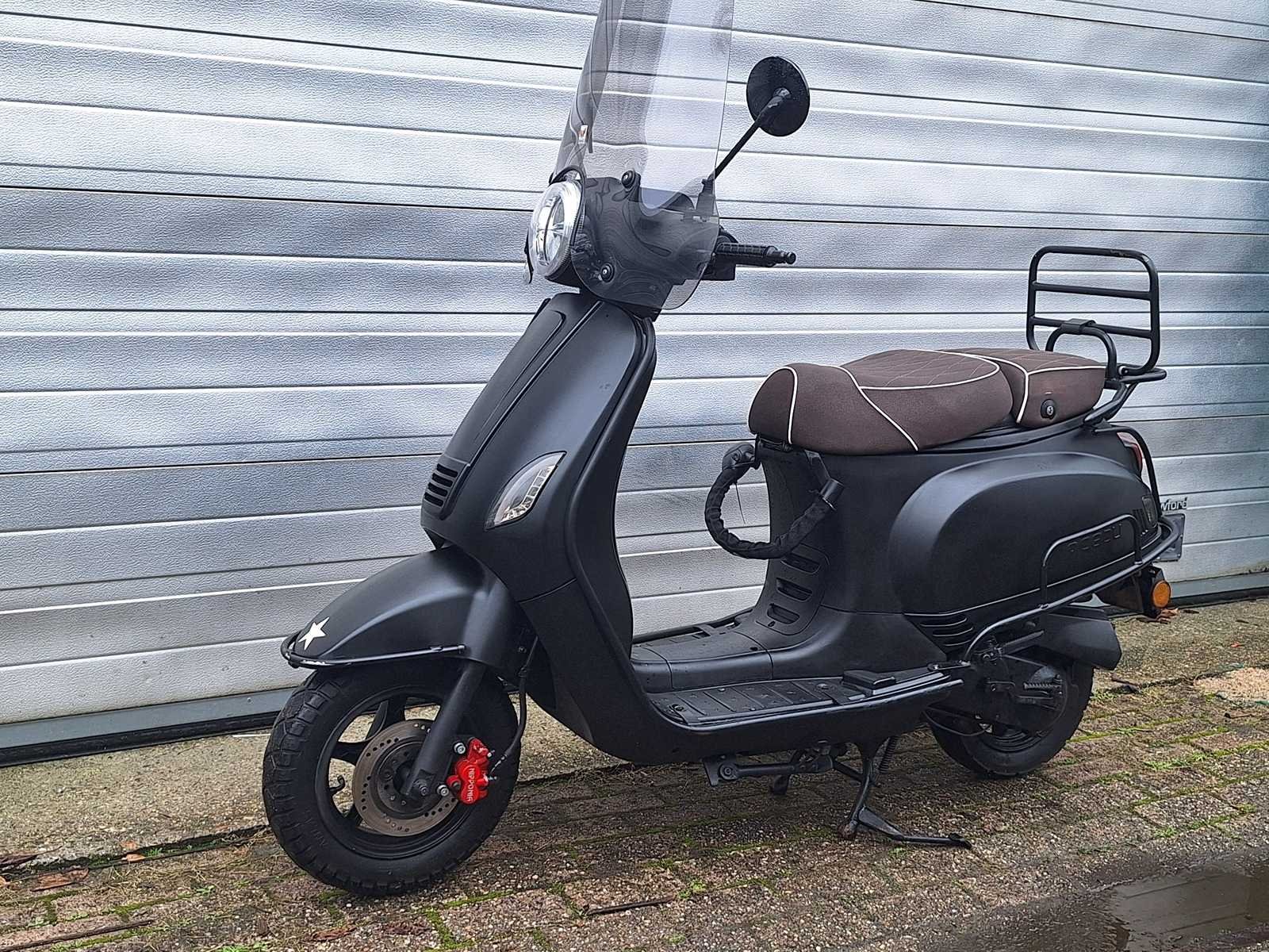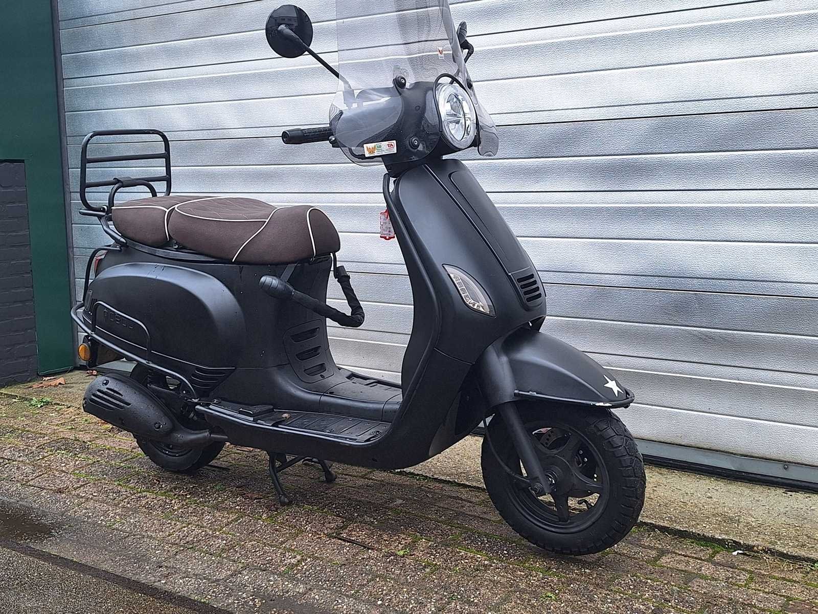 1 sleutel aanwezig voor scooter. Accessoires: hoog windscherm, achterklapdrager en beugelset. Merk: Berini Model: 25 km snorscooter 4takt Type: Iva Lux Snelheid: 25km/h Kenteken: F947SV Datum eerste toelating: 27-02-2014 Bouwjaar: 2014 Kleur: mat zwart Afgelezen kilometerstand: 24013km