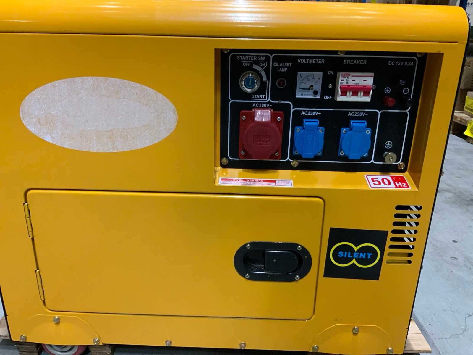 Ongebruikt; Silent; 230v/380v; rated power 7.kva; op wielen; 8290 Merk: Universal Kraft Type: UK-Diesel9500 Capaciteit.: 7kVA Diesel: true Motorvermogen (kW): 5.5kW Luchtgekoeld: true Mobiel: true Afgelezen urenstand: 0 Handboek aanwezig: true Totale afmeting L: 900mm Totale afmeting Breedte: 520mm Totale afmeting Hoogte: 680mm