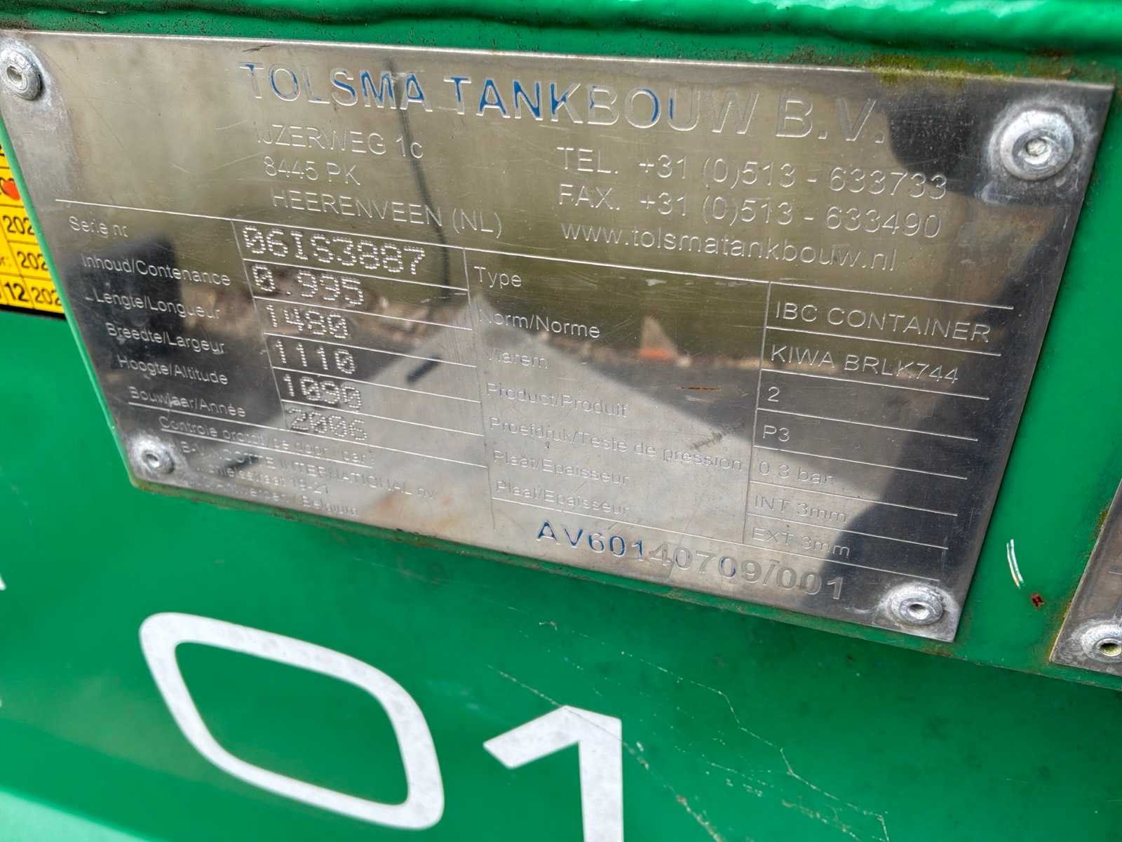 Capaciteit 995L, met pomp en vulpistool Merk: Tolsma Totale afmeting L: 1620mm Totale afmeting Breedte: 1250mm Totale afmeting Hoogte: 1320mm