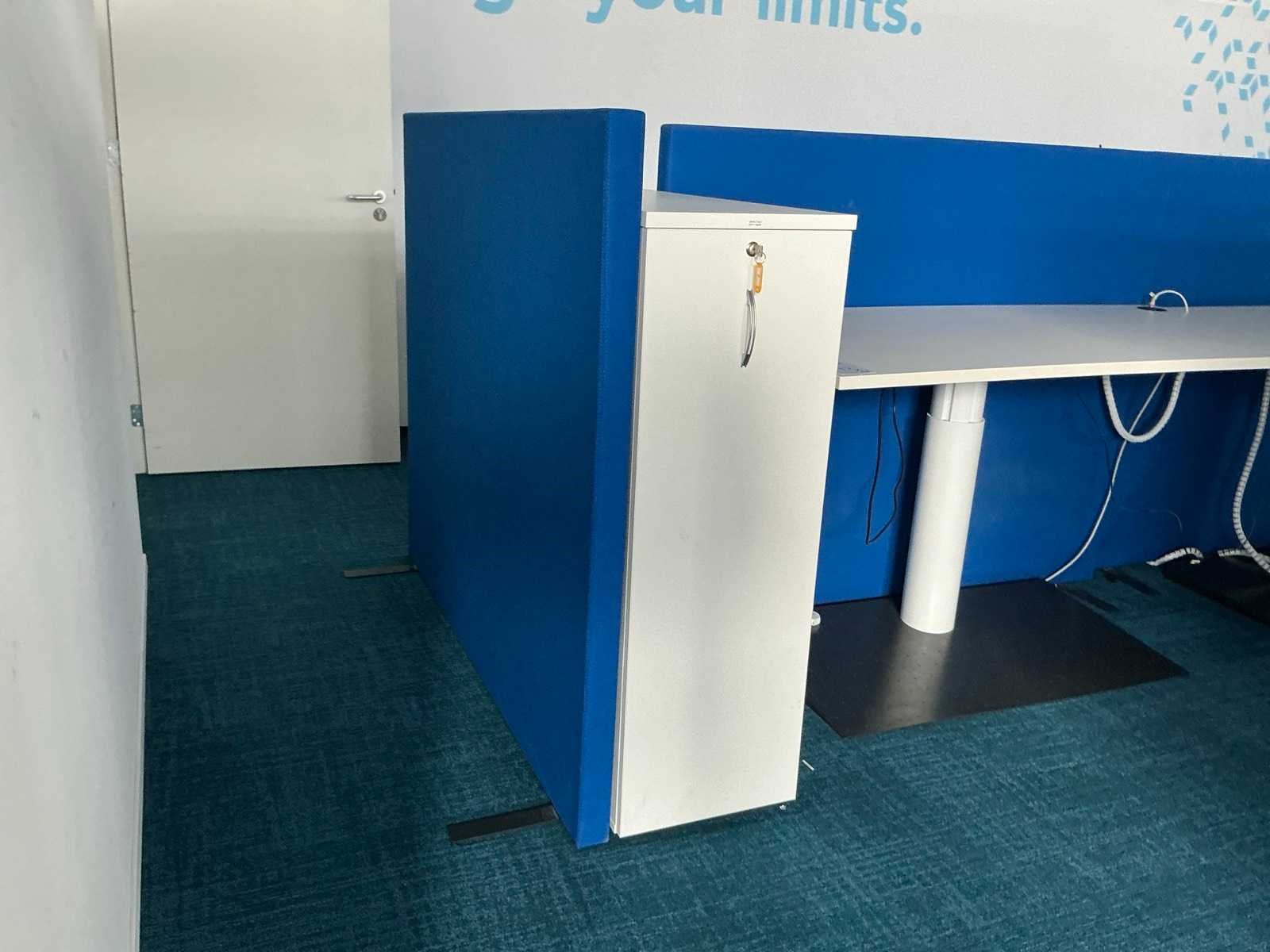 Voorzien van een ingebouwd stopcontact, 5 roomdividers, 4 opbergkasten en een bank. Lengte: 80cm Breedte: 160cm