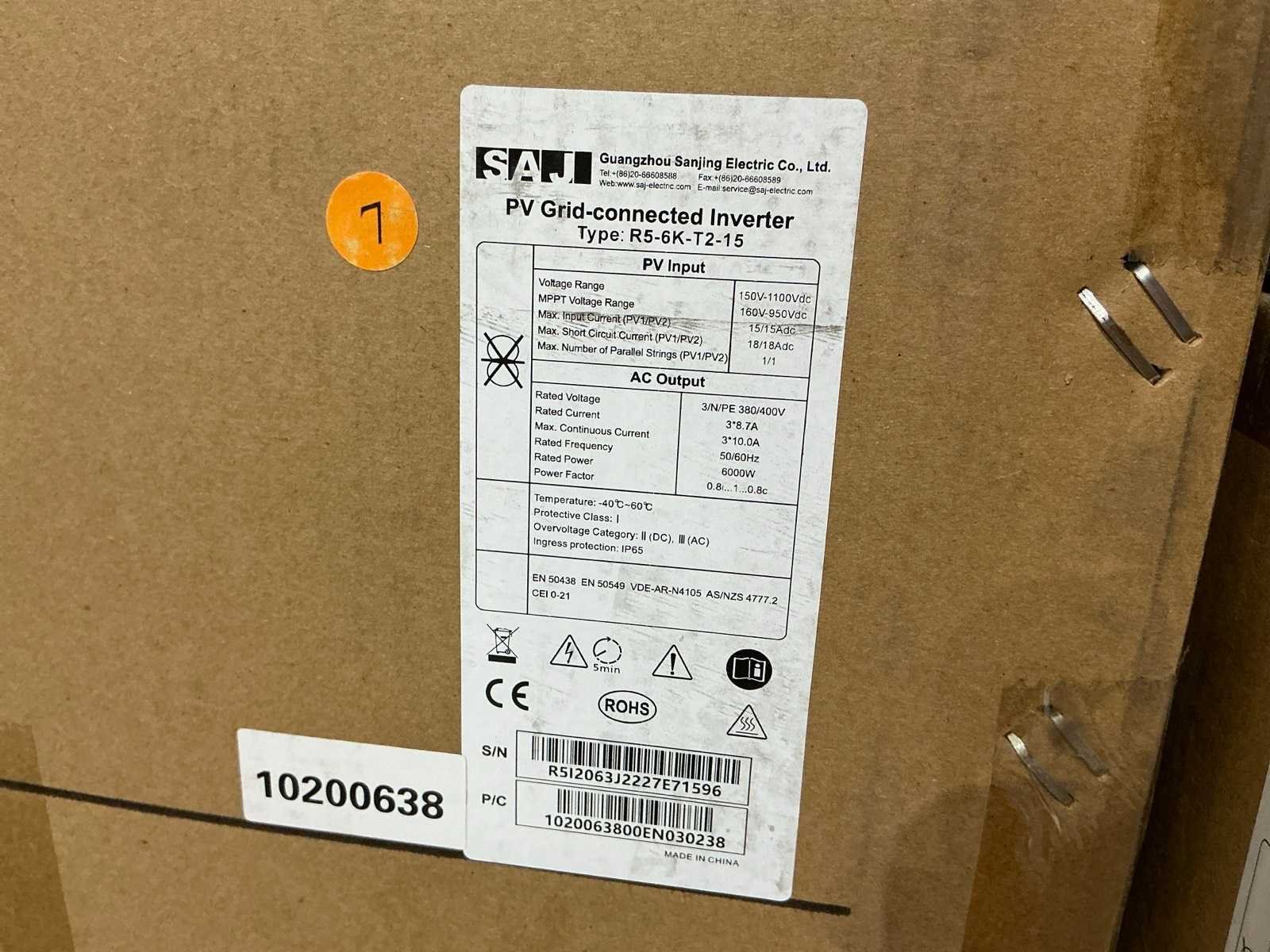 Ongebruikt in doos. Merk: SAJ Type: R5-6K-T2-15 Vermogen: 6kW