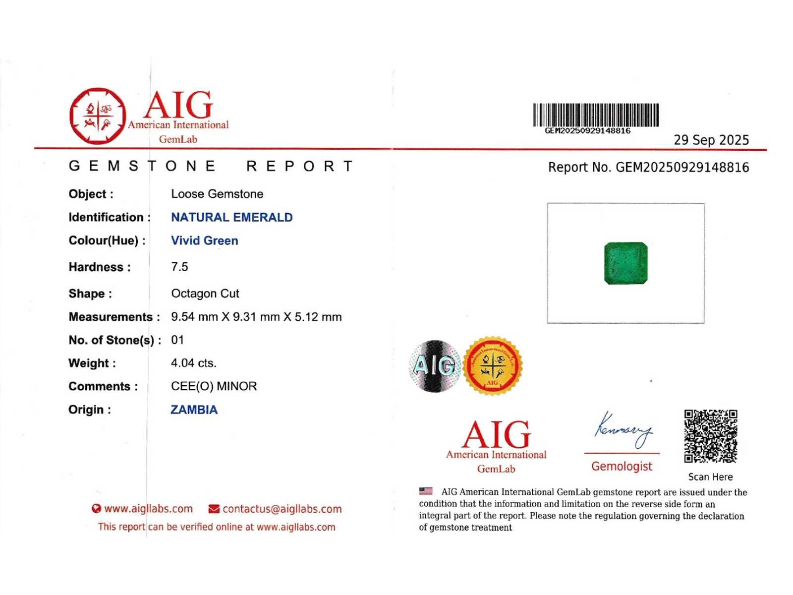 Samenvatting van gegevens Smaragd - 4.04 carat echte natuurlijke smaragd Edelsteen: Smaragd; Aantal: 1 stuk; Slijpvorm: Emerald geslepen; Gewicht (carat): 4.04 carat; Kleur: Groen; Zuiverheid: Jardin met natuurlijke insluitsels; Slijpkwaliteit: Heel mooi; Kwaliteit: Zeer hoge kleur gradering; Certificaat: internationaal lab certificaat; Conditie: Nieuw; Verpakking: Edelsteendoos; Toelichting: De kwaliteit is overgenomen van het rapport behorend bij item. Within 14 days Edelsteen: Smaragd Kleur edelsteen: Groen Slijpvorm edelsteen: Emerald geslepen Slijpkwaliteit edelsteen: Heel mooi Zuiverheidsgraad edelsteen: Jardin met natuurlijke insluitsels Lage schatting: 16000€ Hoge schatting: 20000€