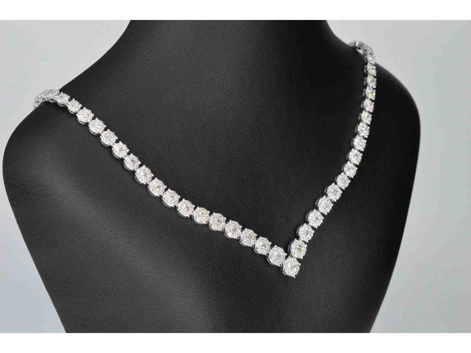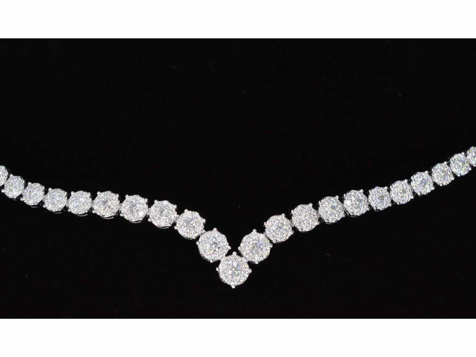 Samenvatting van gegevens Diamanten collier met 850 briljant geslepen diamanten 8.00 carat Diamant: Natuurlijk; Aantal: 850 stuks; Slijpvorm: Briljant geslepen; Gewicht (carat): 8.00 carat; Kleur: F-G; Zuiverheid: VS; Slijpkwaliteit: Zeer mooi; Juweel: Collier; Gewicht: 30 gram; Afmetingen/lengte: 41,5 cm; Materiaal: 18K goud (750); Conditie: Nieuw; Verpakking: Luxe sieradendoos; Toelichting: De kwaliteit is overgenomen van het rapport behorend bij item. Within 14 days Materiaal: Goud Voornaamste diamant: Natuurlijk Kleur diamant: F-G Gewicht diamant: 8.00ct Slijpvorm diamant: Briljant geslepen Slijpkwaliteit diamant: Zeer mooi Zuiverheidsgraad diamant: VS Totaal gewicht: 30g Keurmerk: 750 Lage schatting: 43736€ Hoge schatting: 54670€