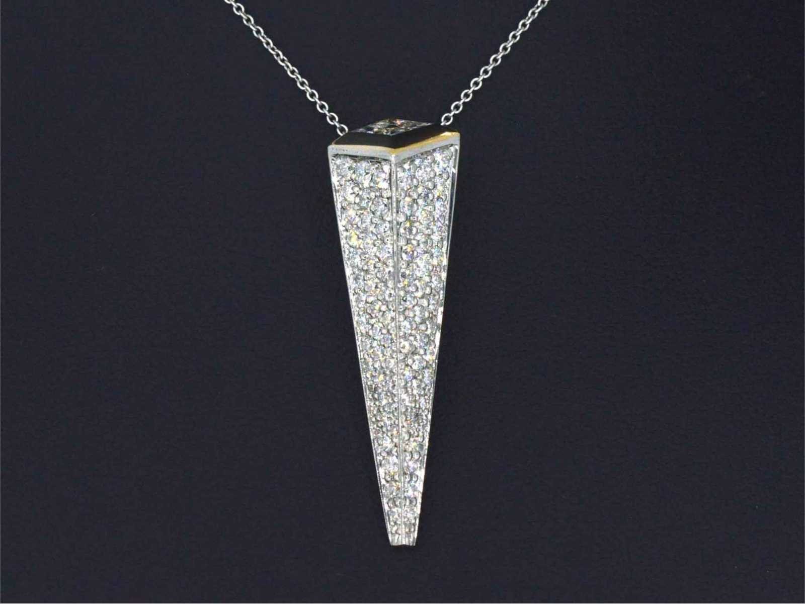 Samenvatting van gegevens Unieke handgemaakte bi-colour designer hanger met zeer hoge kwaliteit diamant Diamant: Natuurlijk; Aantal: 4 stuks; Slijpvorm: Prinses geslepen; Gewicht (carat): 0.32 carat; Kleur: F; Zuiverheid: VVS; Slijpkwaliteit: Zeer mooi; Diamant (secundair): Diamanten; Aantal diamanten: 79 stuks; Slijpvorm: Briljant geslepen; Gewicht (carat): 1.00 carat; Kleur: F; Zuiverheid: VVS; Juweel: Hanger (excl. ketting); Gewicht: 6.5 gram; Materiaal: 18k goud (750); Conditie: Nieuw; Verpakking: Luxe sieradendoos; Toelichting: De kwaliteit is overgenomen van het rapport behorend bij item. Within 14 days Materiaal: Goud Voornaamste diamant: Natuurlijk Kleur diamant: F Gewicht diamant: 0.32ct Slijpvorm diamant: Prinses geslepen Slijpkwaliteit diamant: Zeer mooi Zuiverheidsgraad diamant: VVS Totaal gewicht: 6.5g Keurmerk: 750 Lage schatting: 9600€ Hoge schatting: 12000€