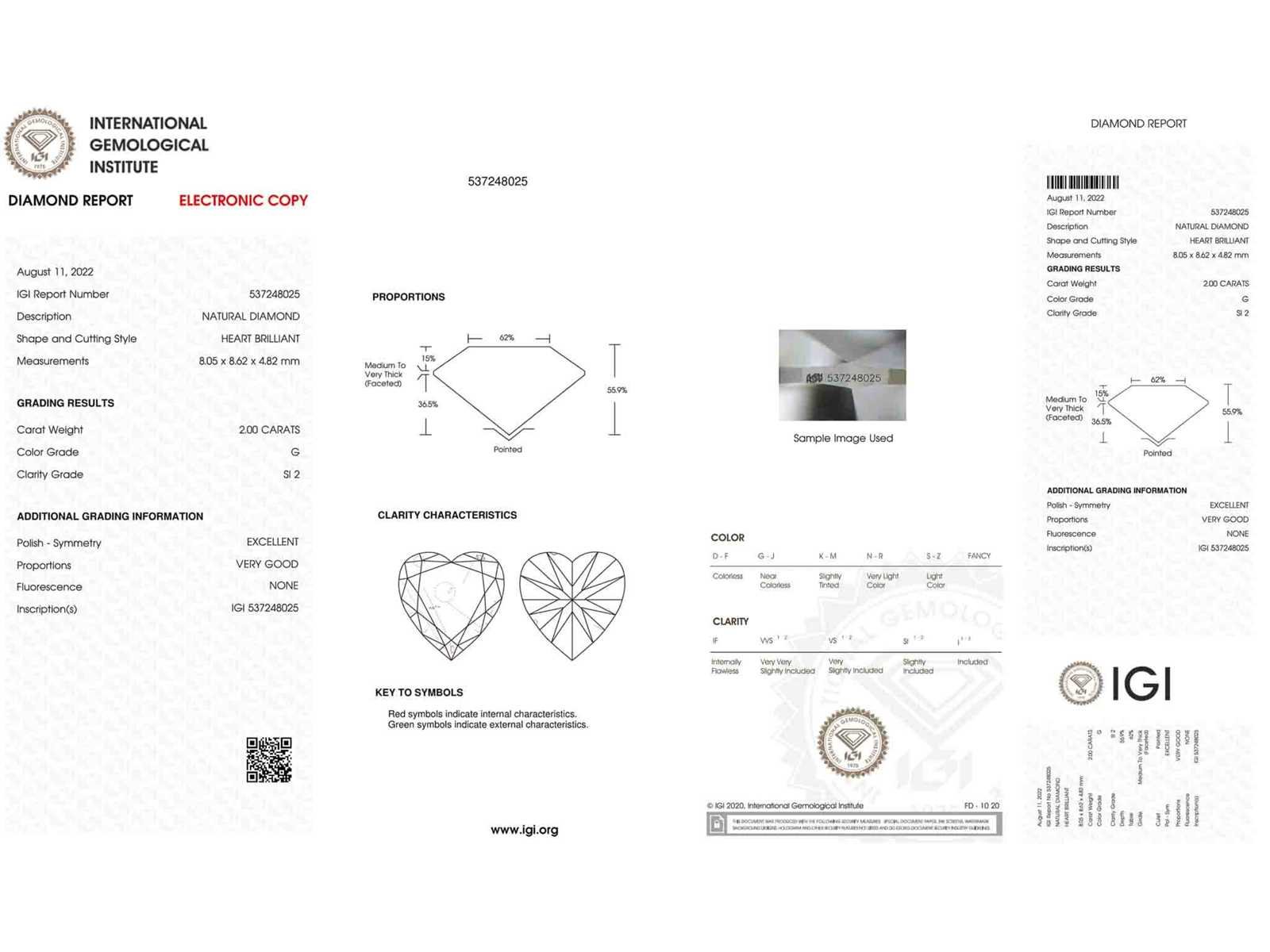 Samenvatting van gegevens Diamant - 2.00 carat echte diamant (gecertificeerd) Diamant: Natuurlijk; Aantal: 1 stuk; Slijpvorm: Hart vorm geslepen; Gewicht (carat): 2.00 carat; Kleur: G; Zuiverheid: SI2; Certificaat: IGI; Certificaat nummer: 537248025; Conditie: Nieuw; Verpakking: Edelsteendoos; Toelichting: De kwaliteit is overgenomen van het rapport behorend bij item. Within 14 days Voornaamste diamant: Natuurlijk Kleur diamant: G Gewicht diamant: 2.00ct Slijpvorm diamant: Hart vorm geslepen Zuiverheidsgraad diamant: SI2 Certificaat: IGI Lage schatting: 35000€ Hoge schatting: 43750€