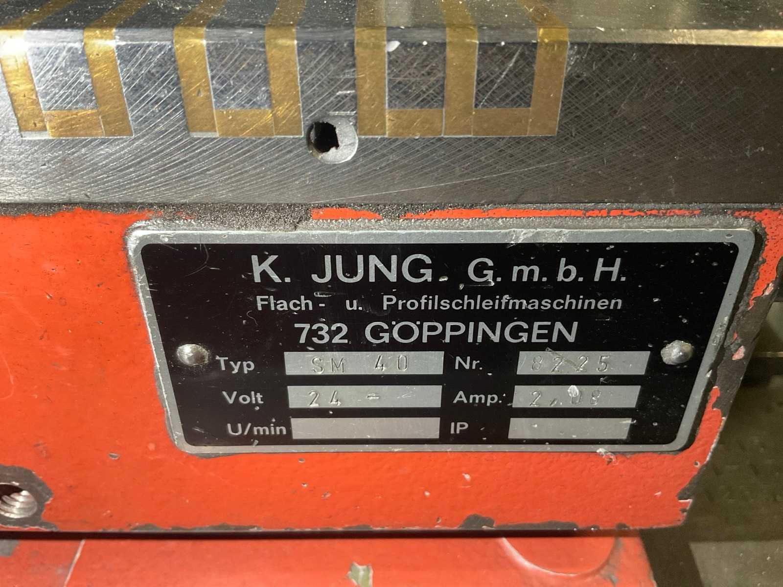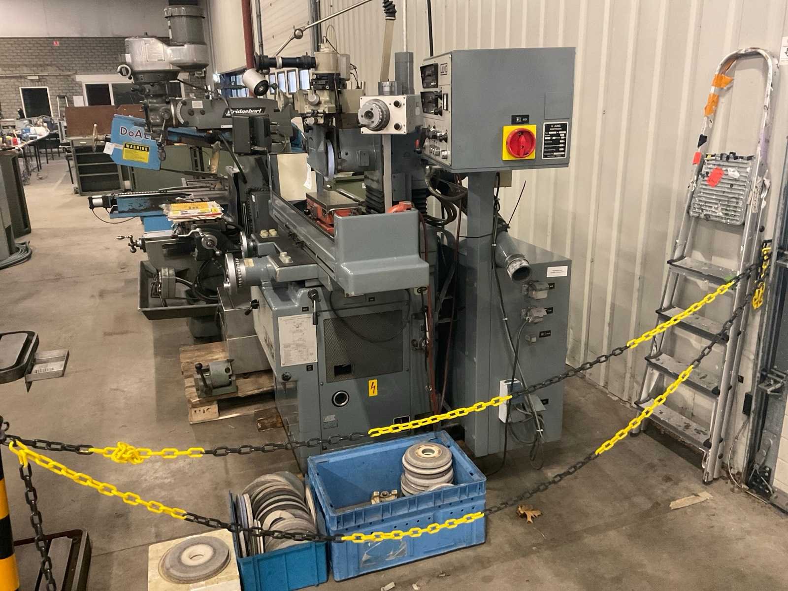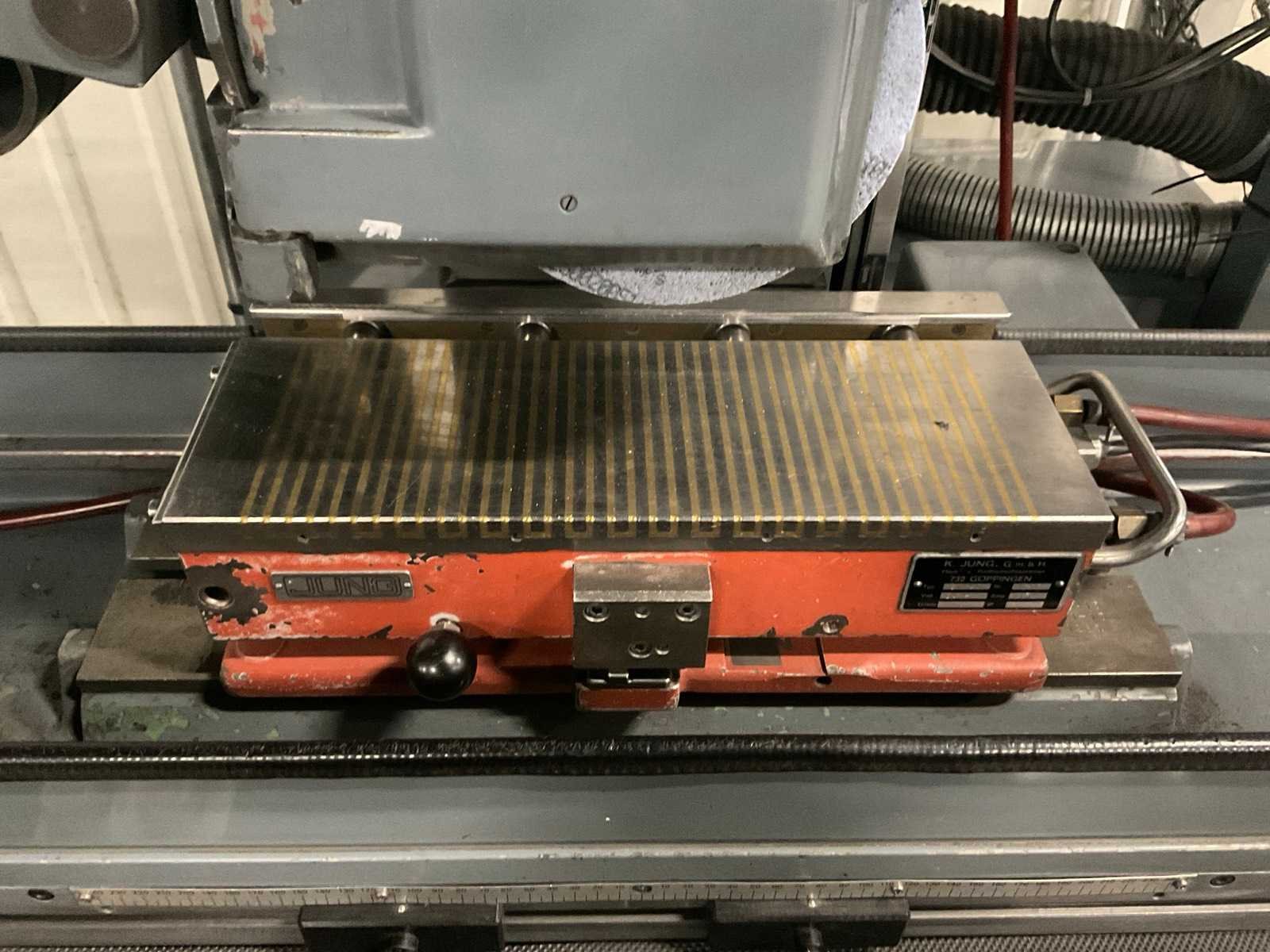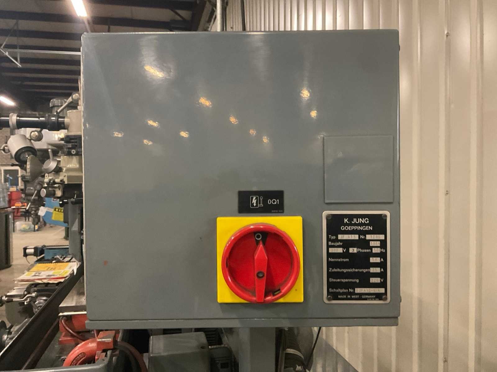 Voorzien van optidress microscoop inrichting, digitale positie uitlezing, jung magneettafel, rvs filterbak, partij extra slijpstenen, machine staat reeds transportklaar Merk: Jung Type: JF415 Bouwjaar: 1984 Serienummer: 1285 Tafel afmeting l: 150mm Tafel afmeting b: 550mm Slijpsteen Ø: 200mm Slijpsteen dikte: 35mm Magnetische opspantafel afm.: 400mm Besturing, merk, type: Heidenhain Aansluiting: 220V Machinegewicht: 1250kg Afmeting l: 1700mm Afmeting b: 1200mm Afmeting h: 2400mm