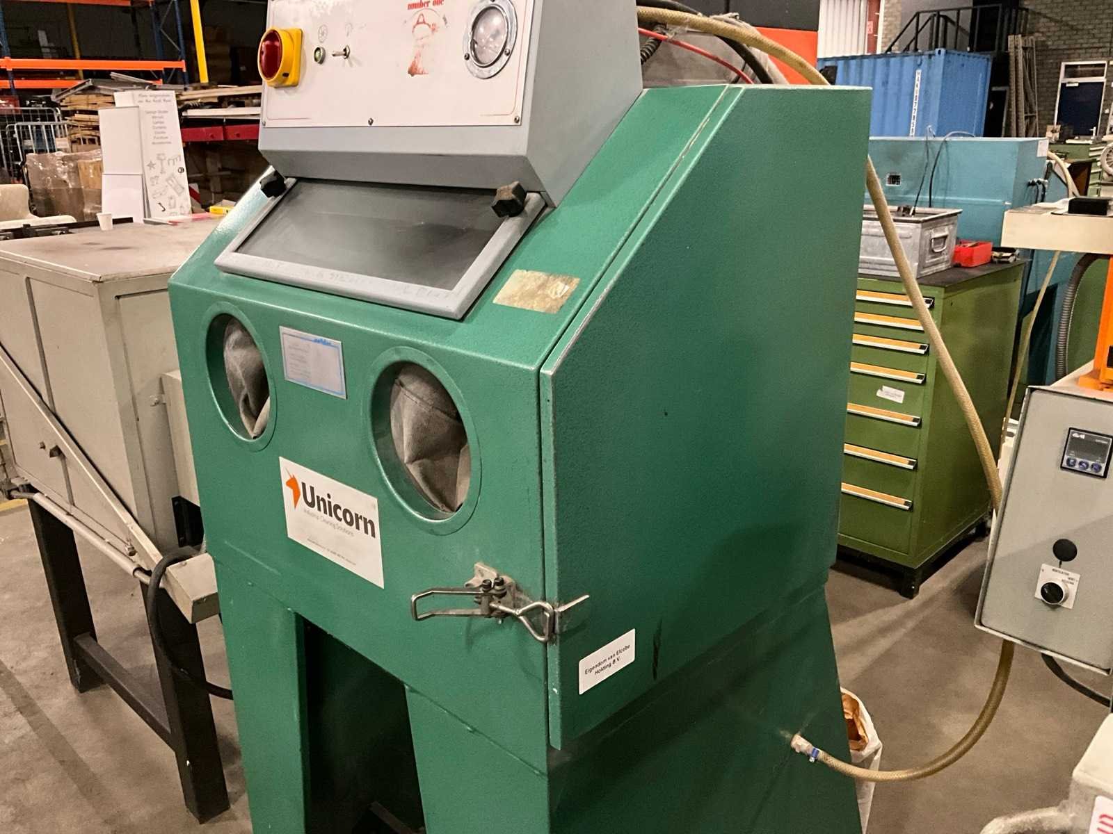 Straaljager afmeting 600x800 mm, met straalpistool, stofafzuiging met stofzak en diverse toebehoren Merk: Lampugnani Sabbiatruci Type: One Afzuiging: true Aansluiting: 380V Machinegewicht: 450kg Afmeting l: 880mm Afmeting b: 820mm Afmeting h: 1800mm