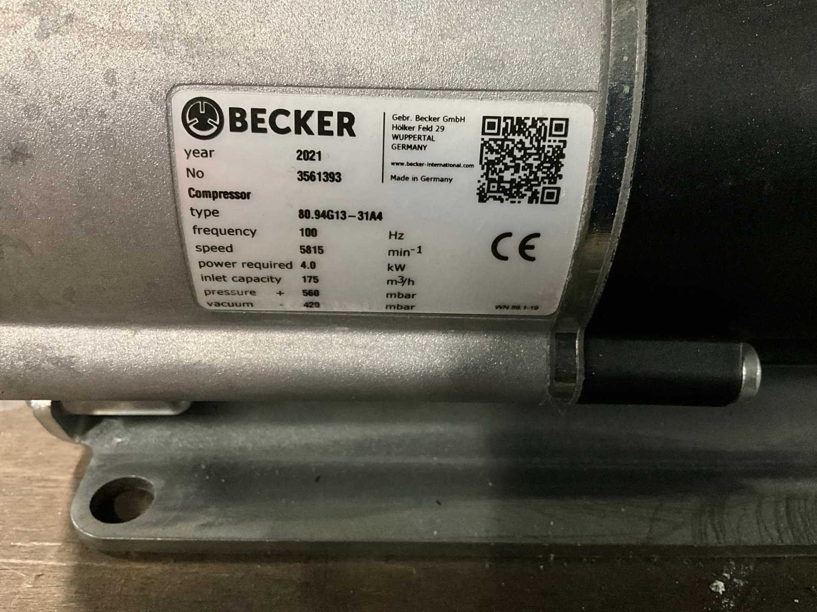 Met becker-variair controlunit Merk: Becker Type: SV 7.190/1-400 Bouwjaar: 2021 Serienummer: 3561393 Vermogen: 4kW Nominale capaciteit: 175m³/hr