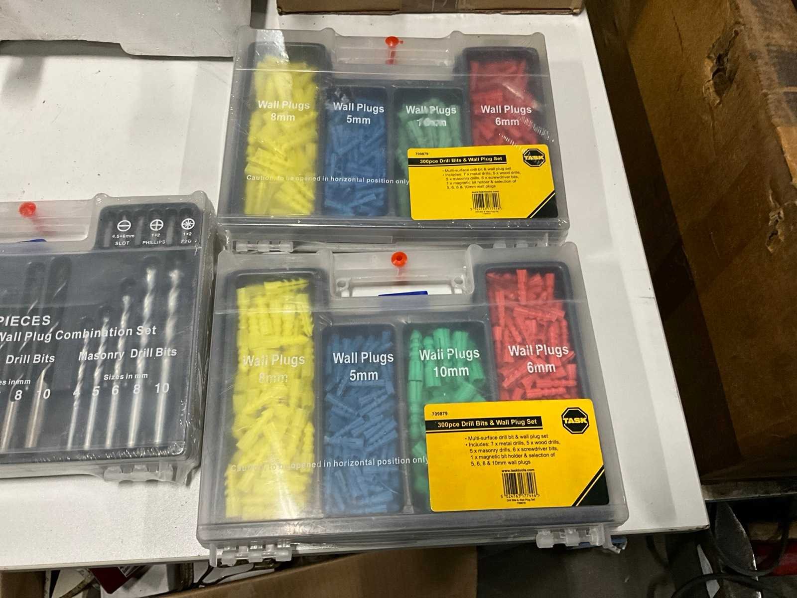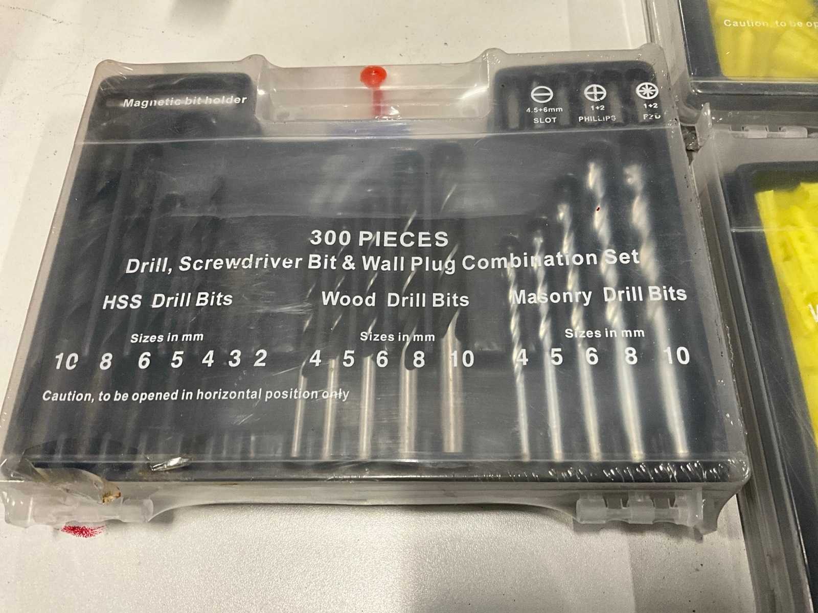 Waaronder staal/hout/steenboren en diverse maat pluggen in 3 assortiments koffers