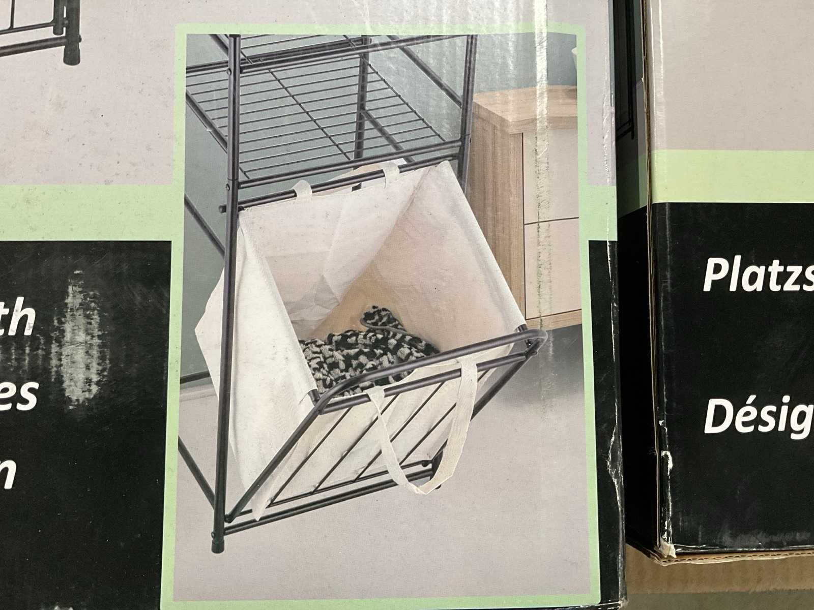 Met waszak Merk: Mesa living Model: Rack Hoogte: 105cm Lengte: 38cm Breedte: 35.5cm