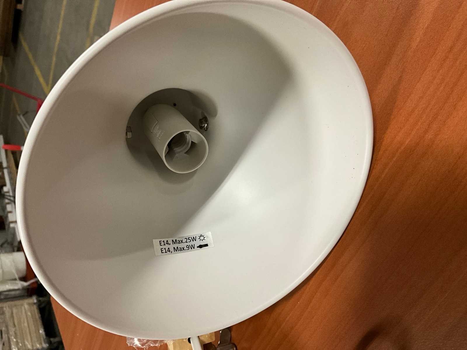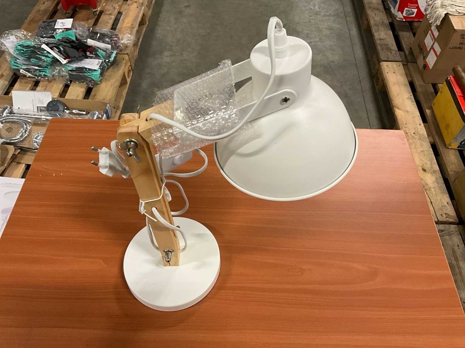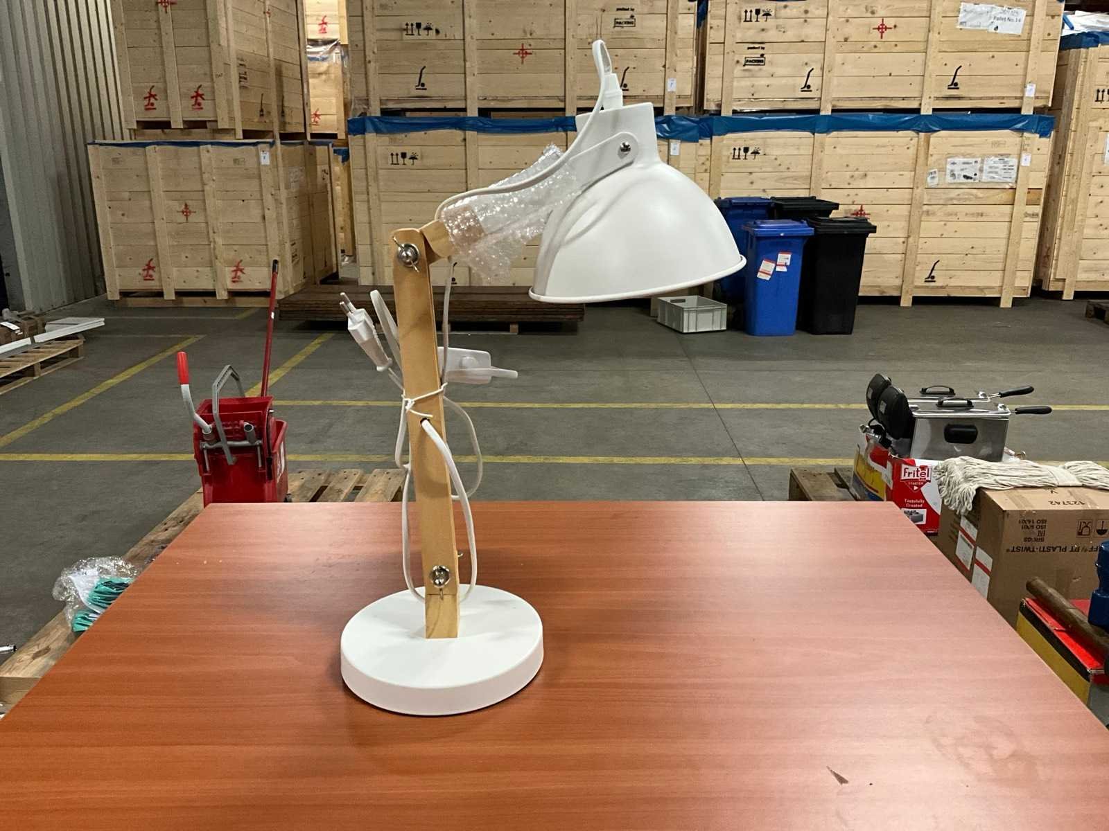 Ongebruikt in verpakking Merk: Grundig Model: Metalwood Verstelbaar: true Fitting: E14 Wattage: 25W Kleur: Wit Lengte: 13cm Breedte: 13cm Hoogte: 45cm Materiaal: Hout/metaal