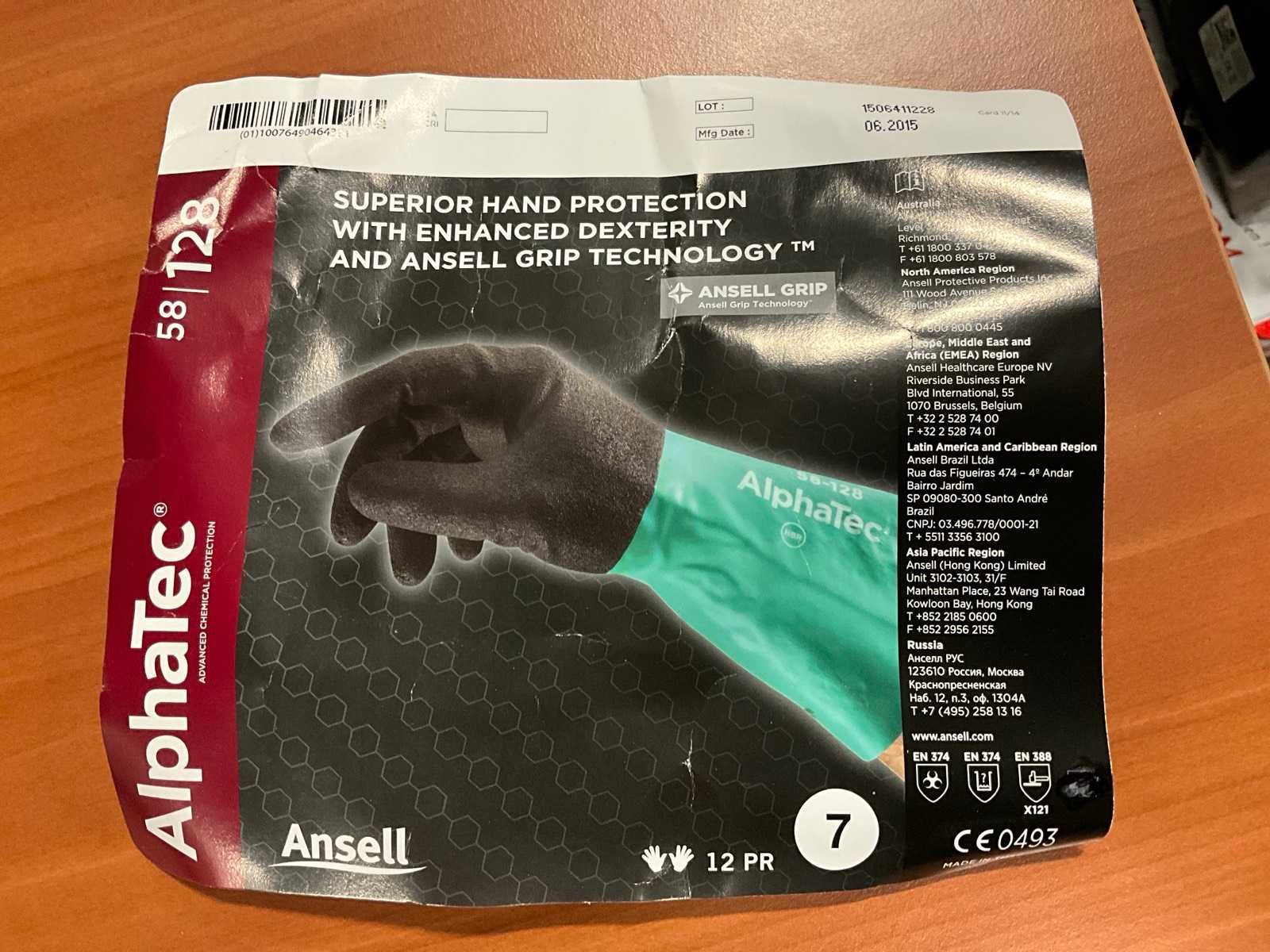 Waaronder 5 verpakkingen met alphatec handschoen maat 58-128, en 3 verpakkingen met marigold handschoen maat 8/m