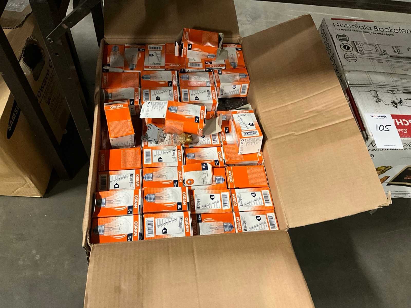 Circa 200 stuks in 1 doos Merk: Osram Model: Classic A Spanning: 220V Energielabel: E Fitting: E27 Wattage: 15W Kleur: Helder