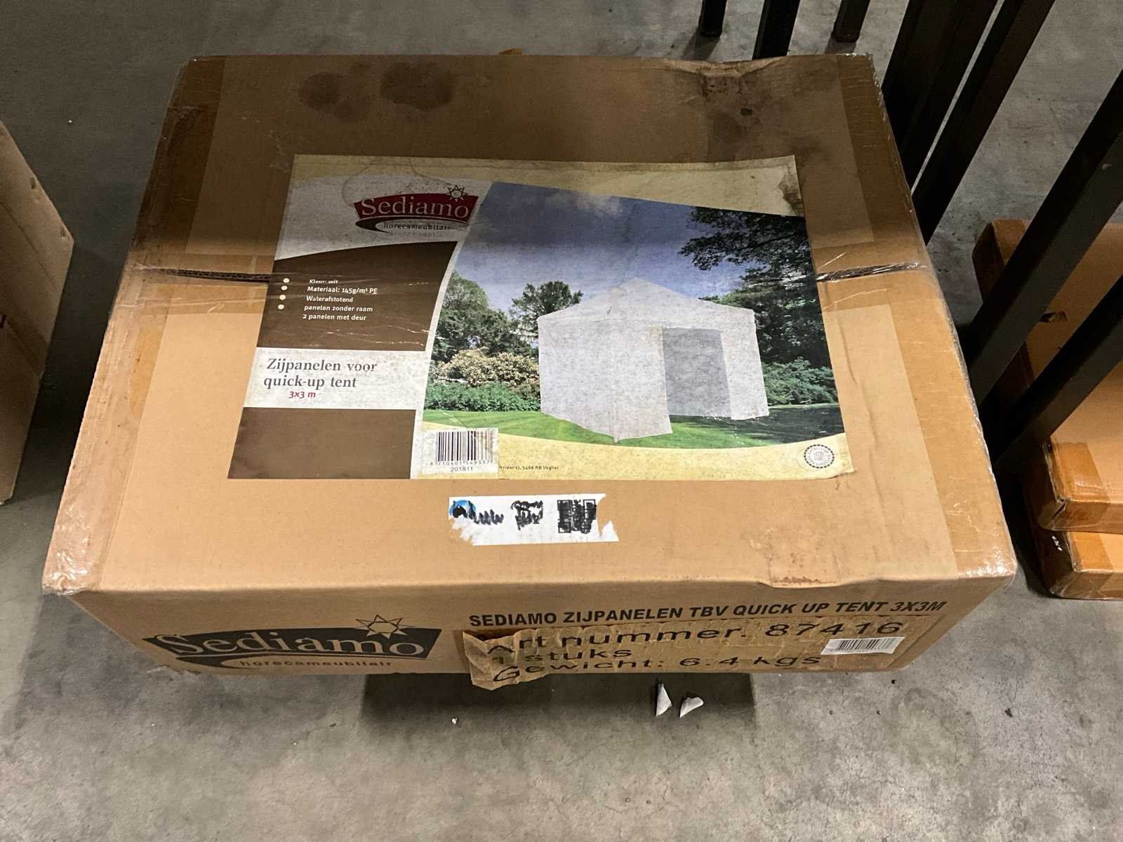Ongebruikt in verpakking Merk: Sediamo Model: 3x3 Product type: Zijpanelen quick up tent