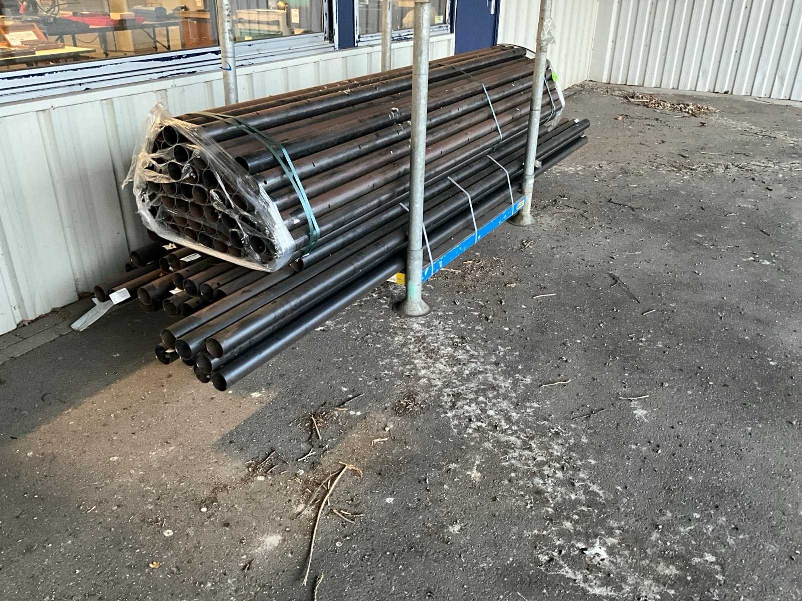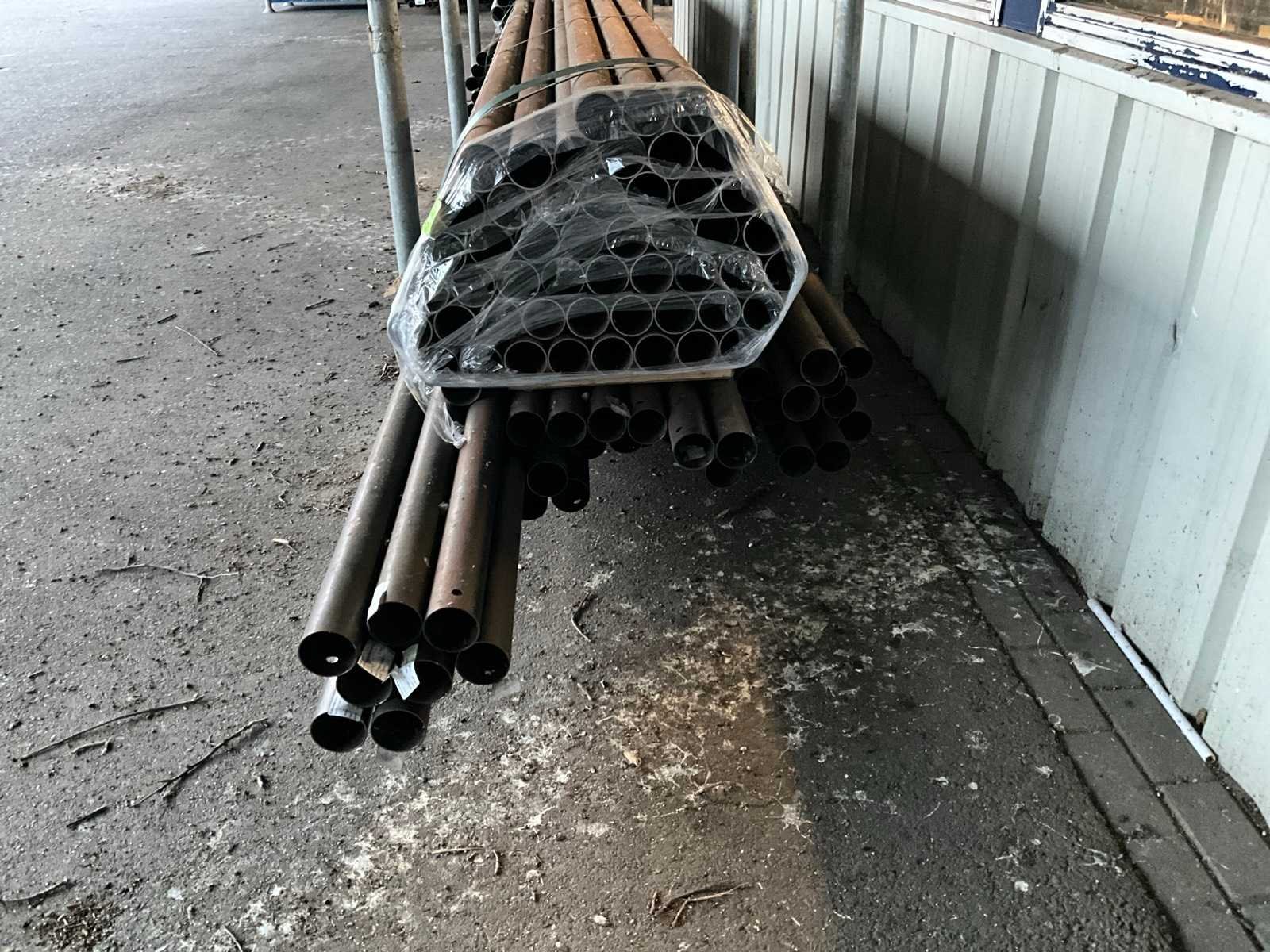 Diameter 70 mm, wanddikte 2,9 mm, totaal circa 100 stuks, waarvan circa 8 stuks lengte 3860mm, voorzien van diverse boor en sleufgaten in en met transportjuk Merk: MCB Type: Staal Afmeting l: 2980mm