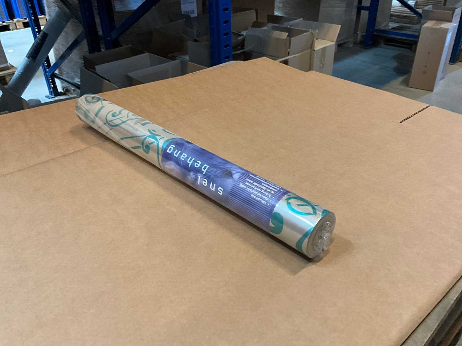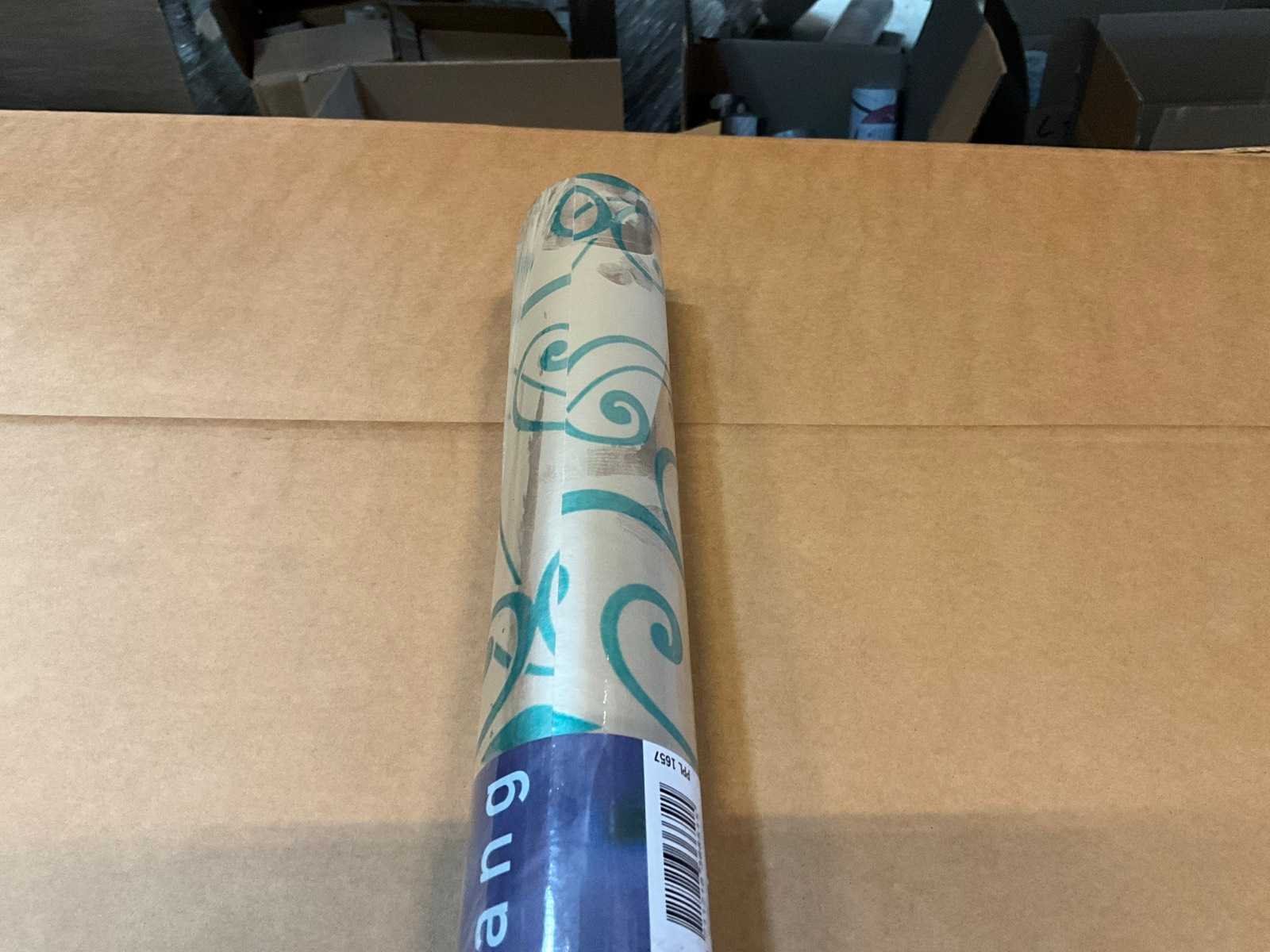 Merk: Royal dutch Type: Vlies Kleur: Damast turquoise Lengte: 1000cm Breedte: 53cm