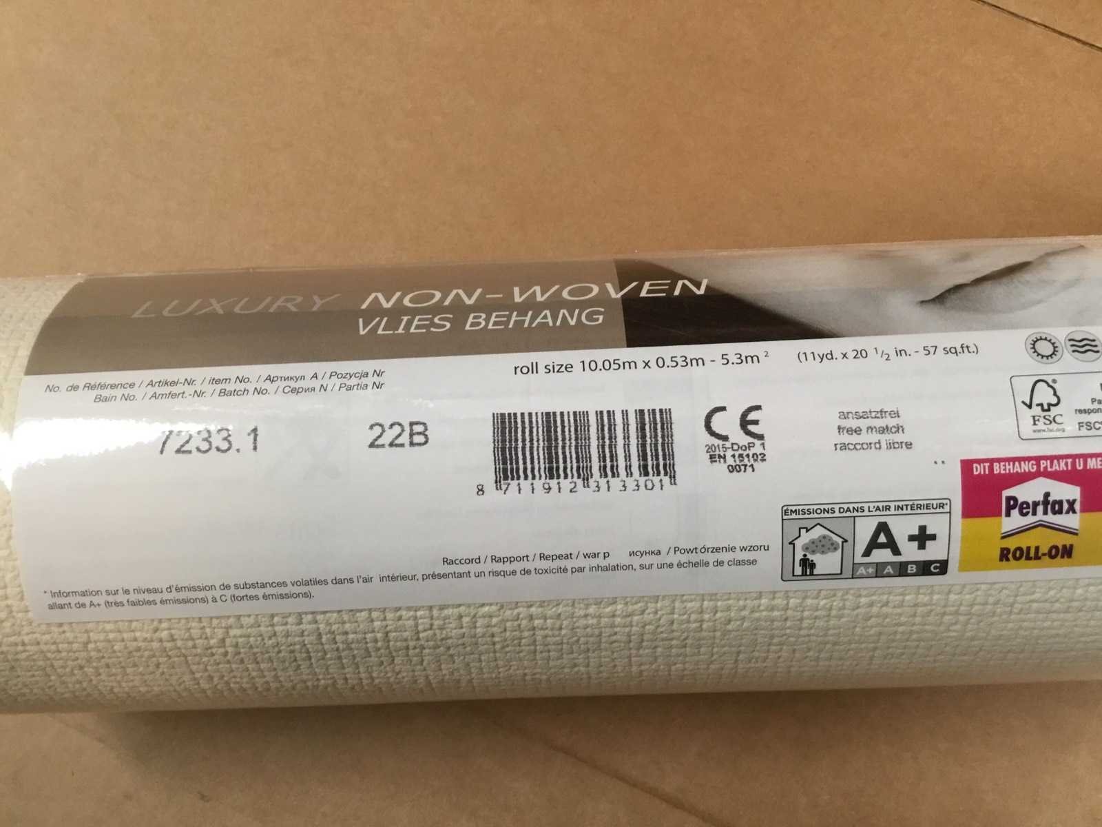 Op 1 pallet. Merk: Unis & textures 2 Type: Behang schuim op vlies uni Kleur: Crème Breedte: 53cm Lengte: 1000cm