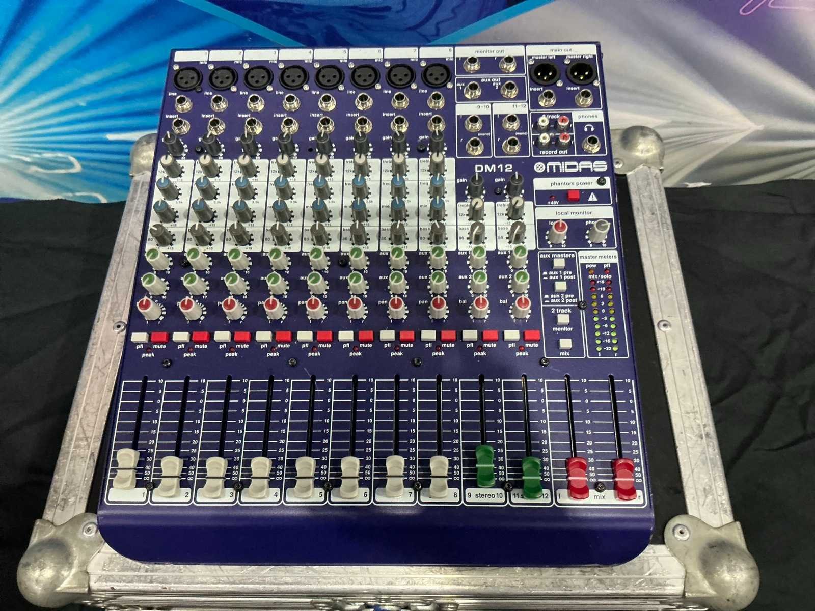 Is water op gekomen Merk: Midas Type: DM12 Serienummer: S220300050BGA Aantal kanalen: 12 Aantal kanalen uitgaand: 4 Aantal mic/line ingangen: 12 Met flightcase: true Totale afmeting L: 380mm Totale afmeting Breedte: 470mm Totale afmeting Hoogte: 200mm