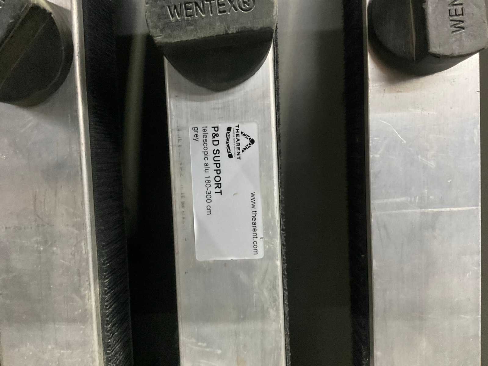 Lengte: 180-300. Inclusief: transporttrolley, voetplaat, ligger, staander en aantal voetplaat pin. Merk: Wentex