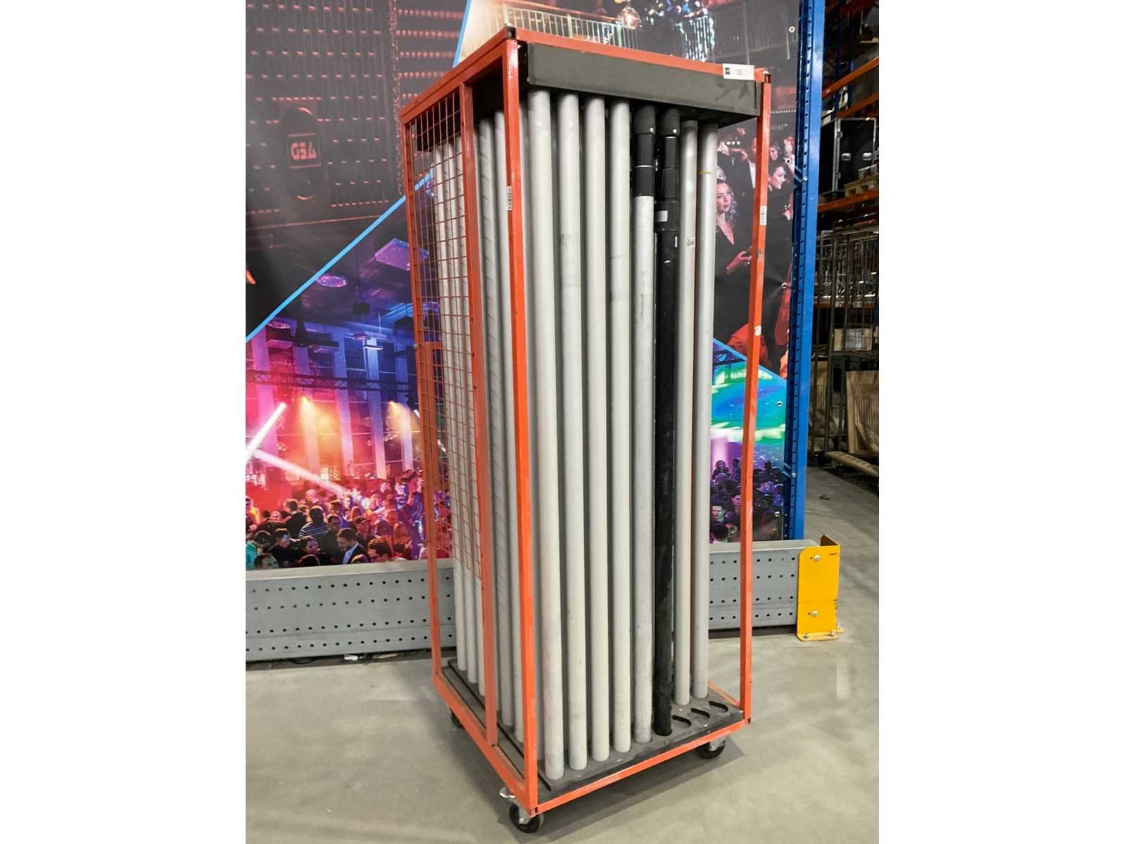 (67x) kokers, Lengte: 1800mm. Inclusief: (1x) transporttrolley 780x750x2040mm. 1x staander 1800mm->4200mm 1x staander 1800mm->5000mm Merk: Wentex