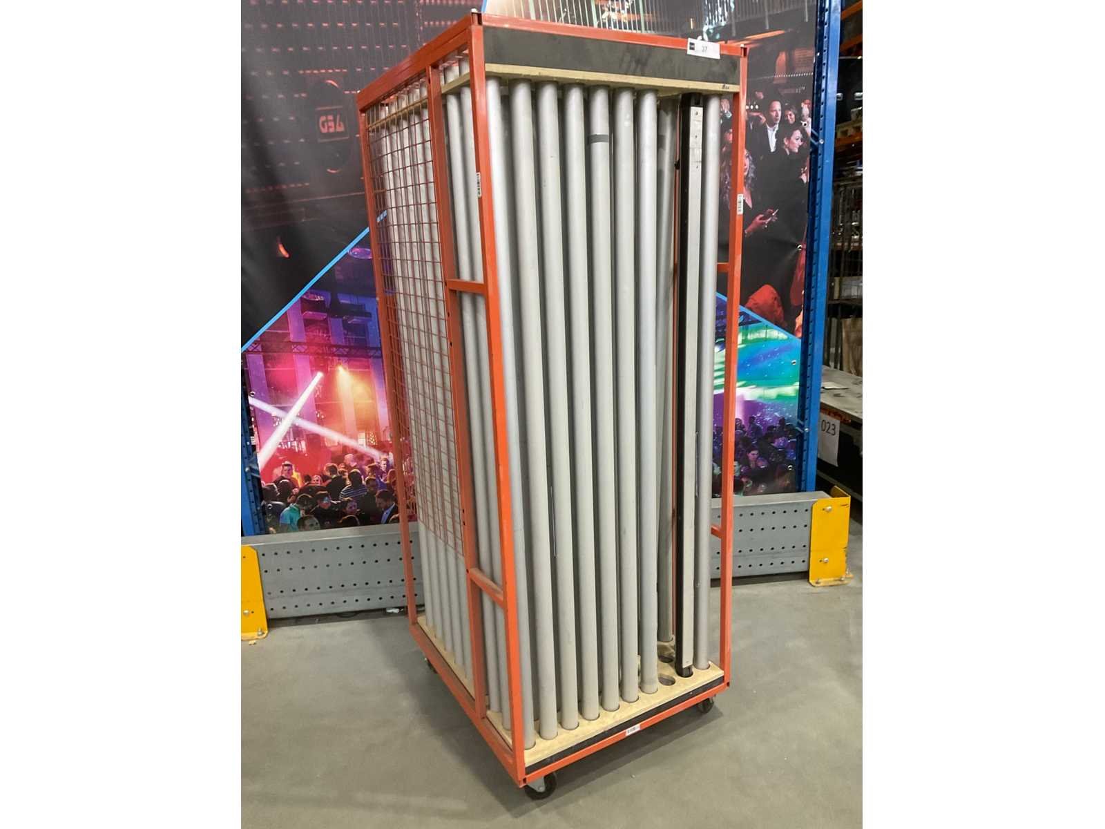 (88x) kokers, Lengte: 1800mm. Inclusief: (1x) transporttrolley 780x750x2040mm. Merk: Wentex Lengte: 780 Breedte: 900 Hoogte: 2040