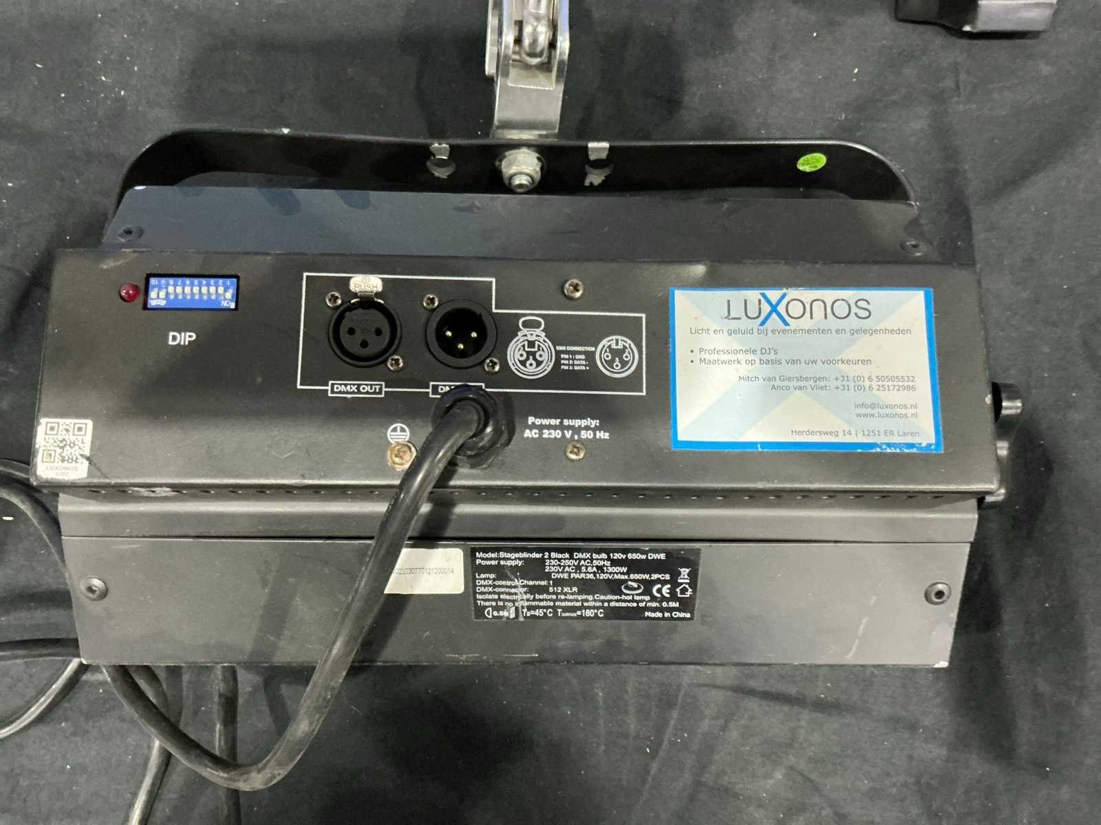 Zonder kist geleverd Merk: Showtec Type: Stage Blinder 2 DMX: true Aansluiting: 230V Totale afmeting L: 25mm Totale afmeting Breedte: 350mm