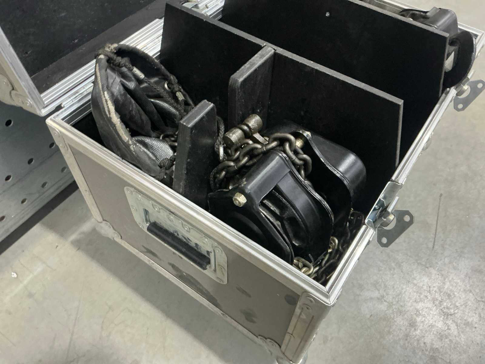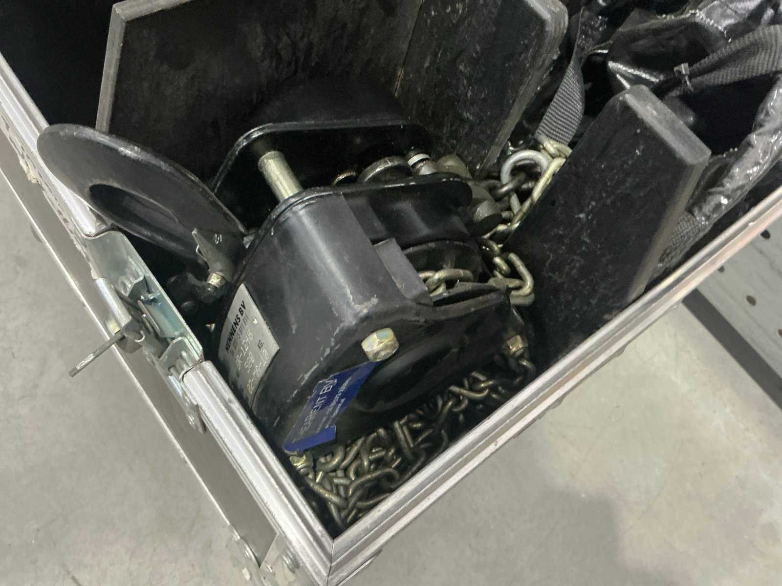 Handmatig, met flightcase. Merk: Mennens Hijsvermogen: 500kg