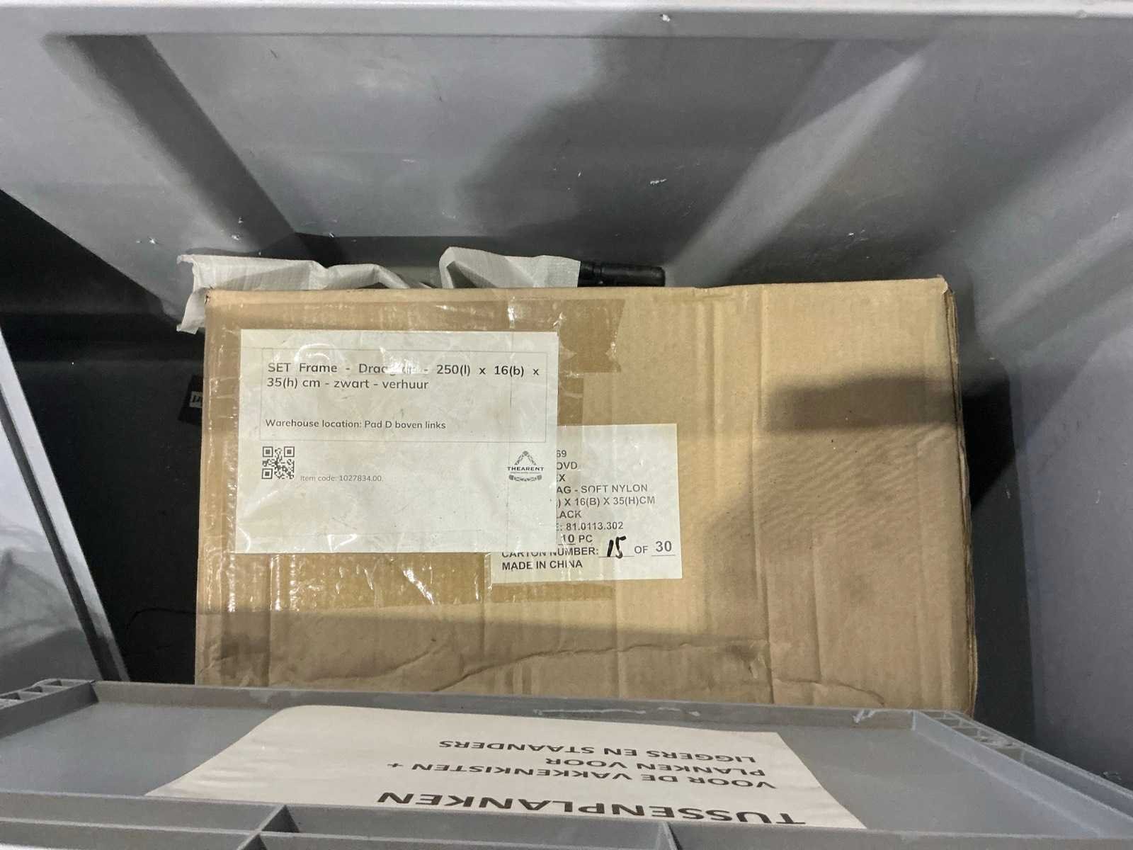 Bestaande uit: 1x krat met tussenplanken, 3x doos frame draagtassen. Zonder transportkist.